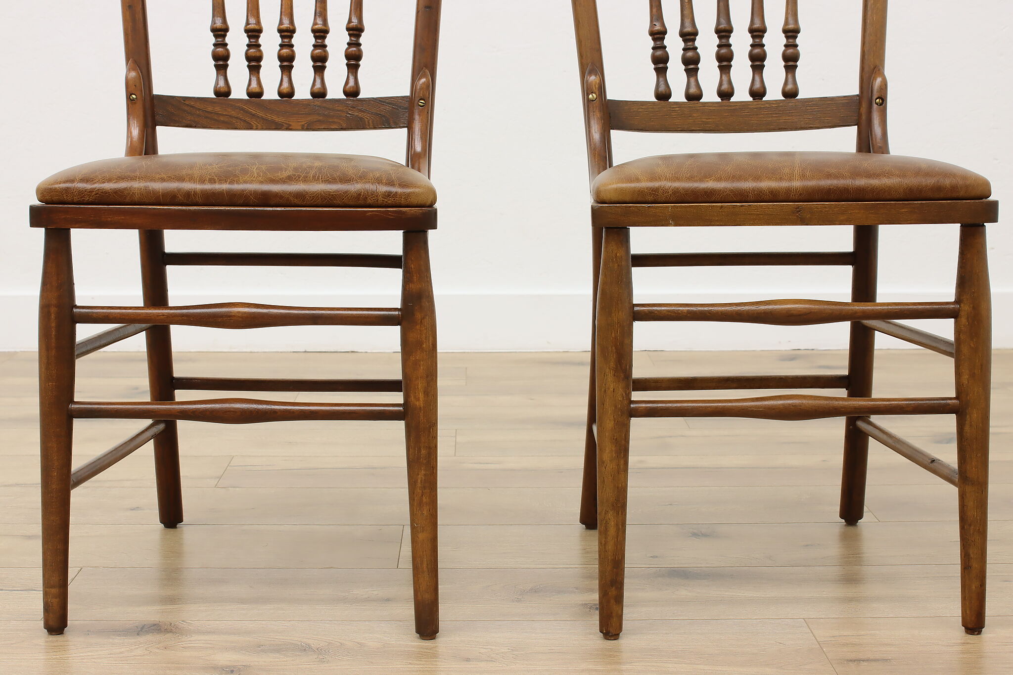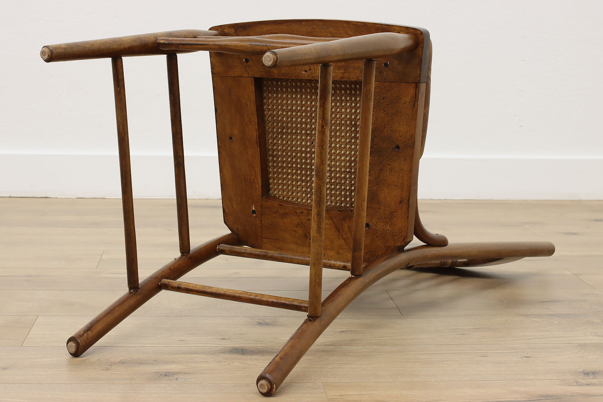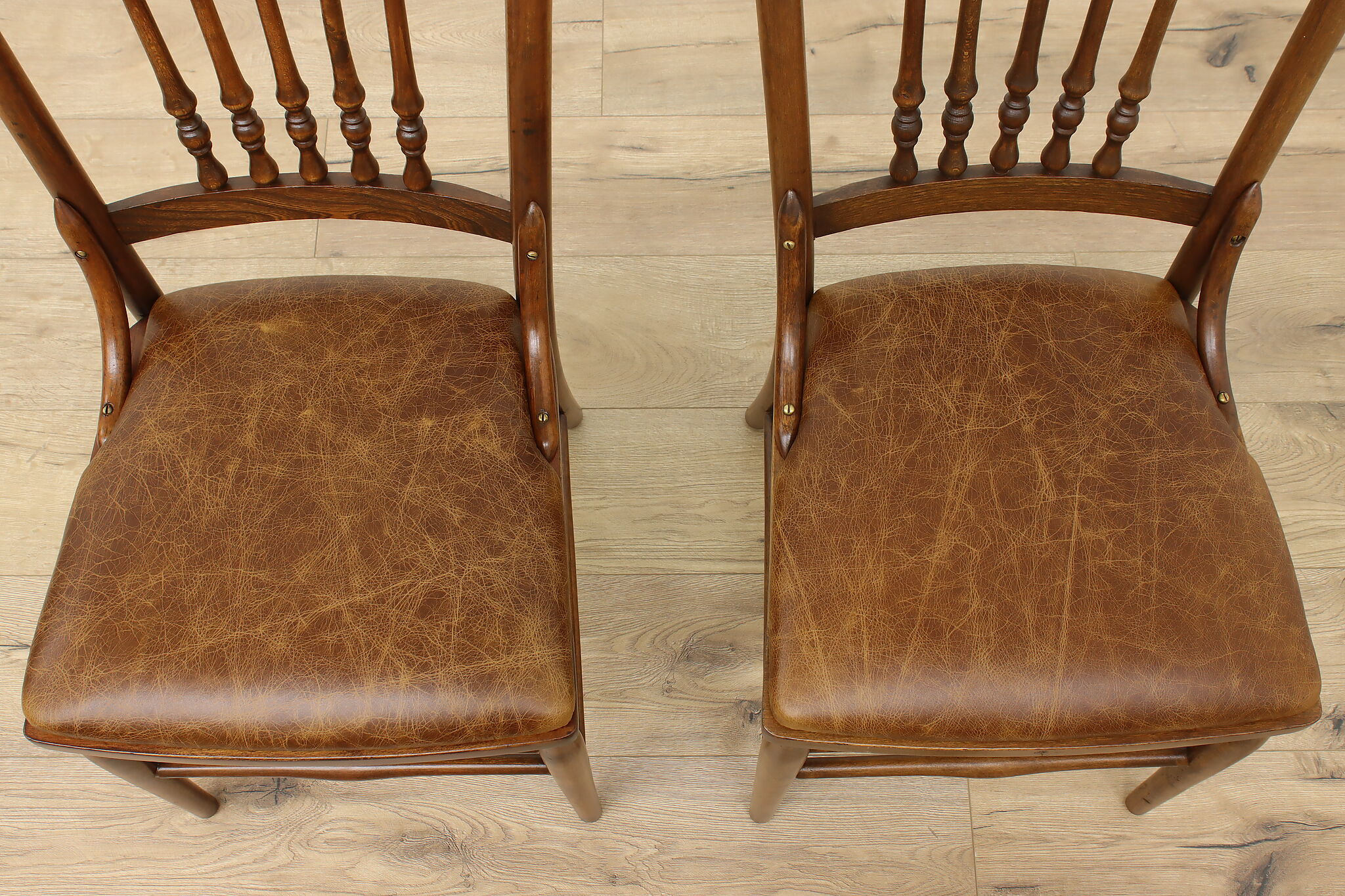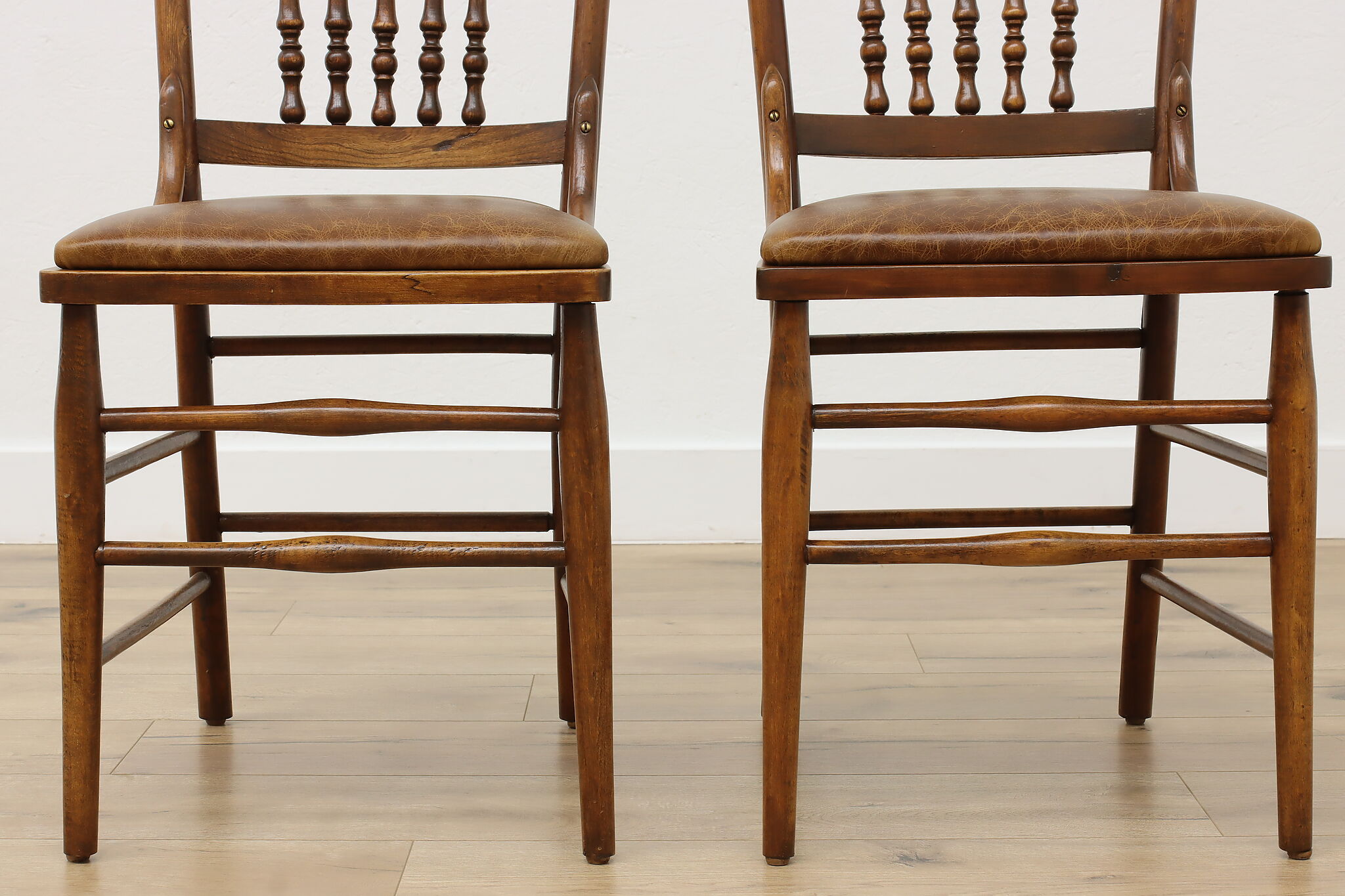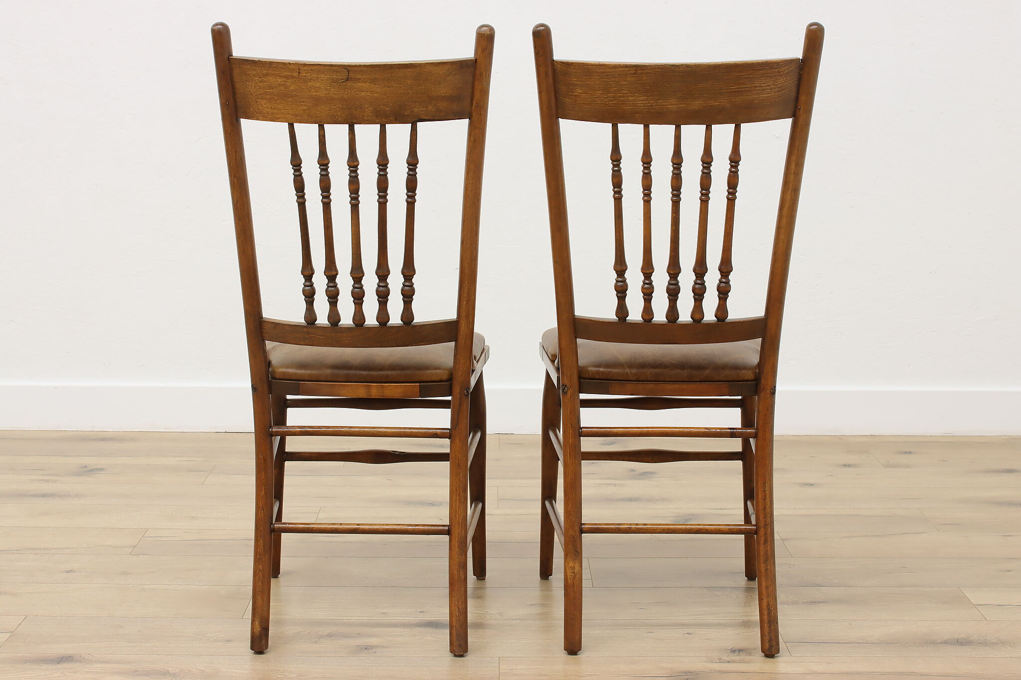"Pressback" carved chairs were popular around 1900 for being affordable and still retaining its farmhouse country charm.
