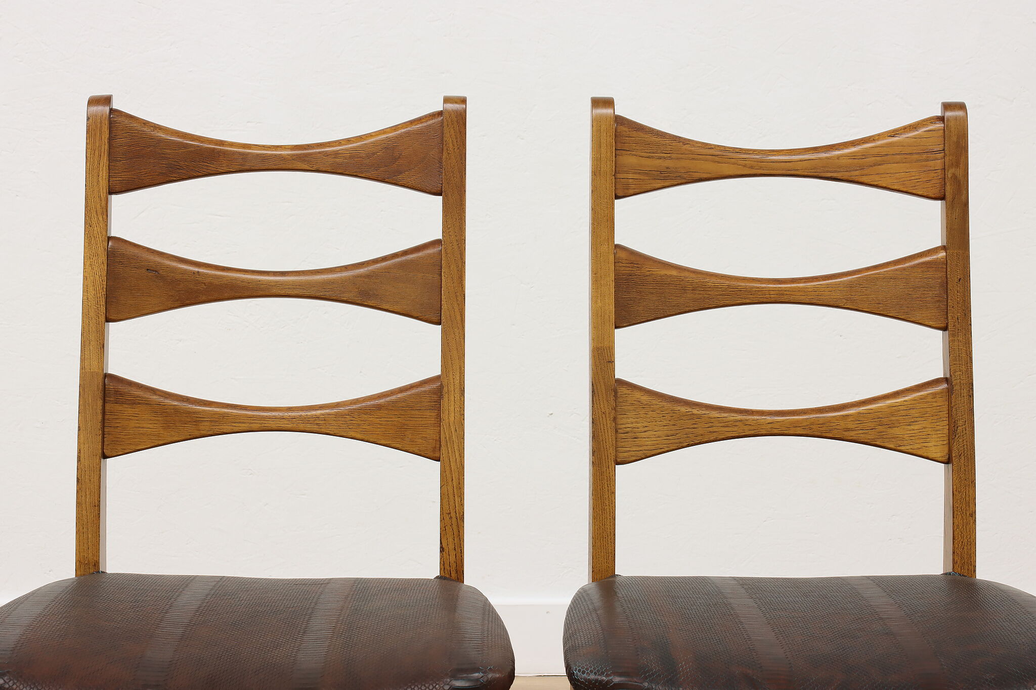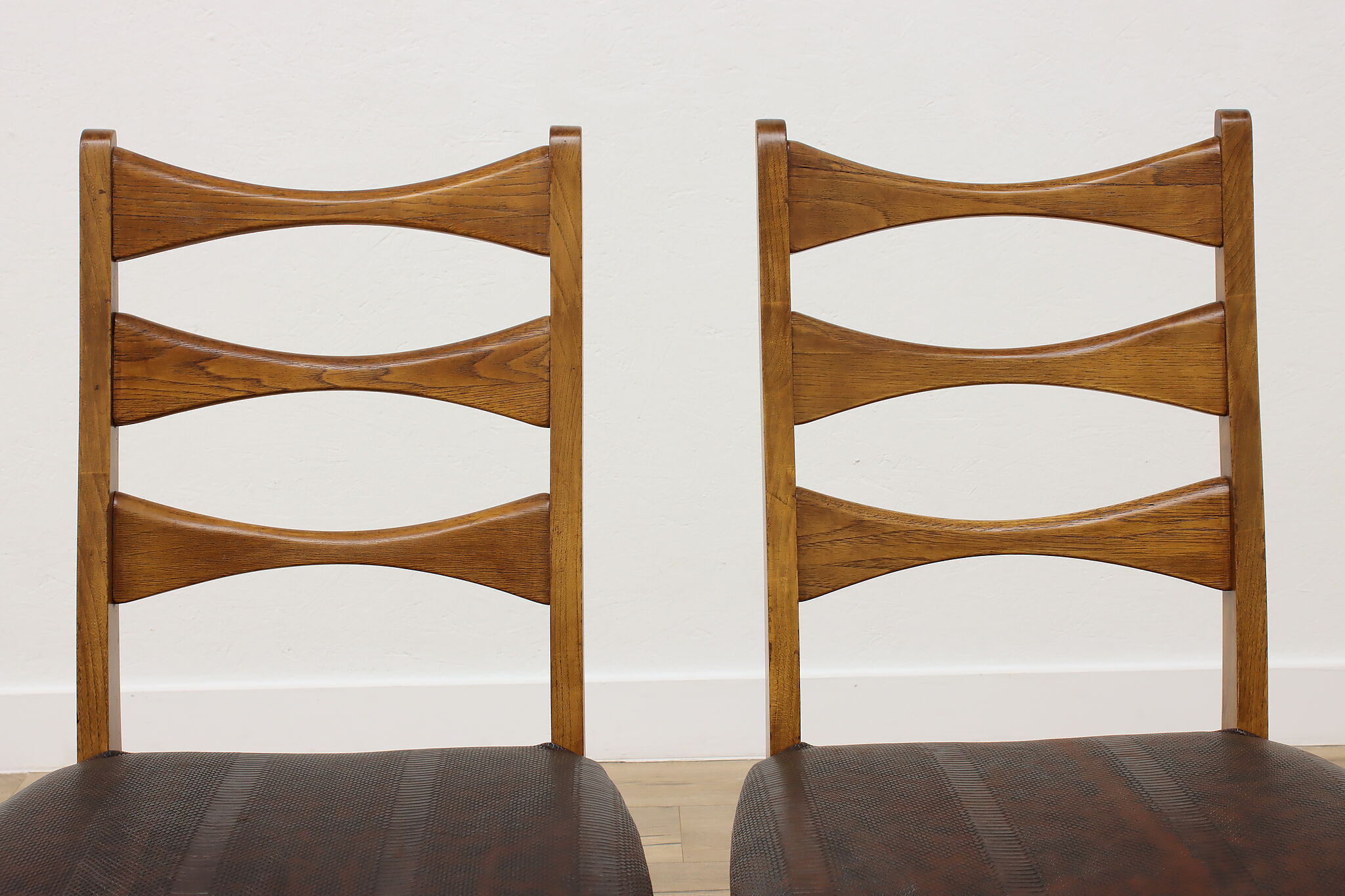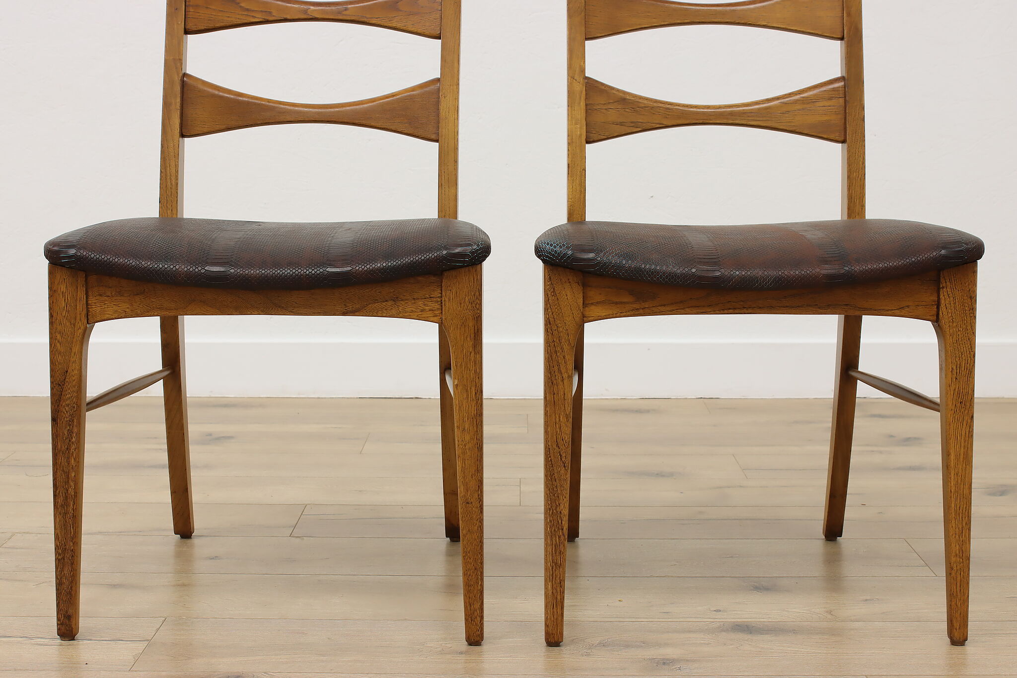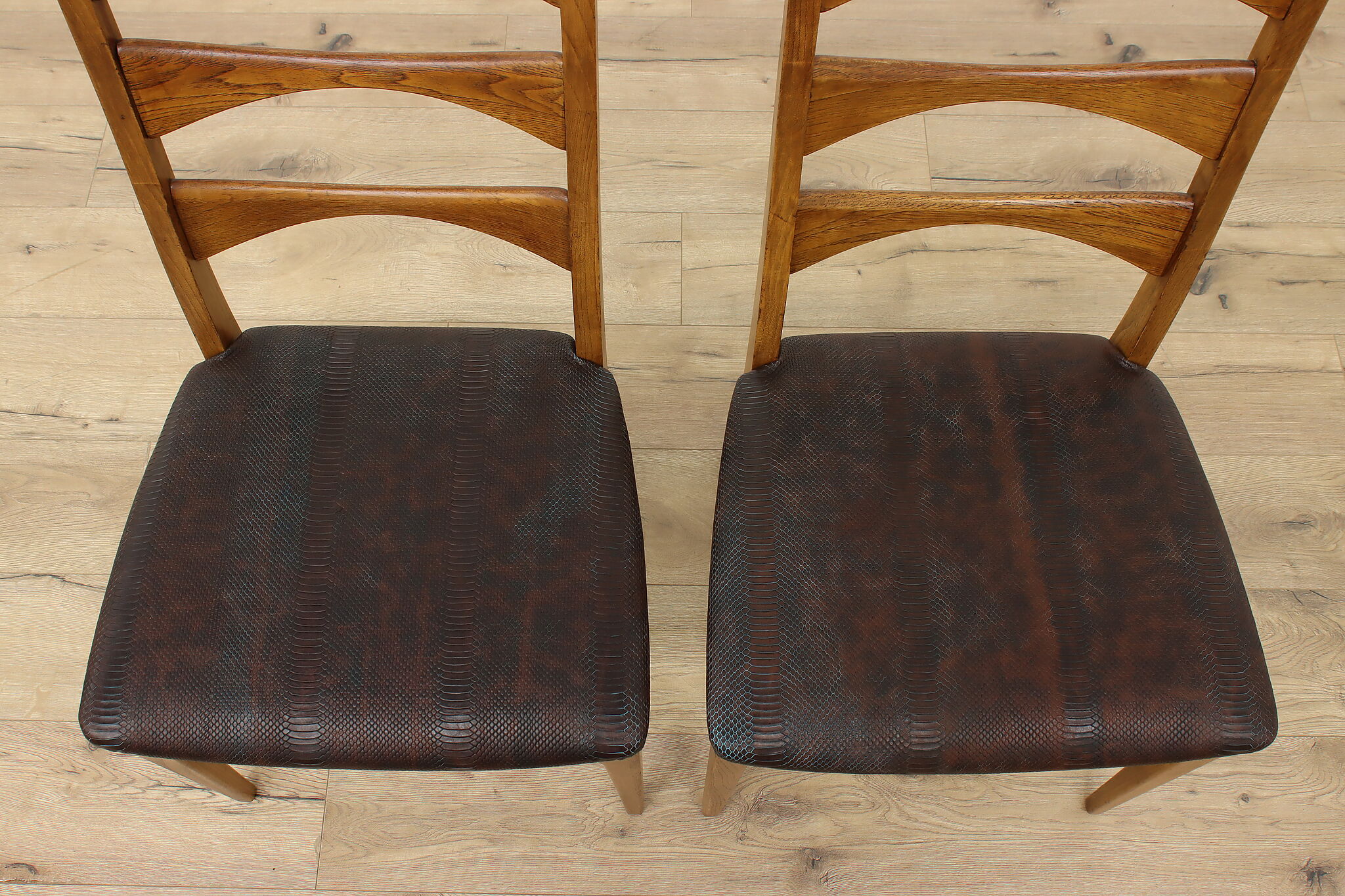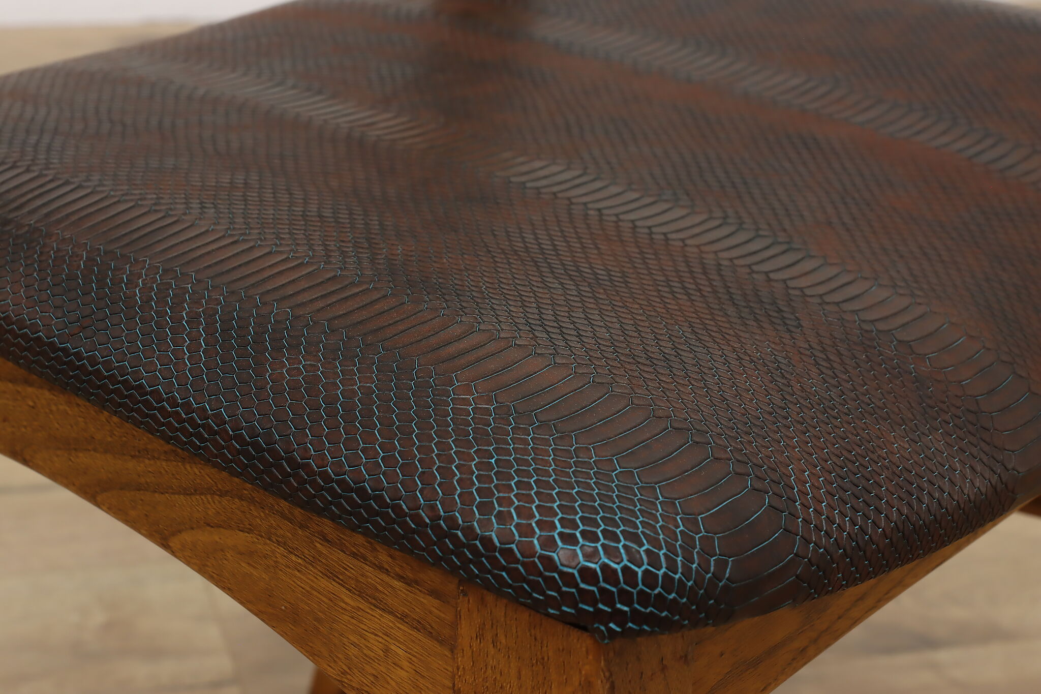 Take a closer look at the leather on this set of six dining chairs. You may be surprised to find the beautiful leather has embossed snakeskin grain!