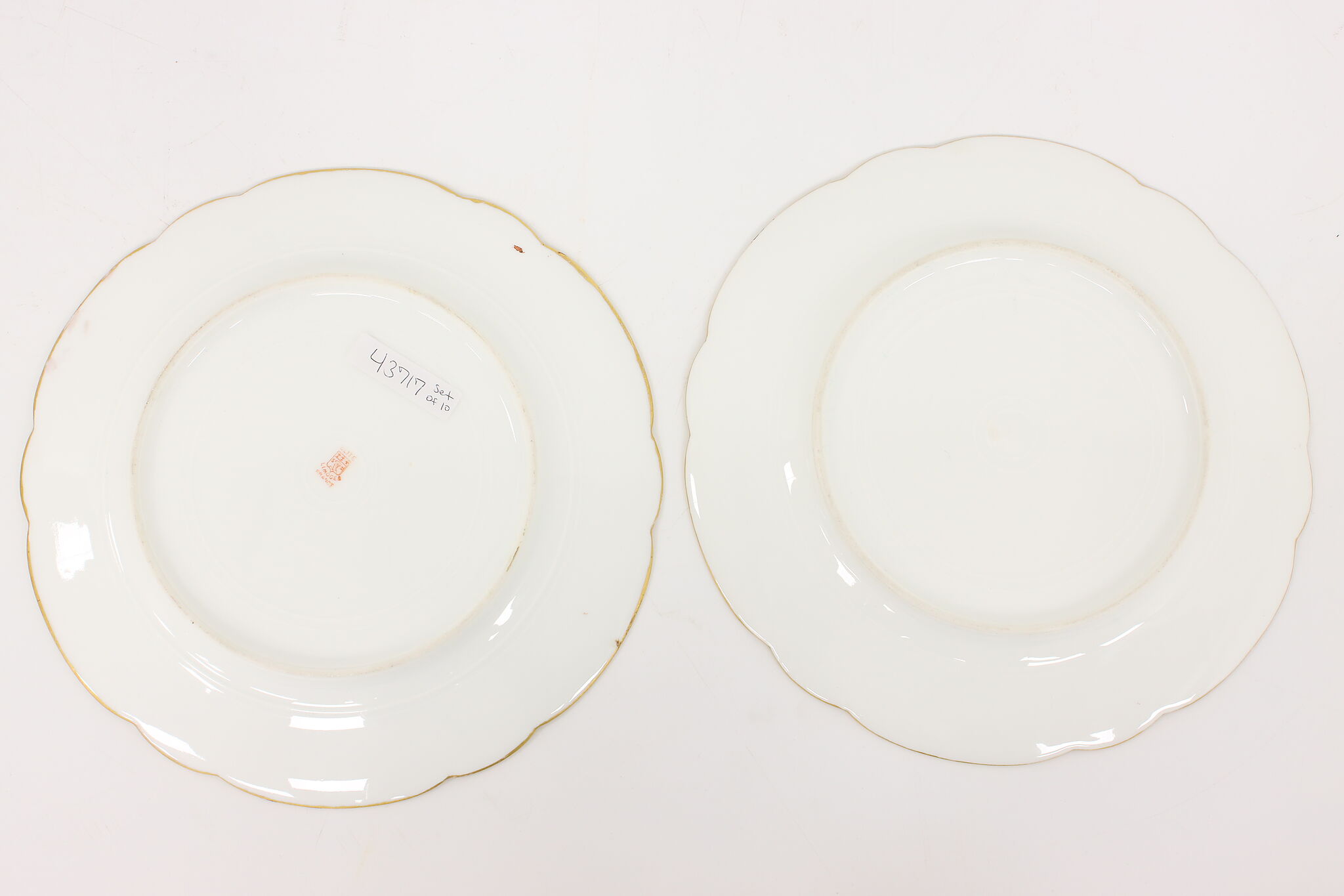 A set of ten cabinet or dining plates are French Limoges china with hand painting.