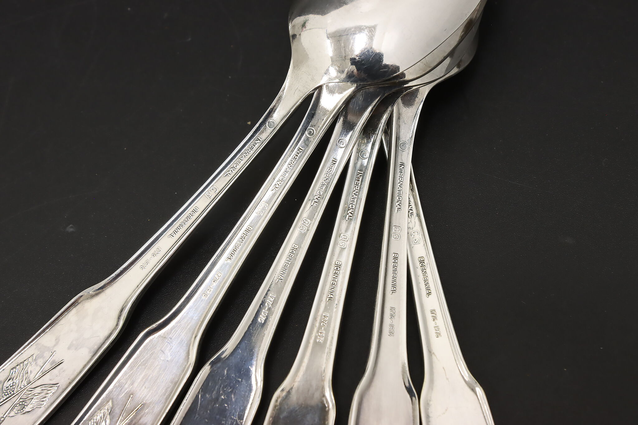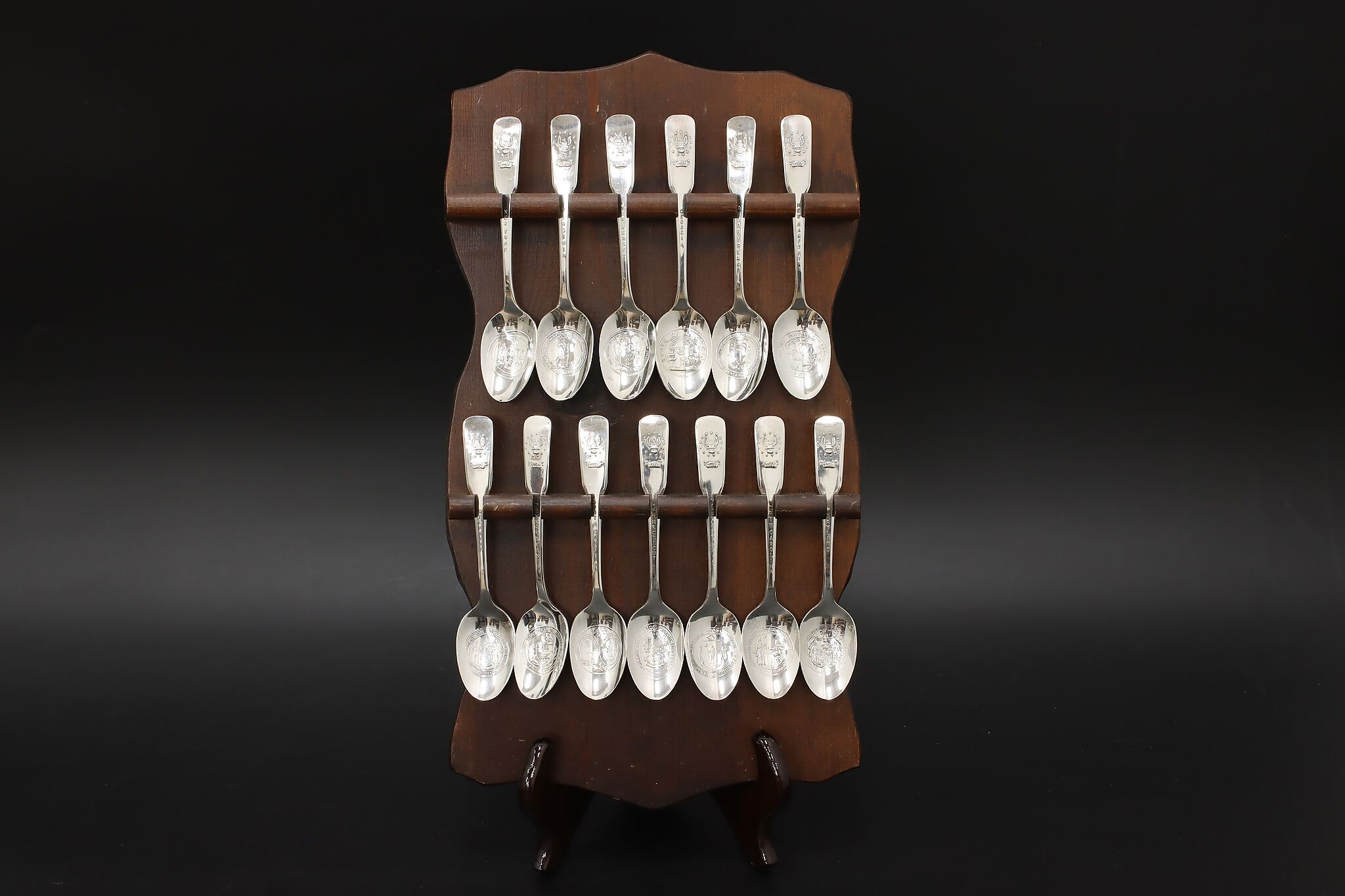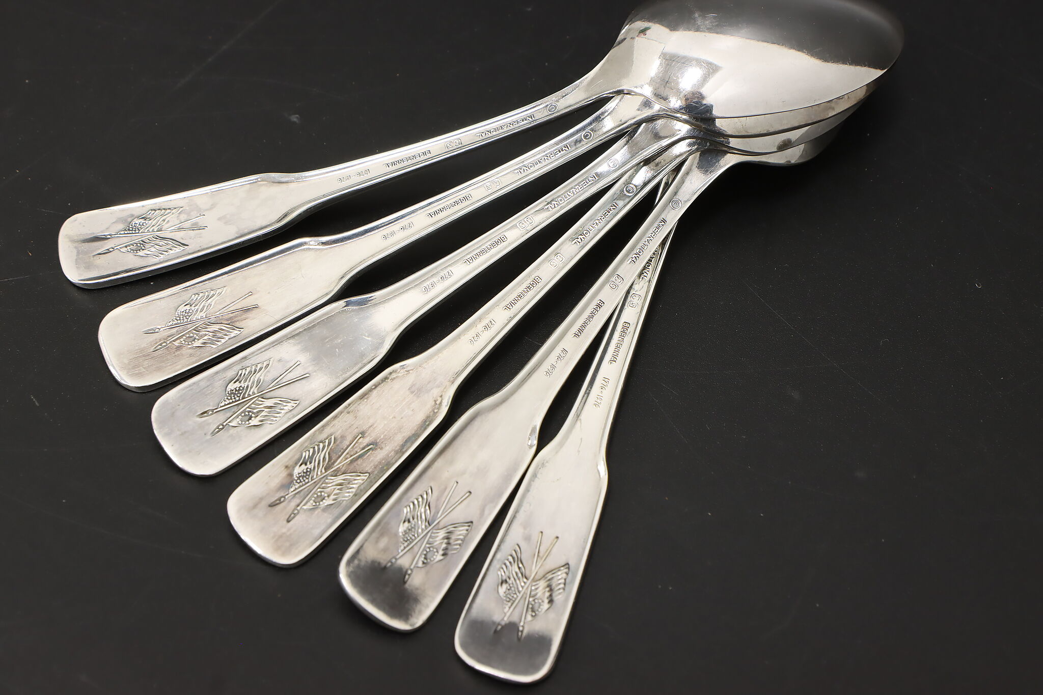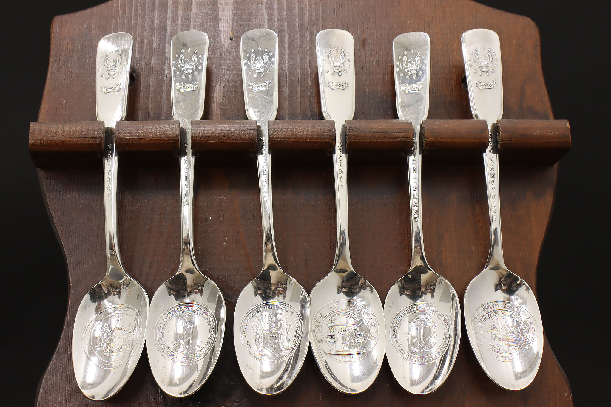 This set of thirteen silver plated spoons were created to celebrate America's bicentennial celebration in 1976, honoring the original thirteen colonies.