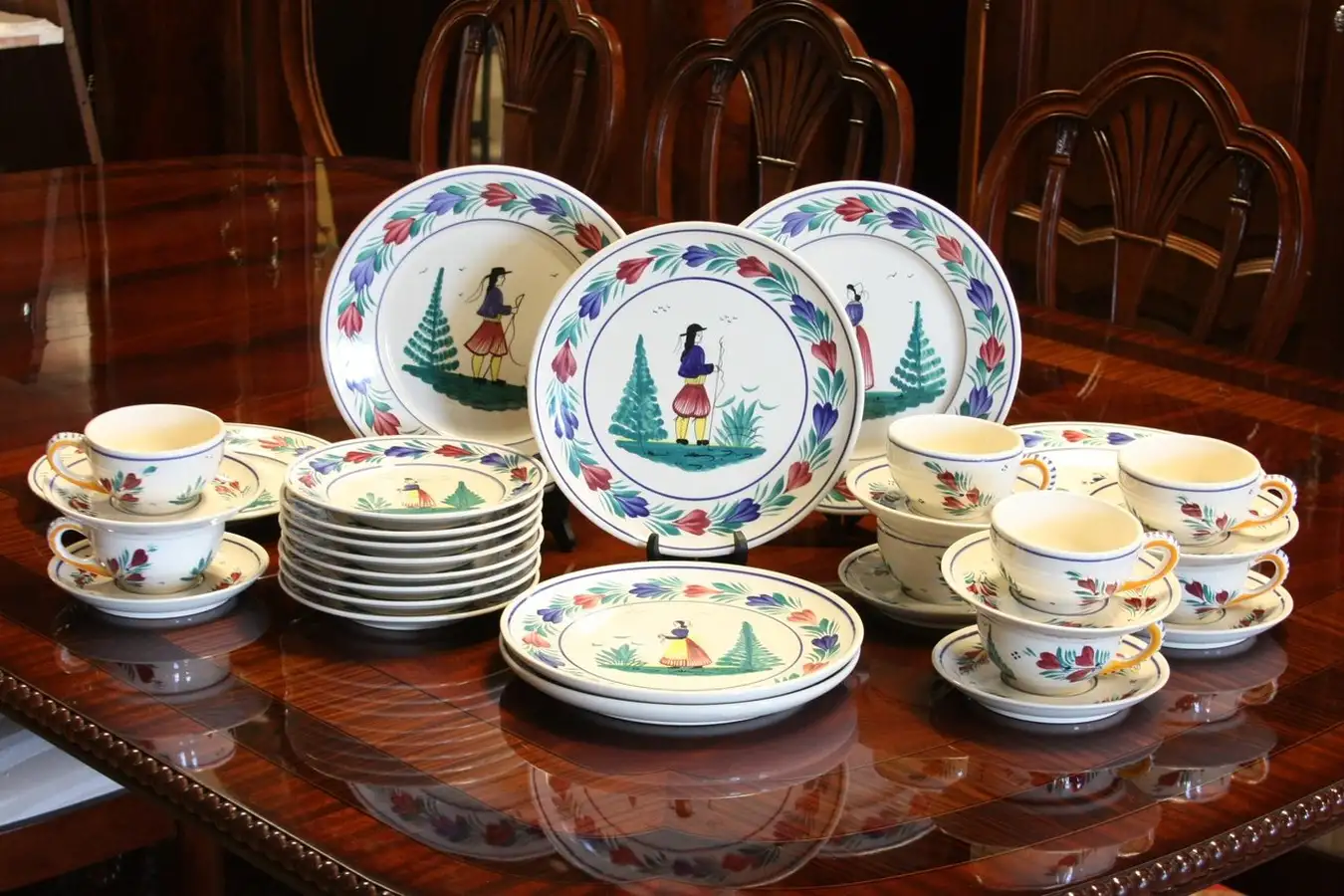 Quimper traditional pottery from the northwest corner of France celebrates the folk tradition of the Breton people of Brittany or Bretagne province, once a separate country with its own language.