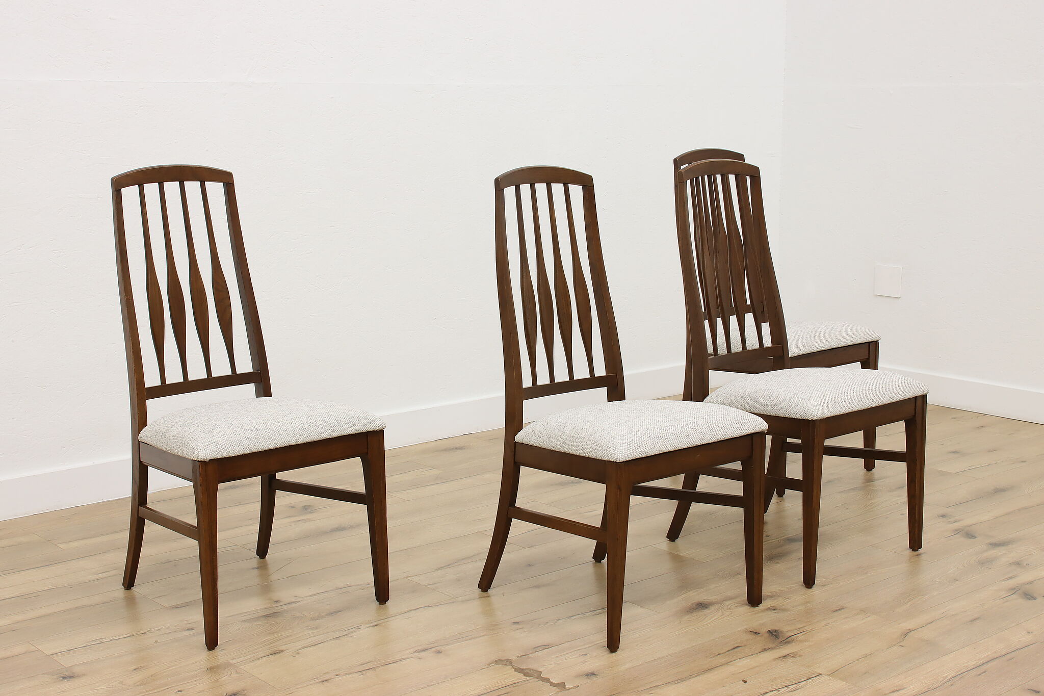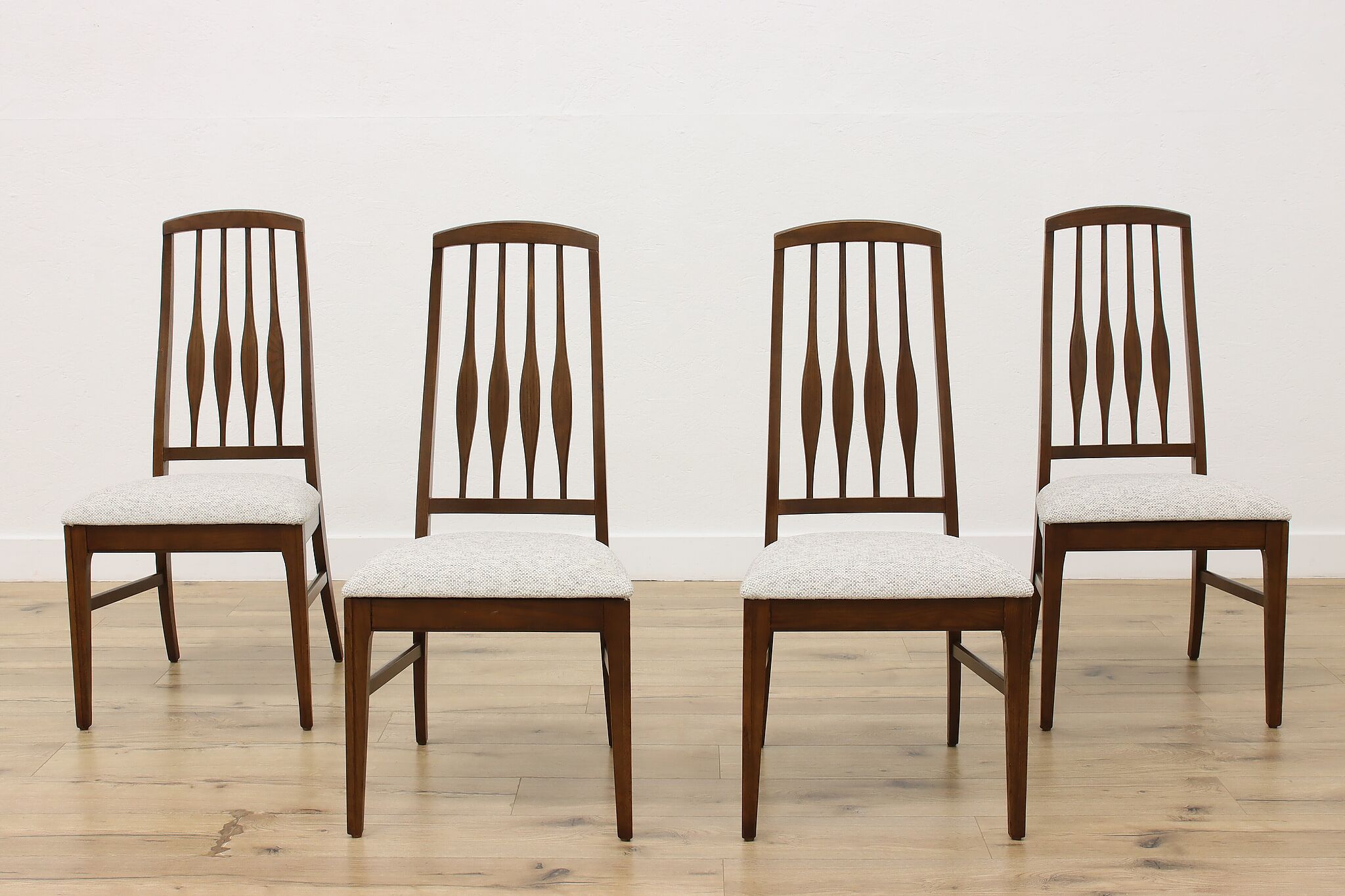 Refresh your dining room with this set of four Midcentury Modern chairs for charming vintage character.