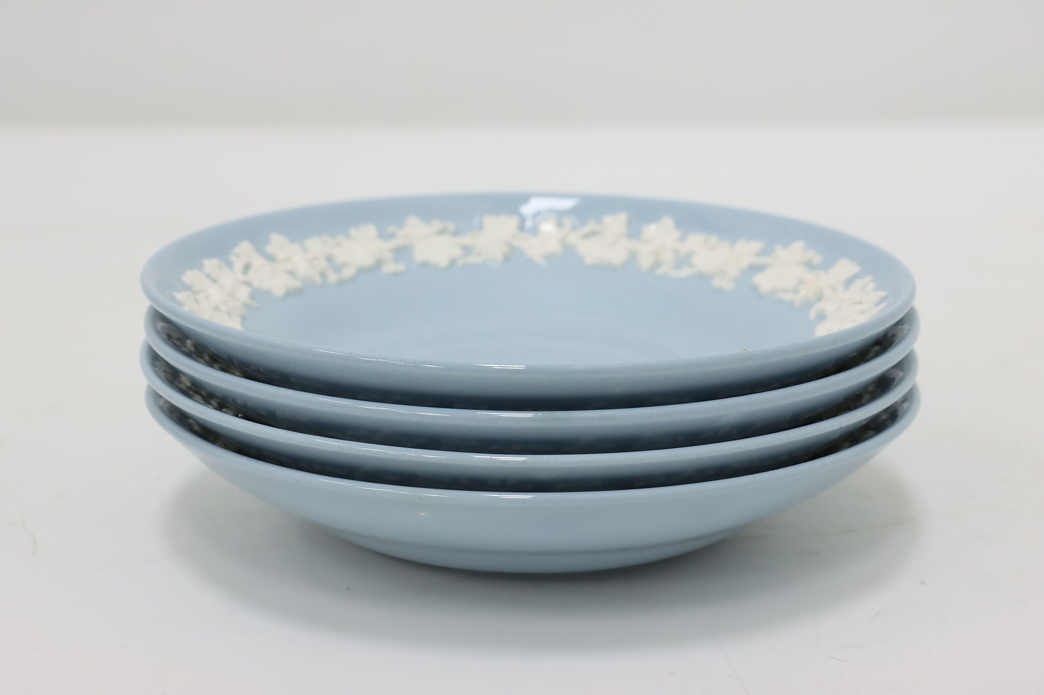 This set of four saucers are by famous English makers "Wedgwood" for their Queen's Ware collection.
