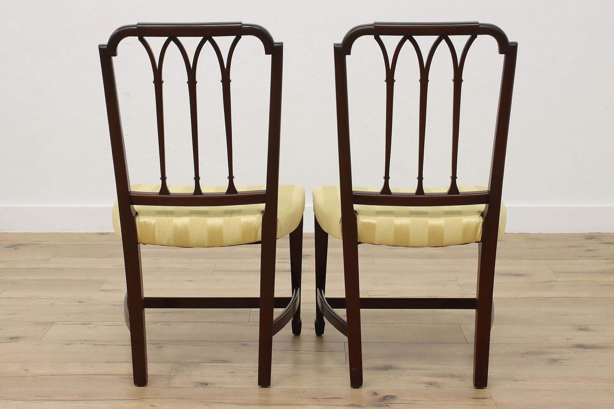 This beautiful set of six Hepplewhite design dining chairs have been newly upholstered.