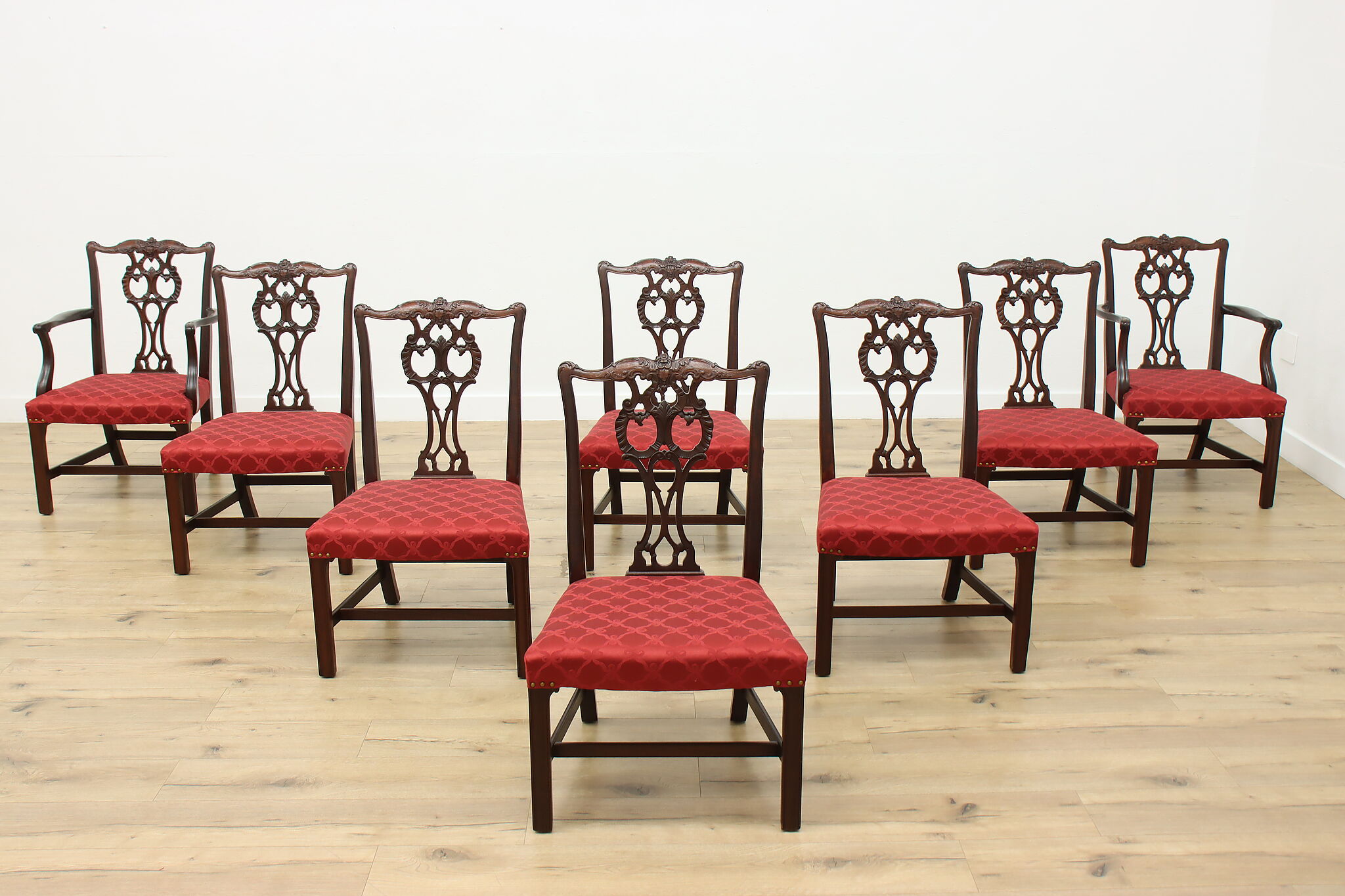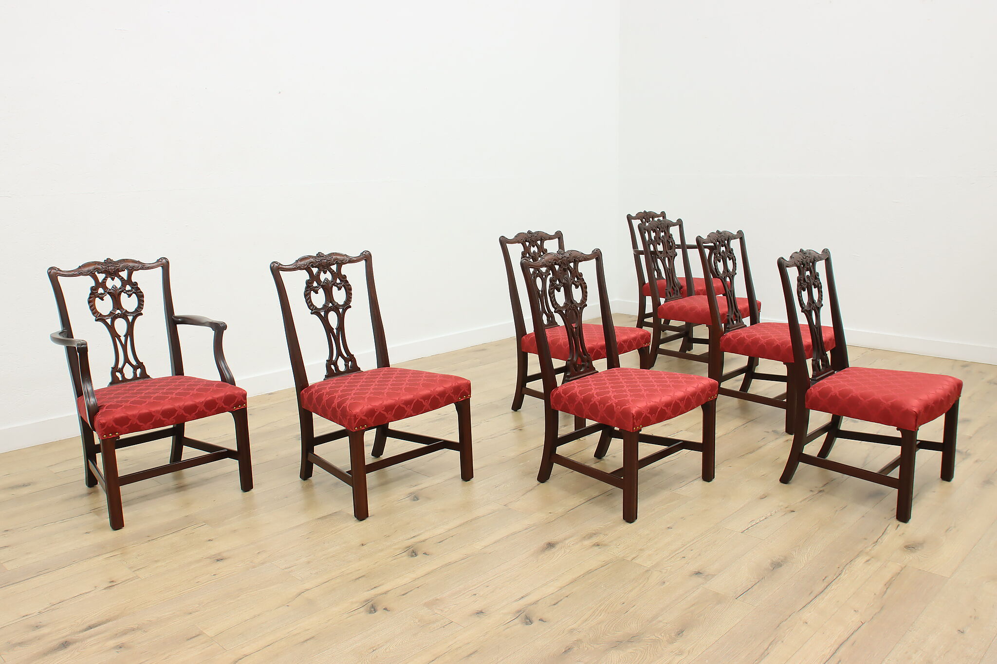 Bursting with antique charm and sporting beautiful new red upholstery, these eight chairs are just the refresh your dining room needs.