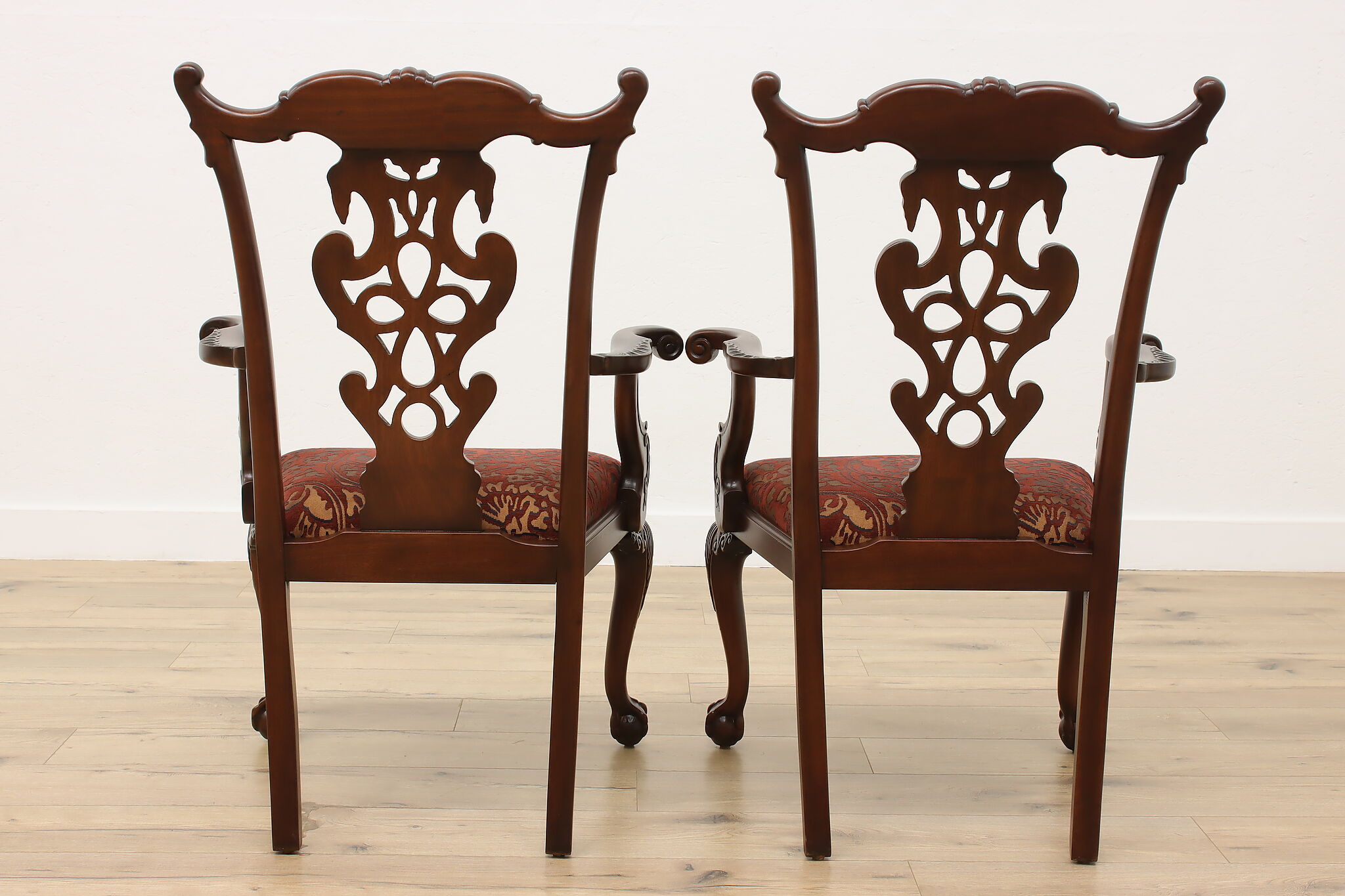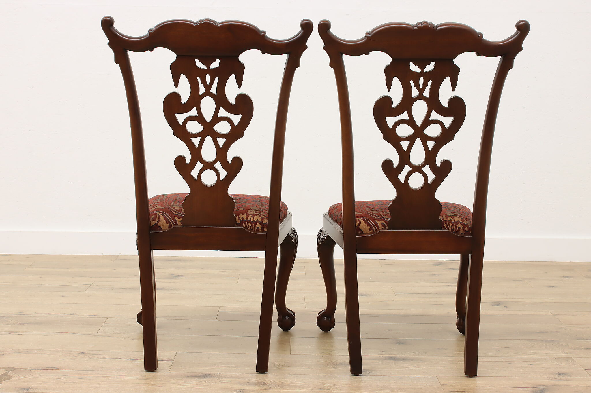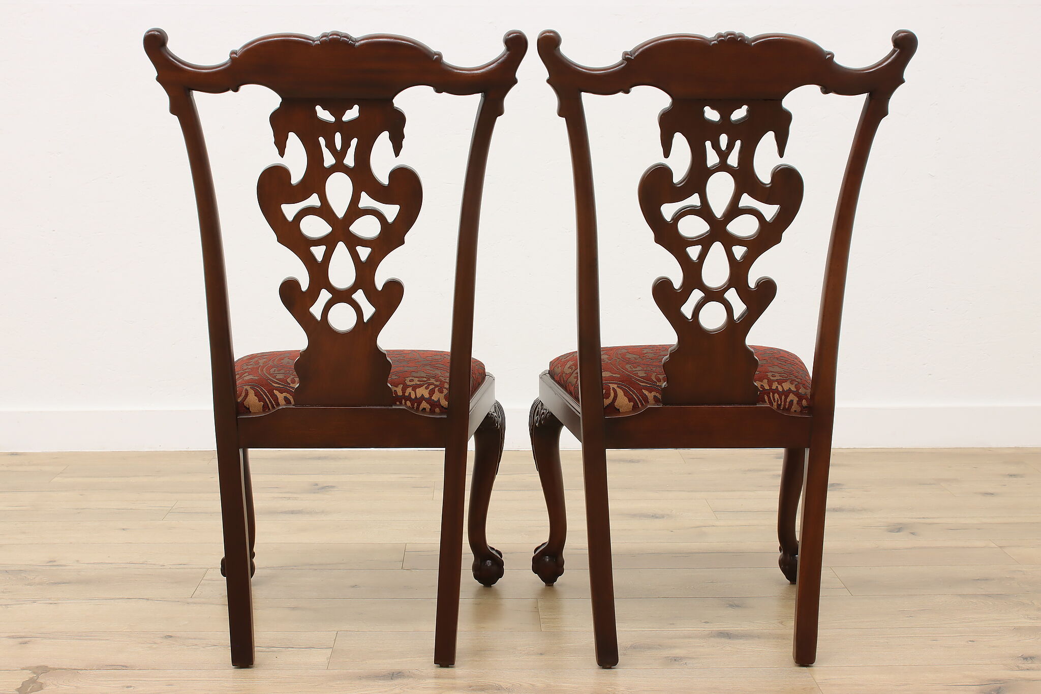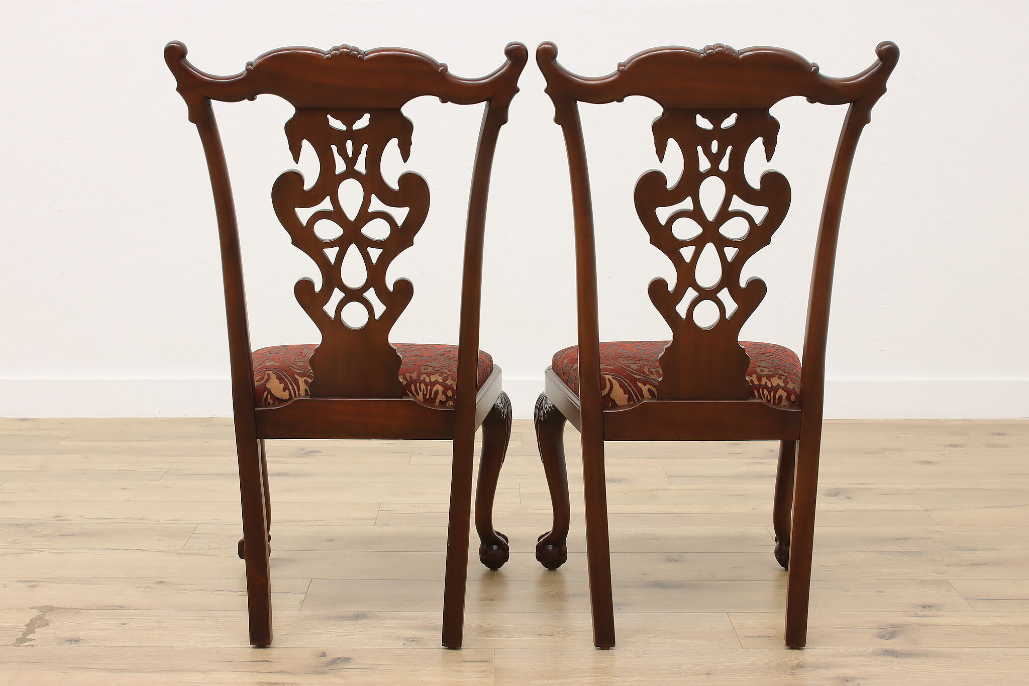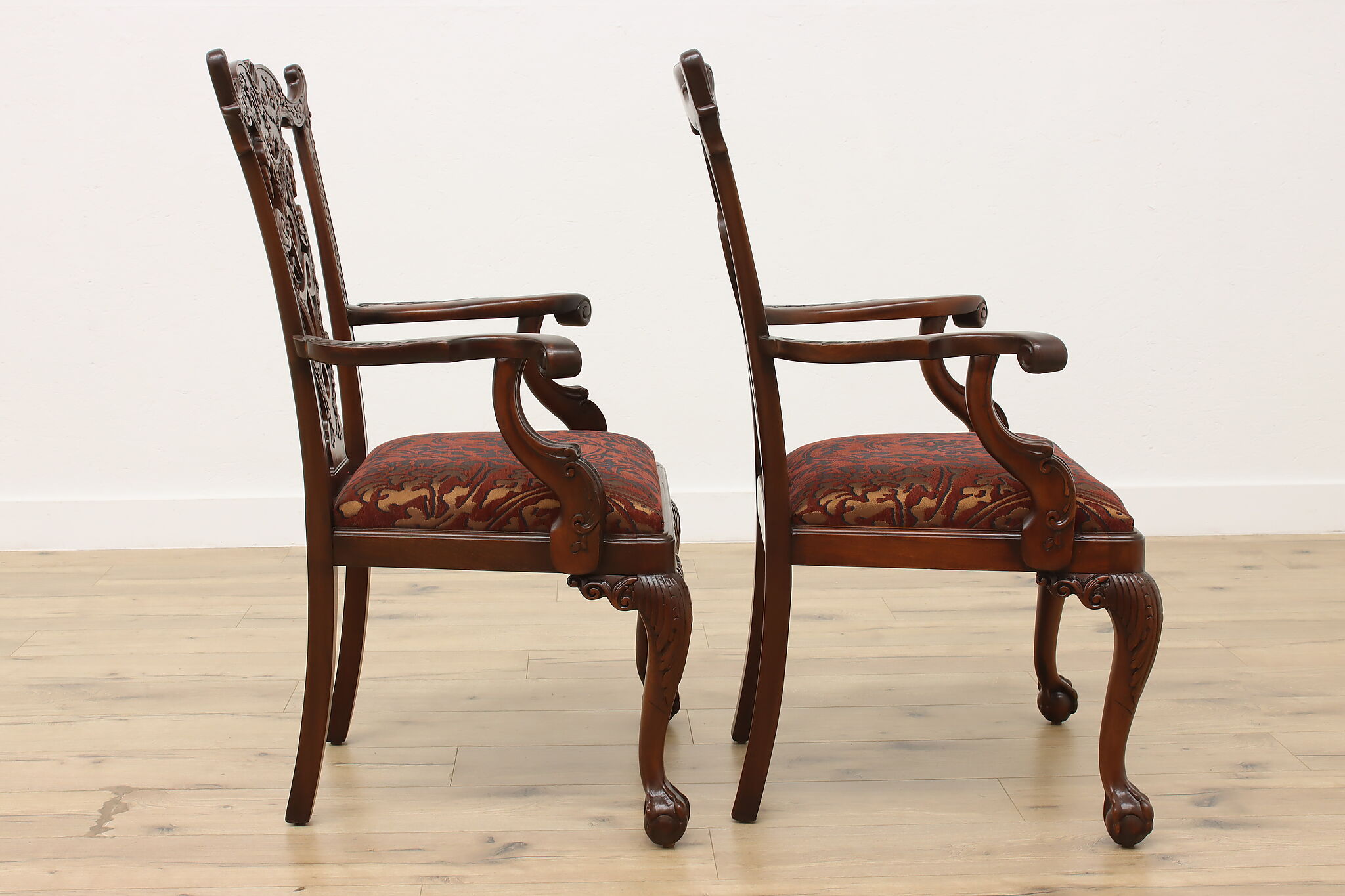 A gorgeously carved set of eight Georgian design dining chairs bring elegance and intricate craftsmanship.
