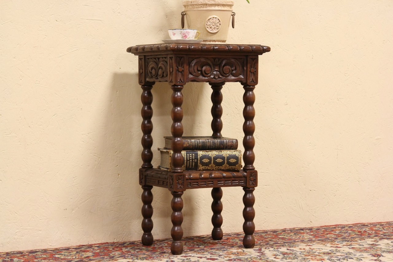 Richly hand carved in Argentina in the 1940's, this nightstand, bedside table or pedestal is in traditional Spanish Colonial design.