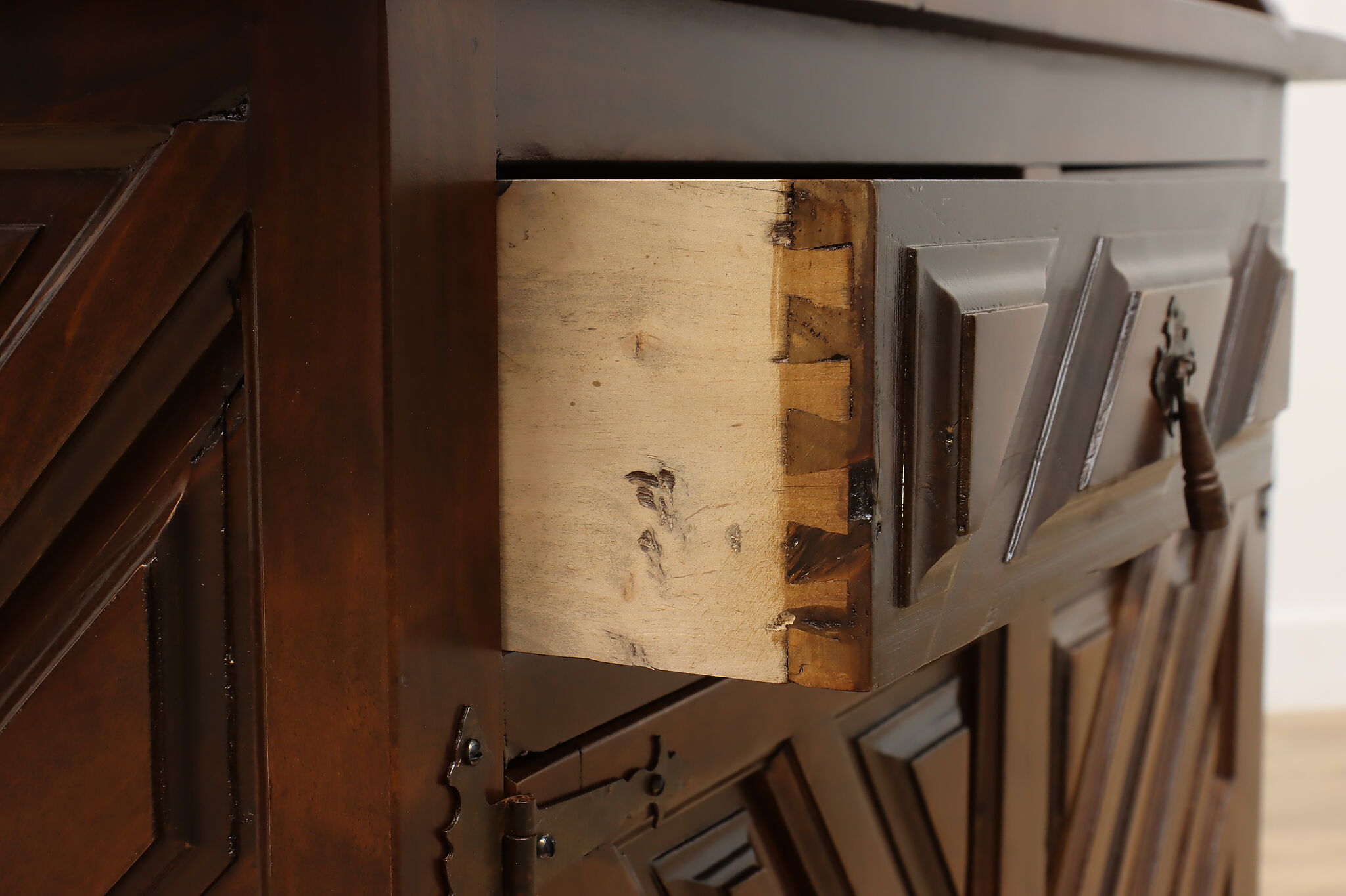 This beautifully carved kitchen or bar cabinet from Spain can also be used to display trinkets and treasures.