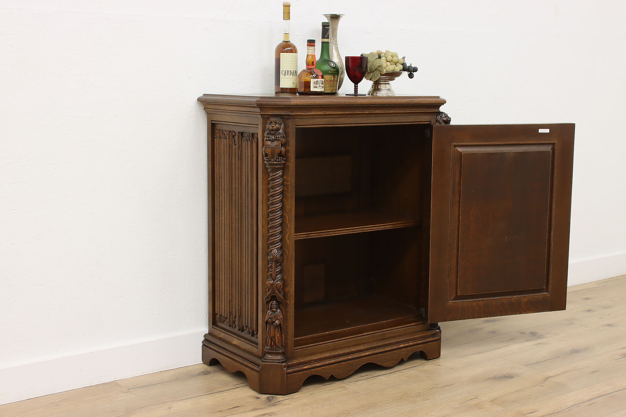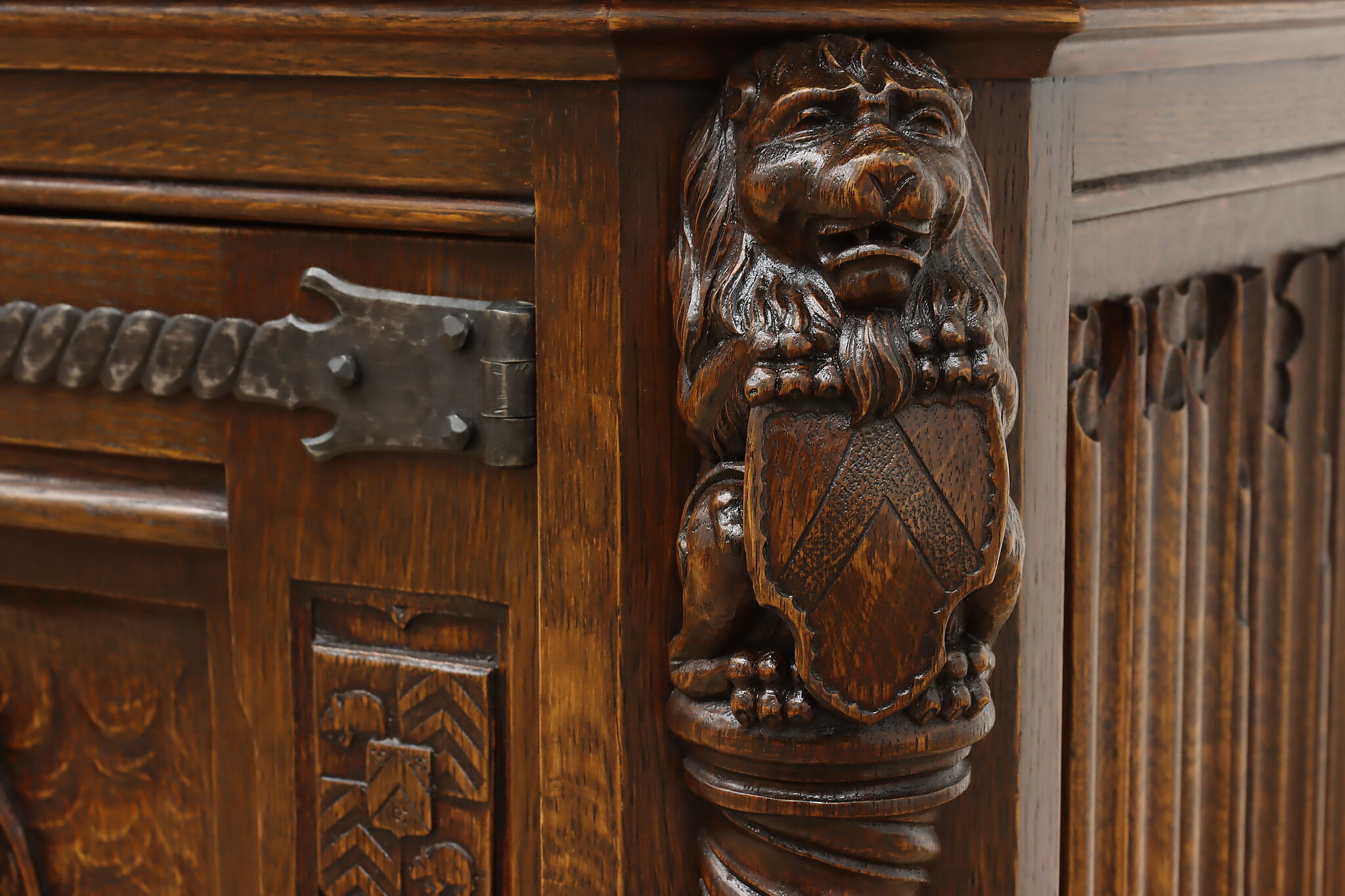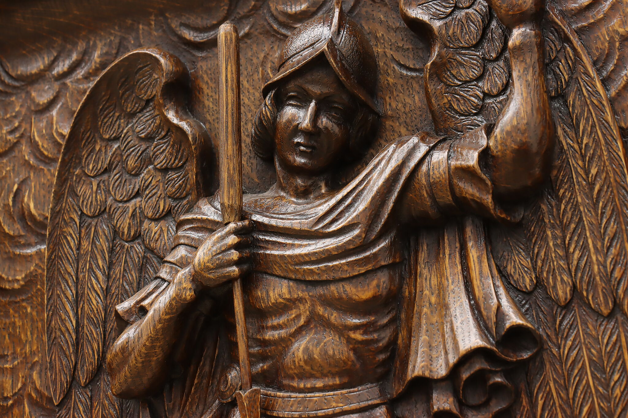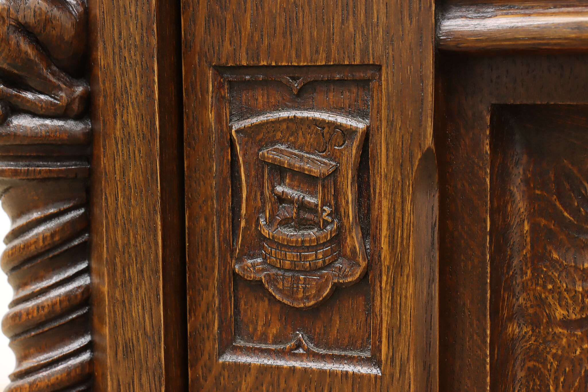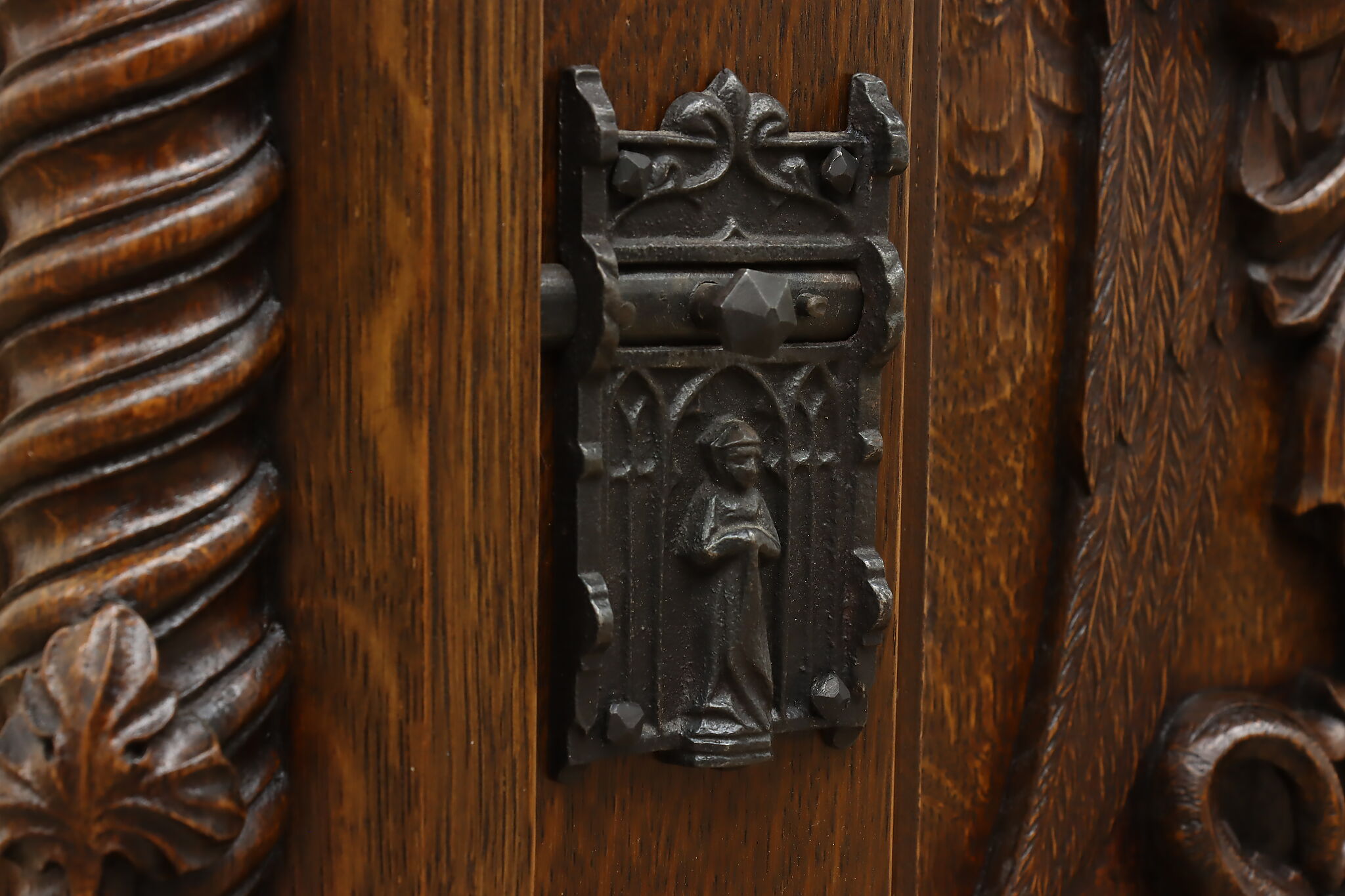 The famous story of St. George slaying the dragon is carved in beautiful high relief on this bar or hall cabinet!