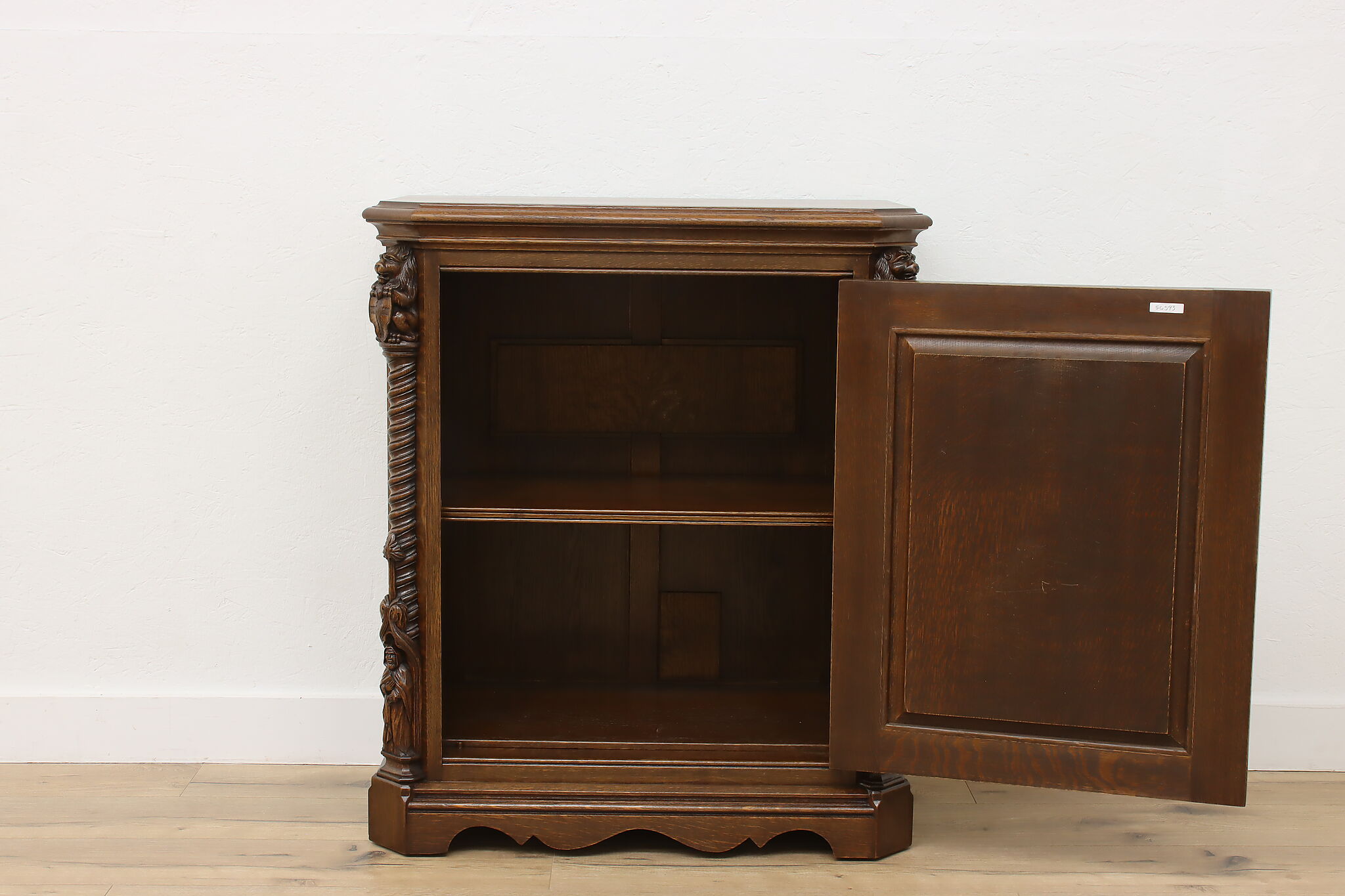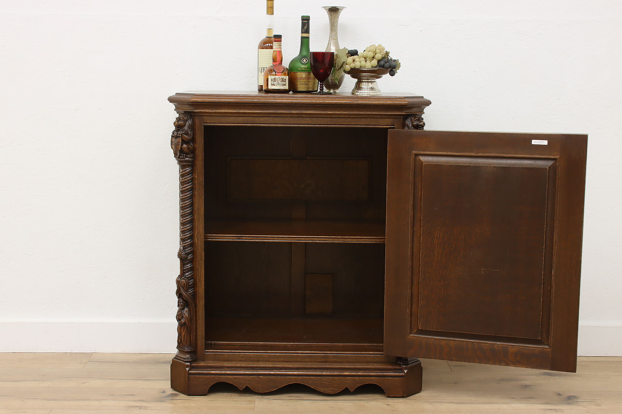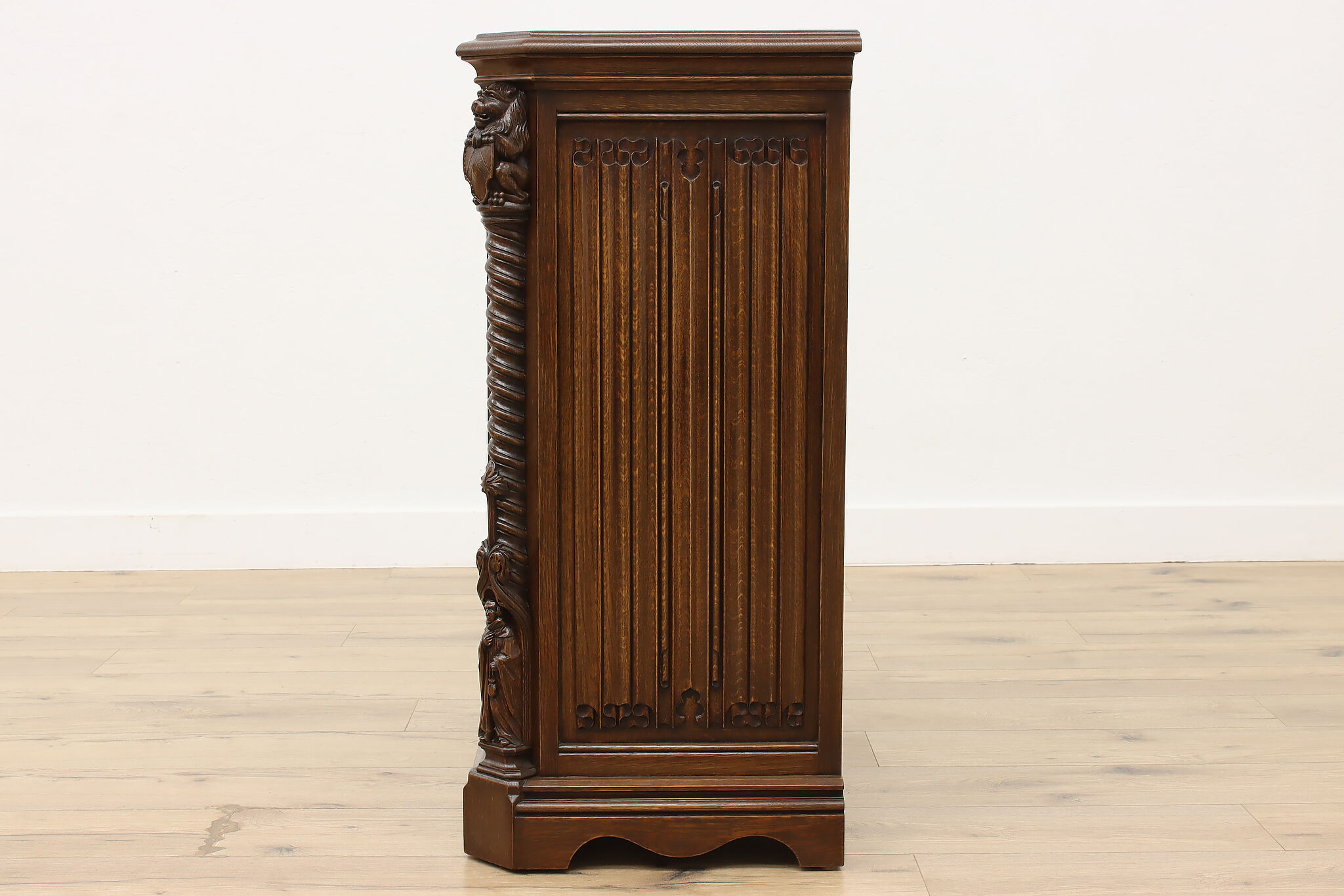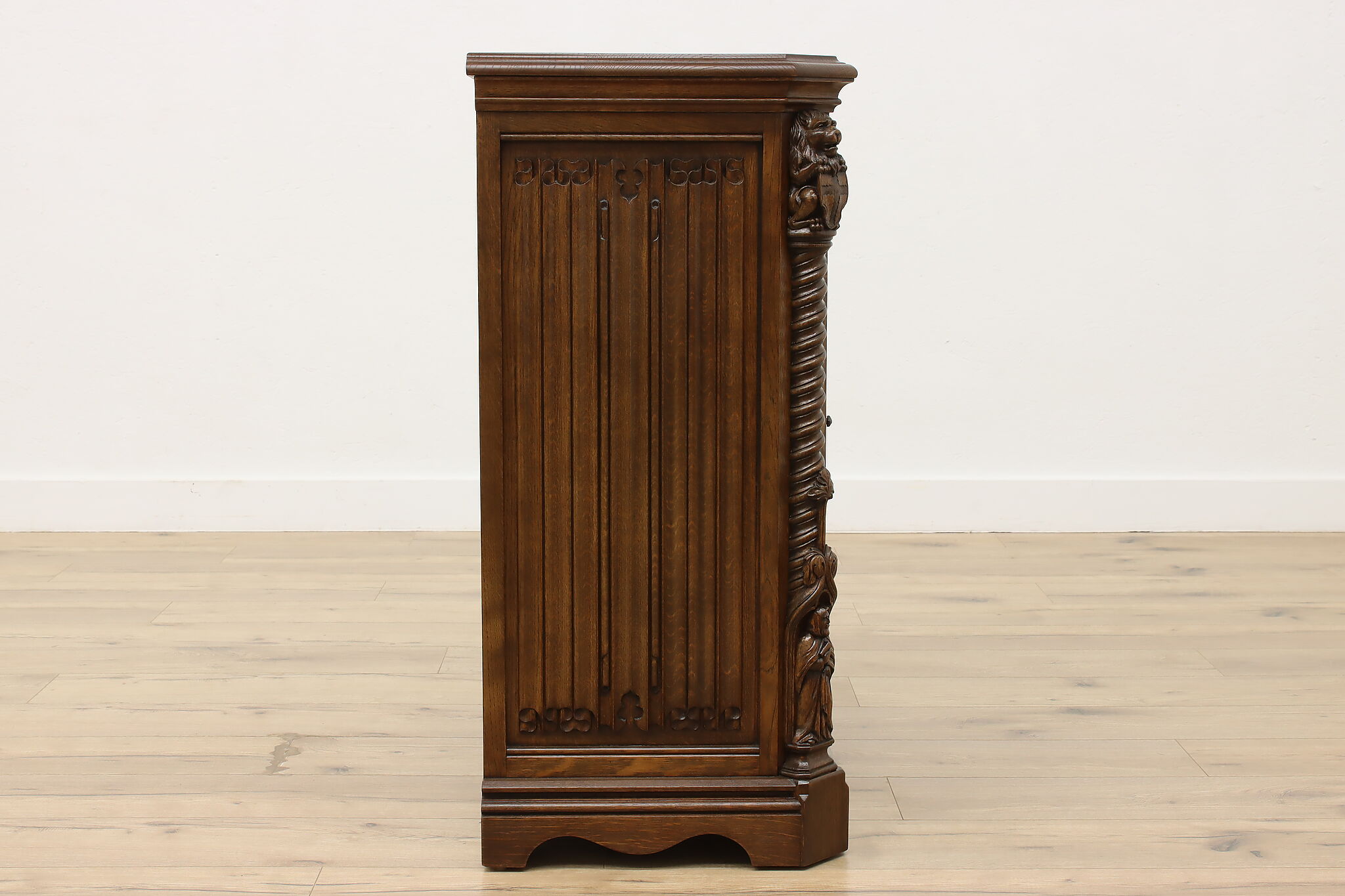 The famous story of St. George slaying the dragon is carved in beautiful high relief on this bar or hall cabinet!