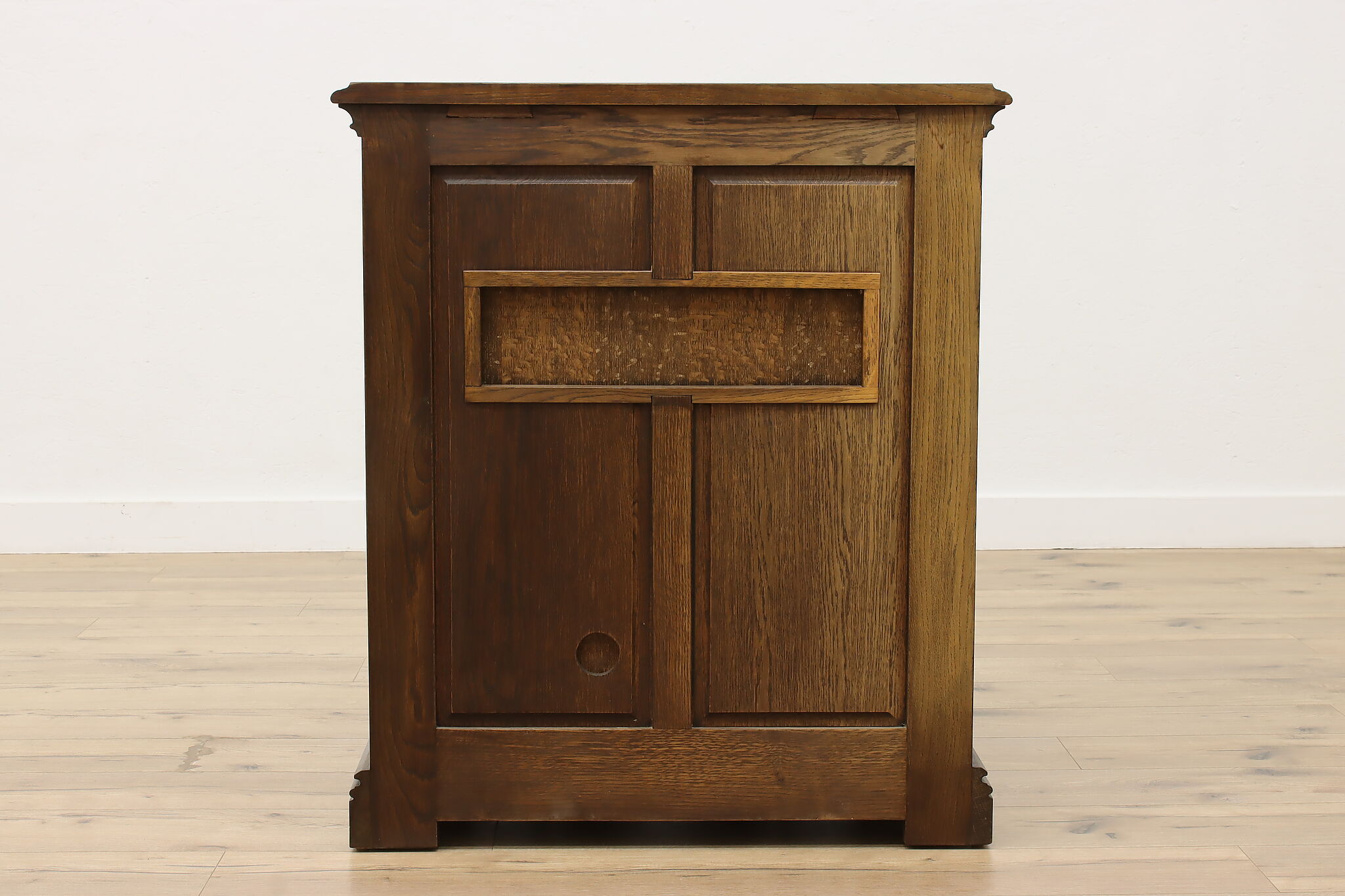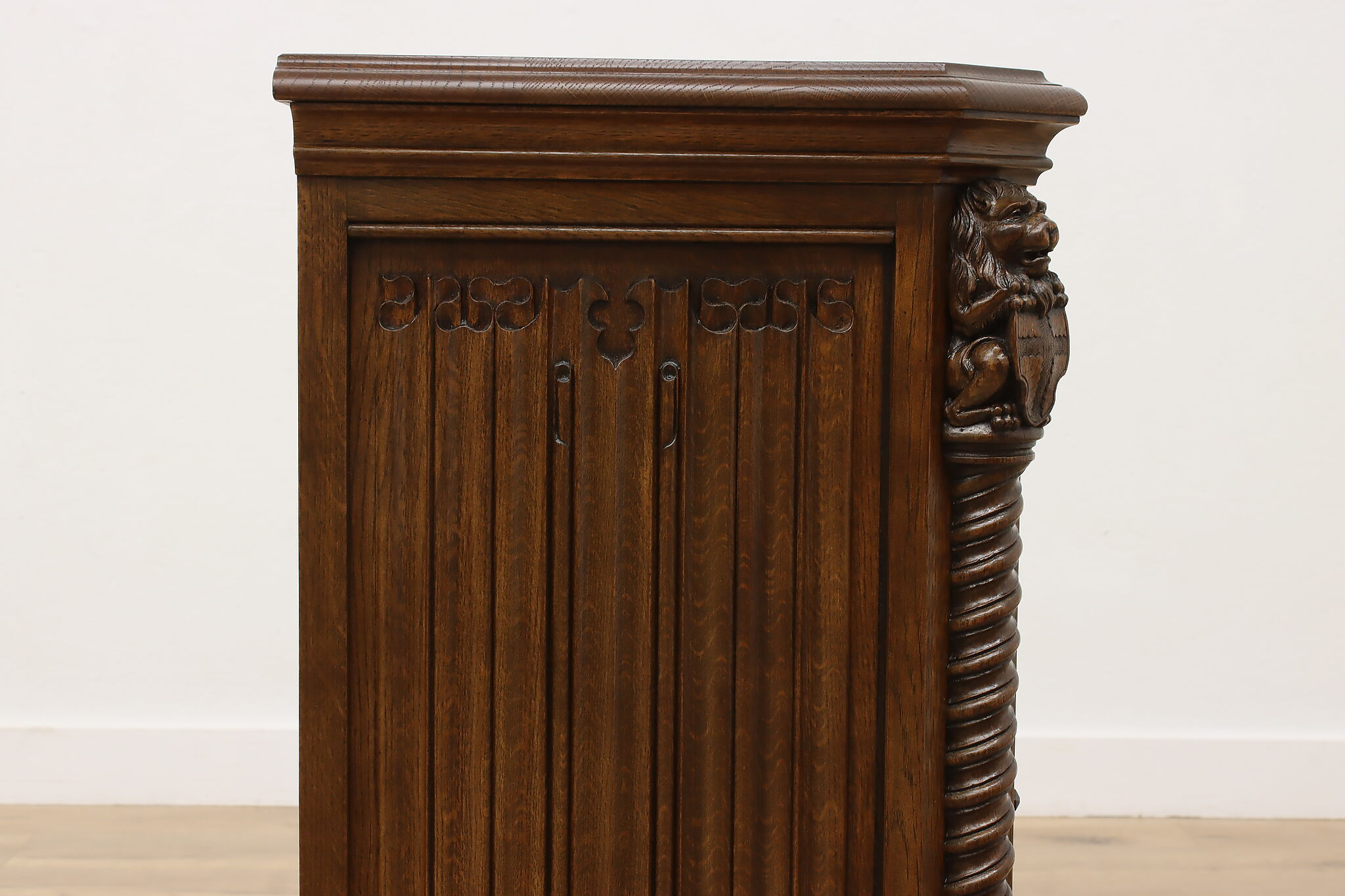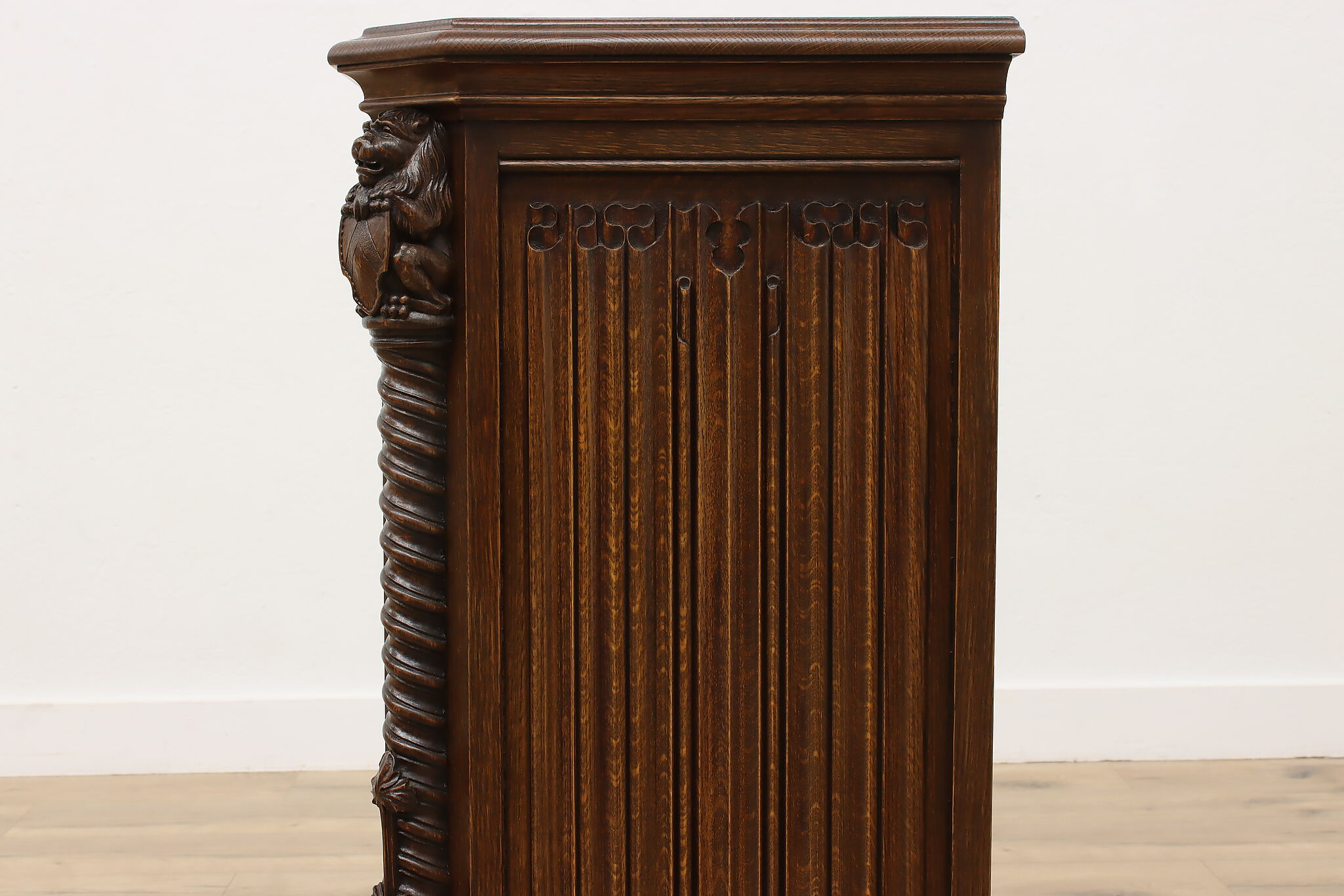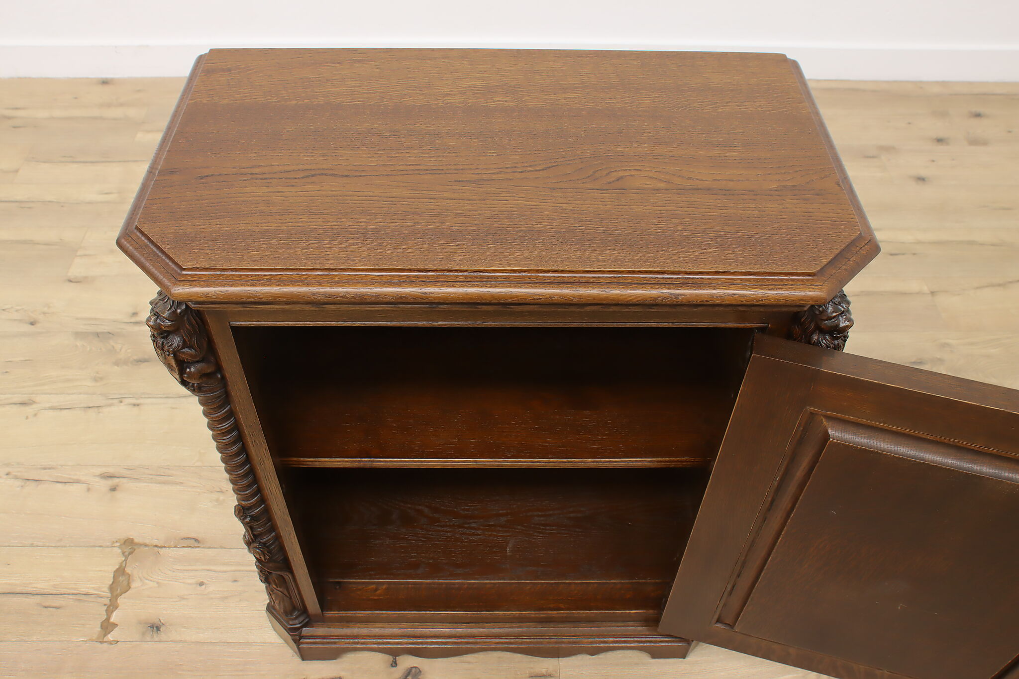 The famous story of St. George slaying the dragon is carved in beautiful high relief on this bar or hall cabinet!