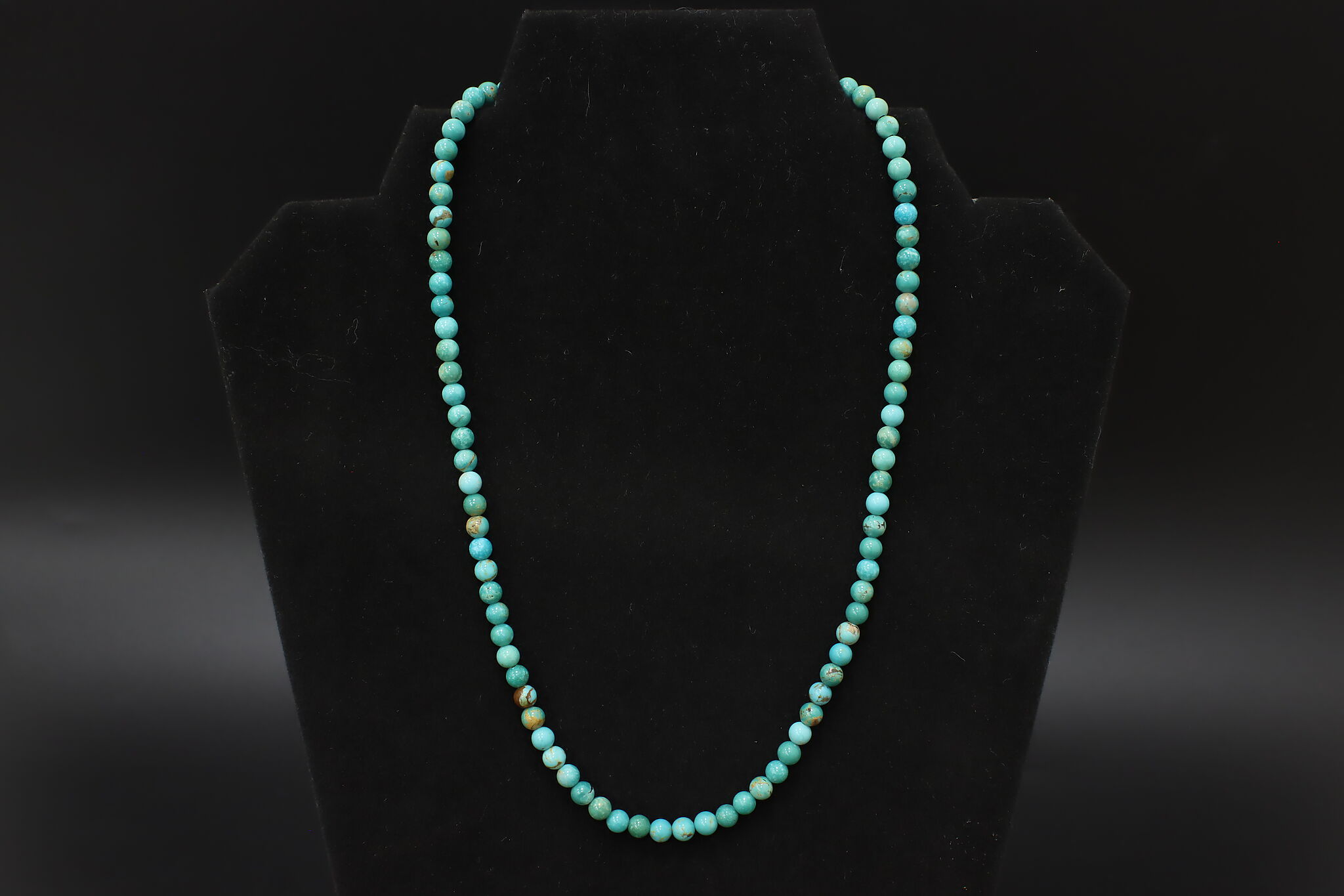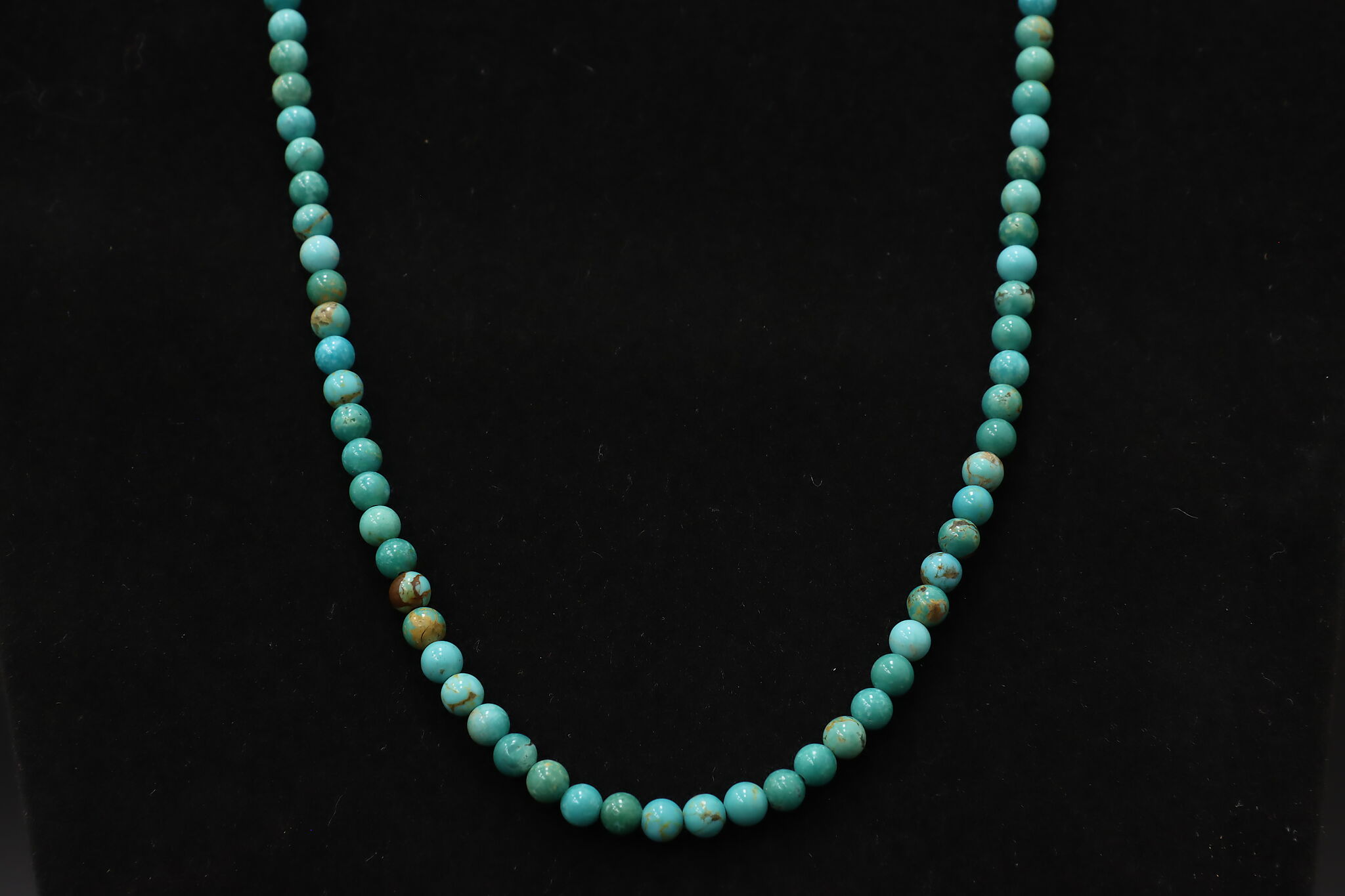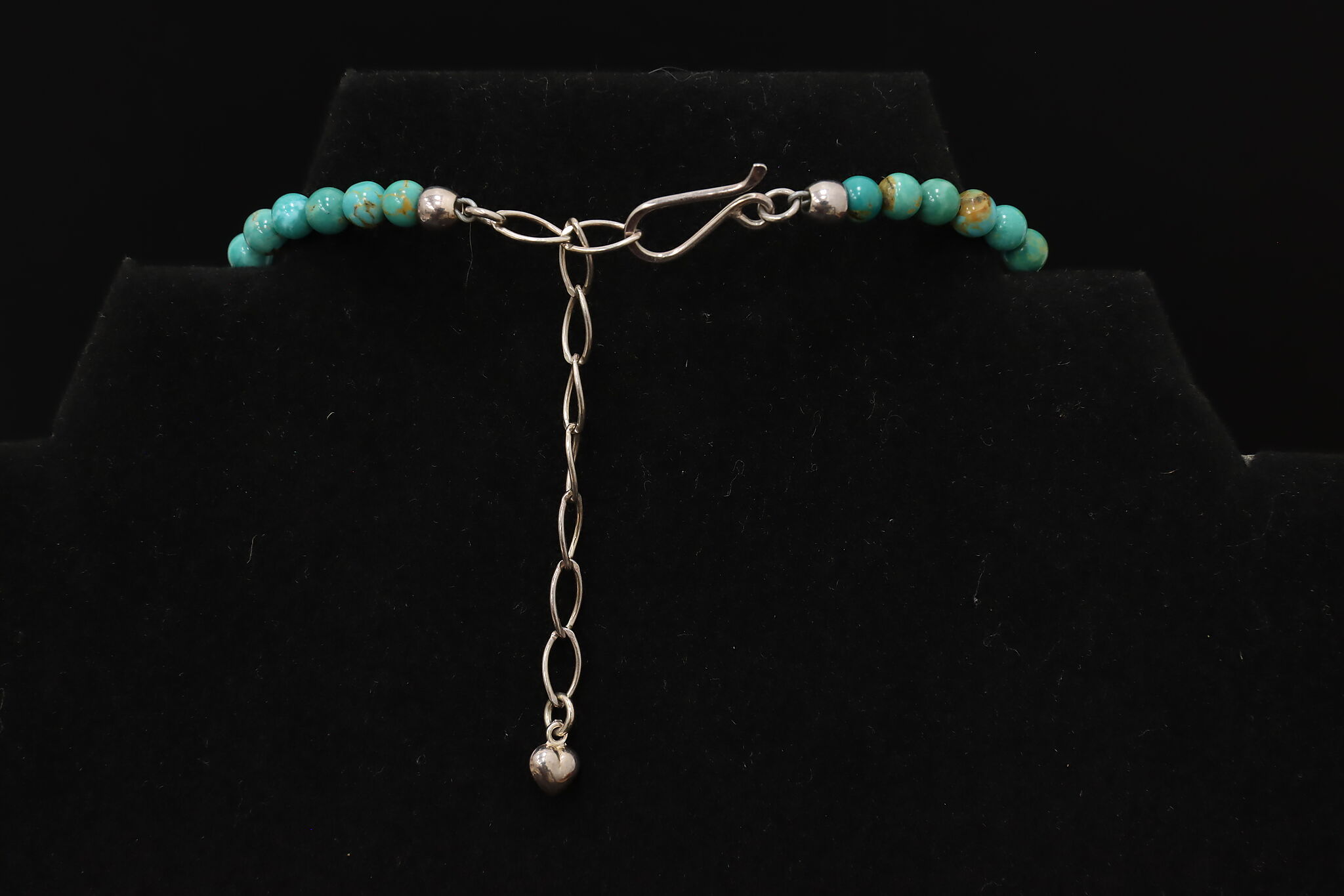 The blue and green turquoise gemstone beads on this necklace will stack beautifully with additional necklaces.