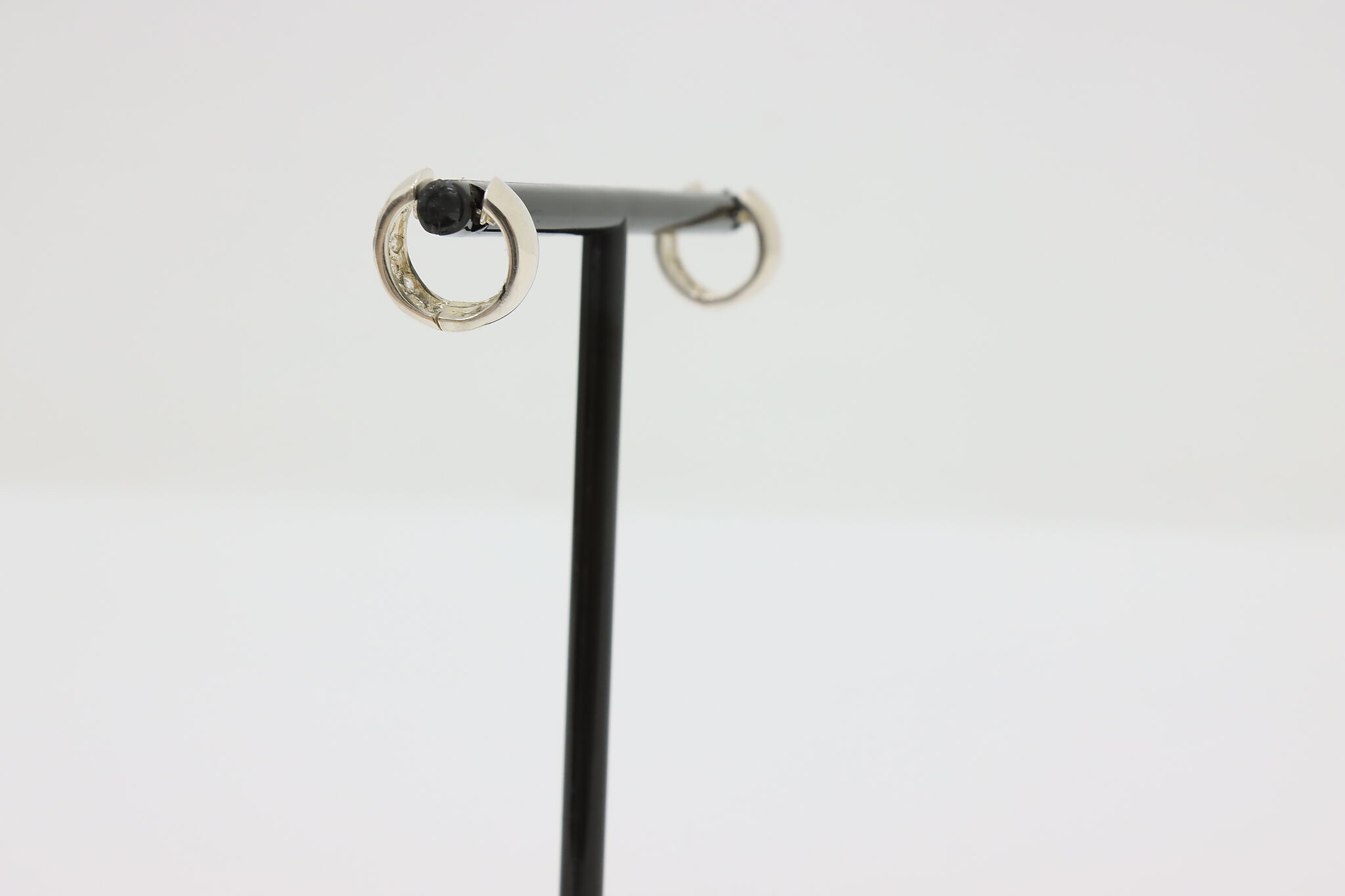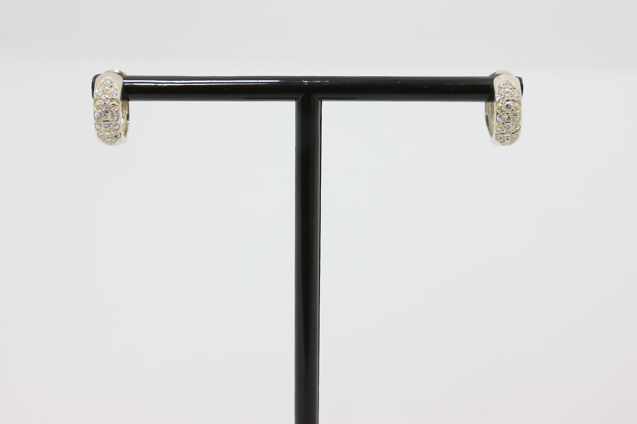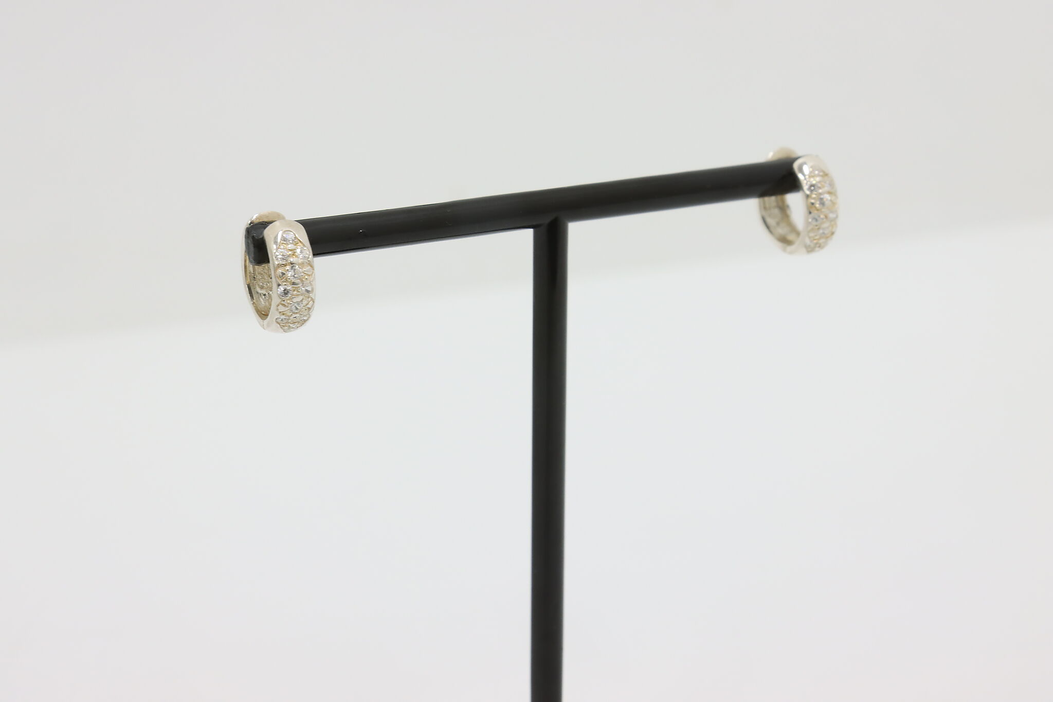 Classic sterling silver huggie hoops set with sparkling cubic zirconia stones for a bright, elegant everyday look.