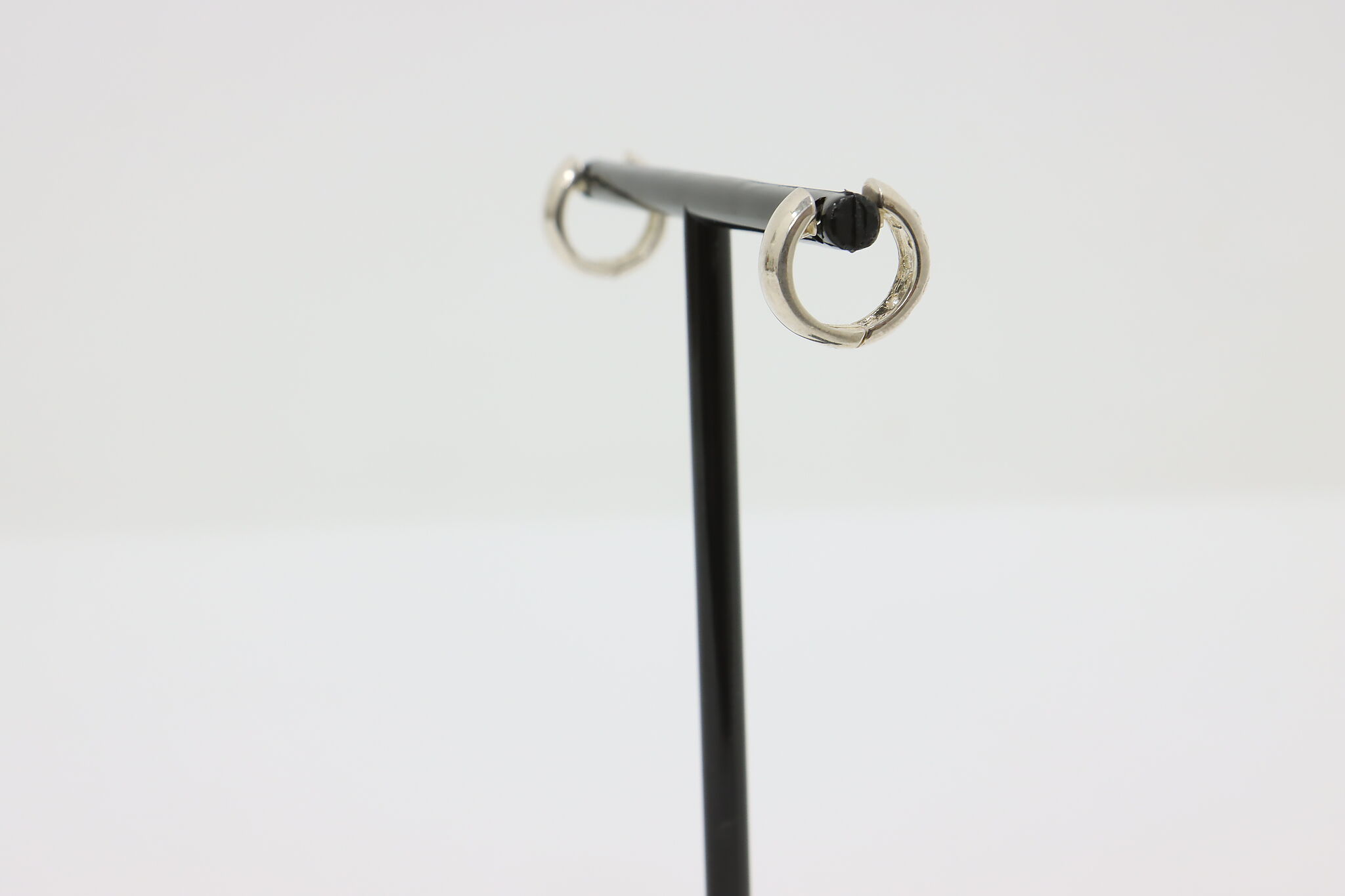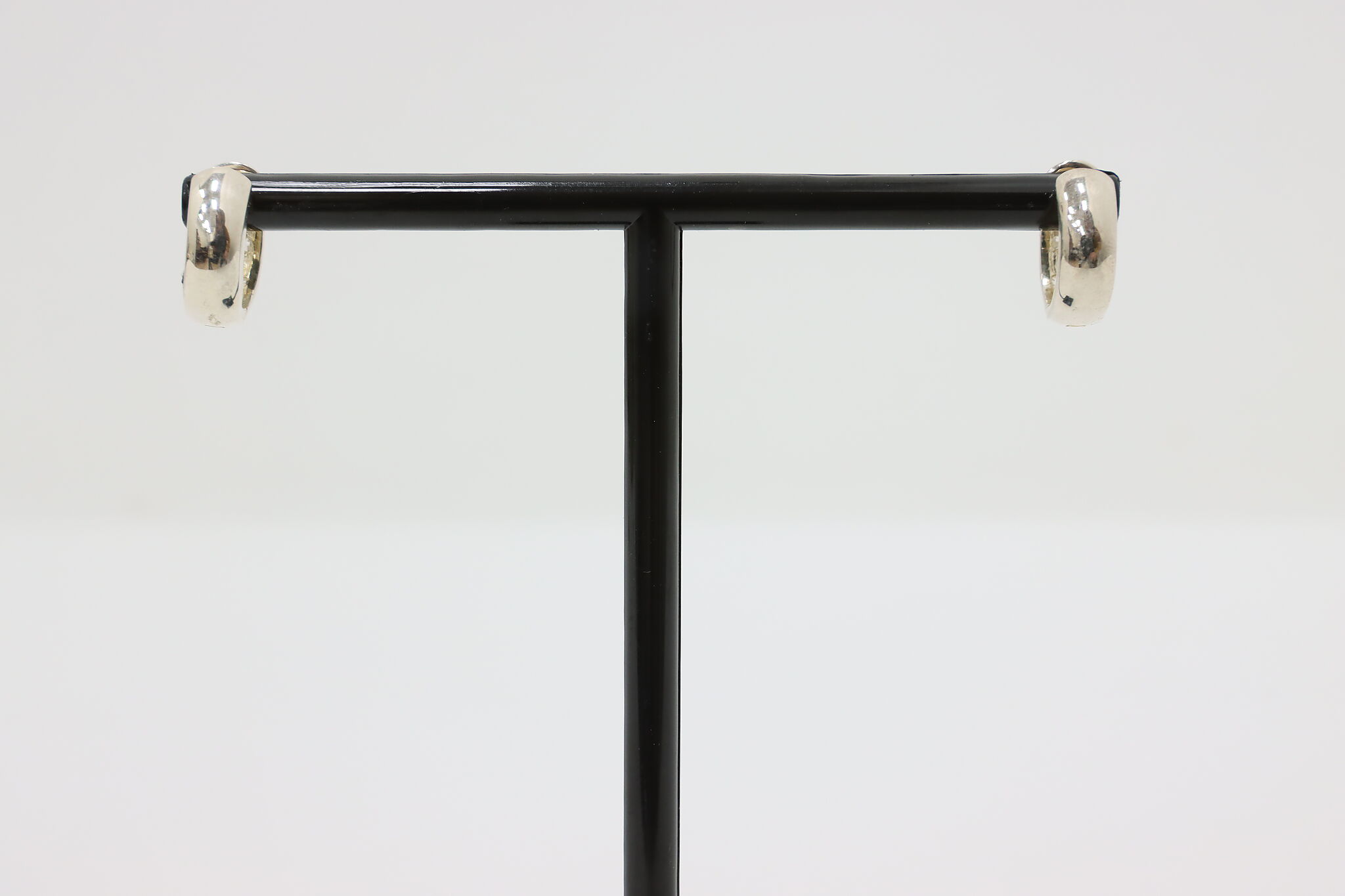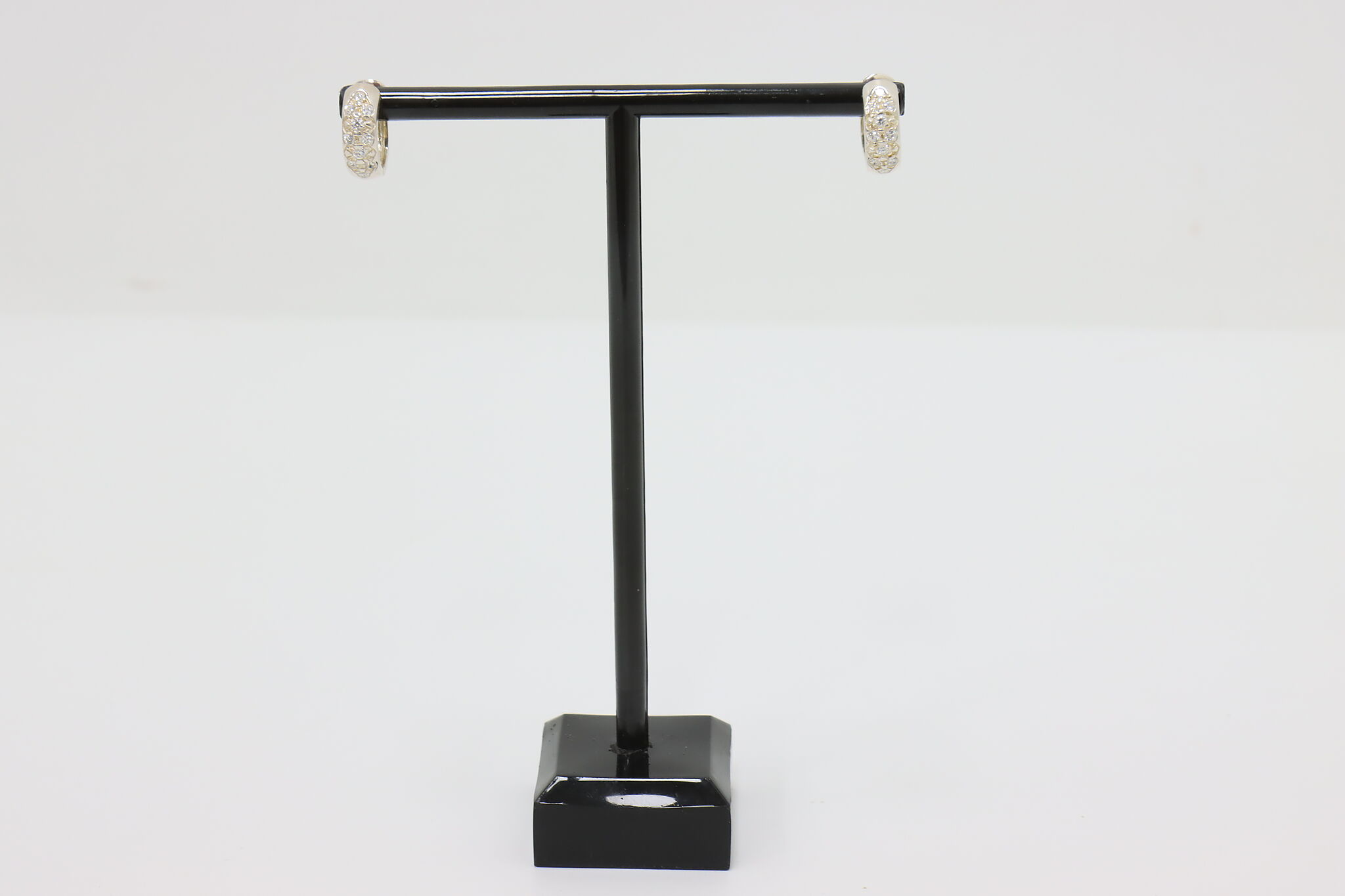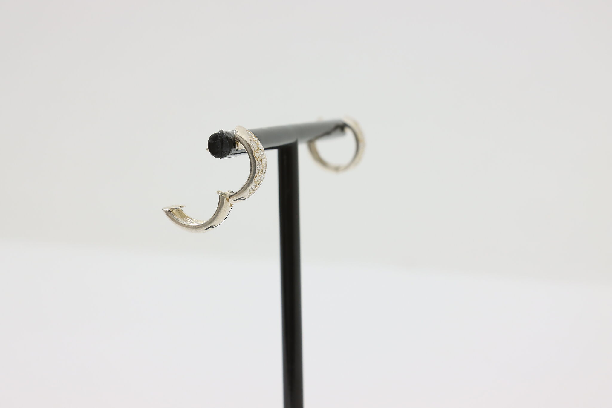 Classic sterling silver huggie hoops set with sparkling cubic zirconia stones for a bright, elegant everyday look.