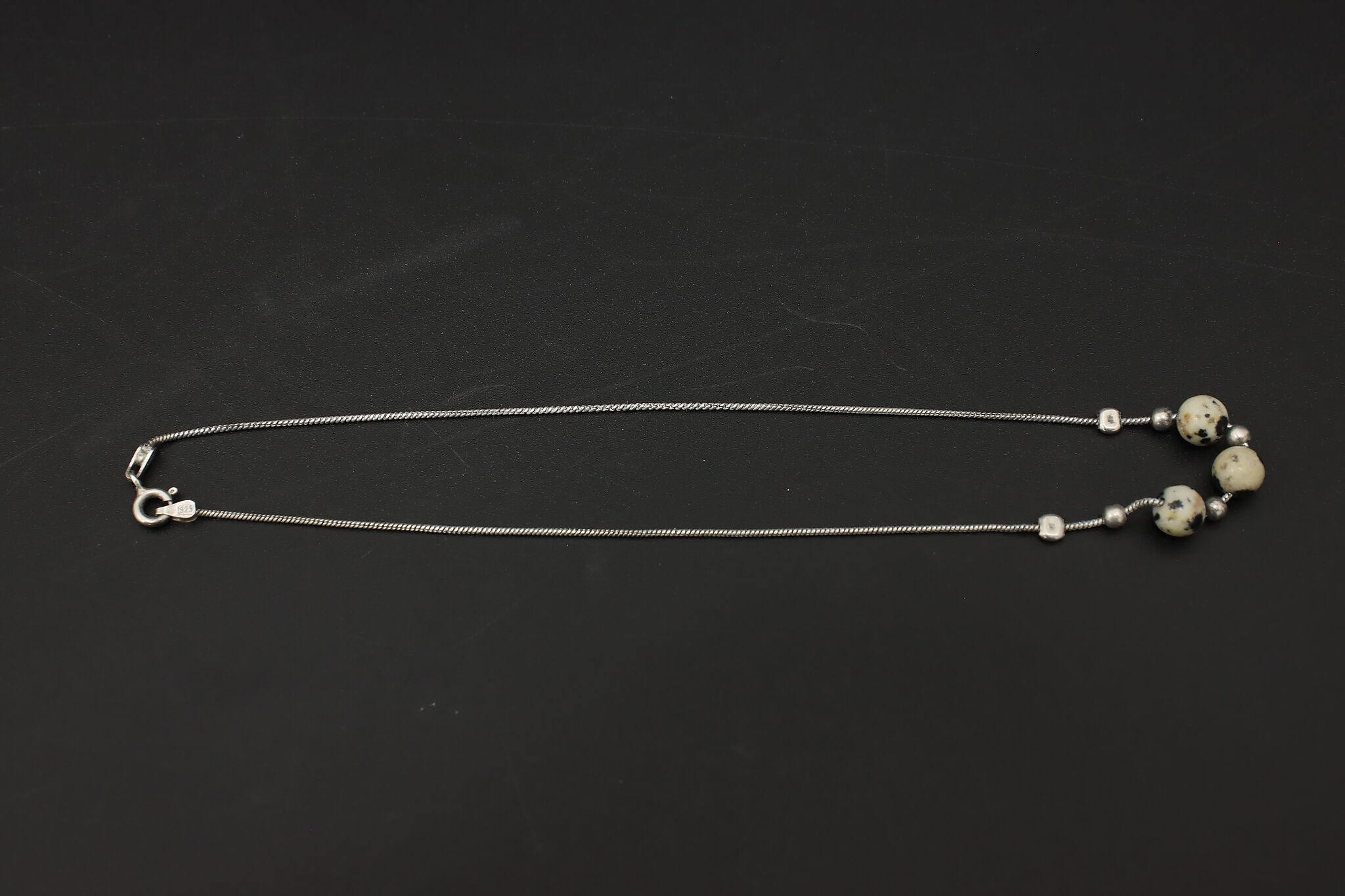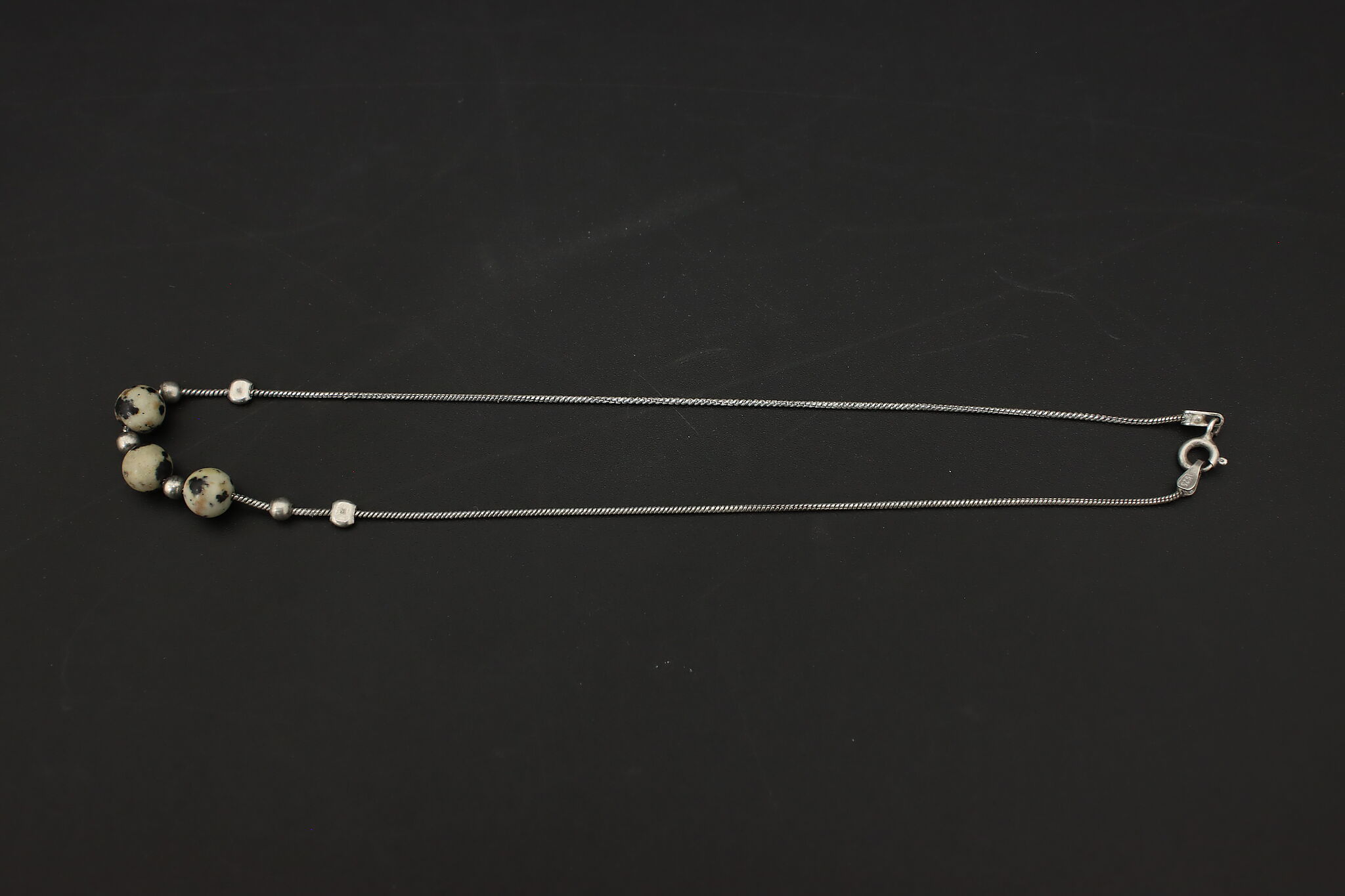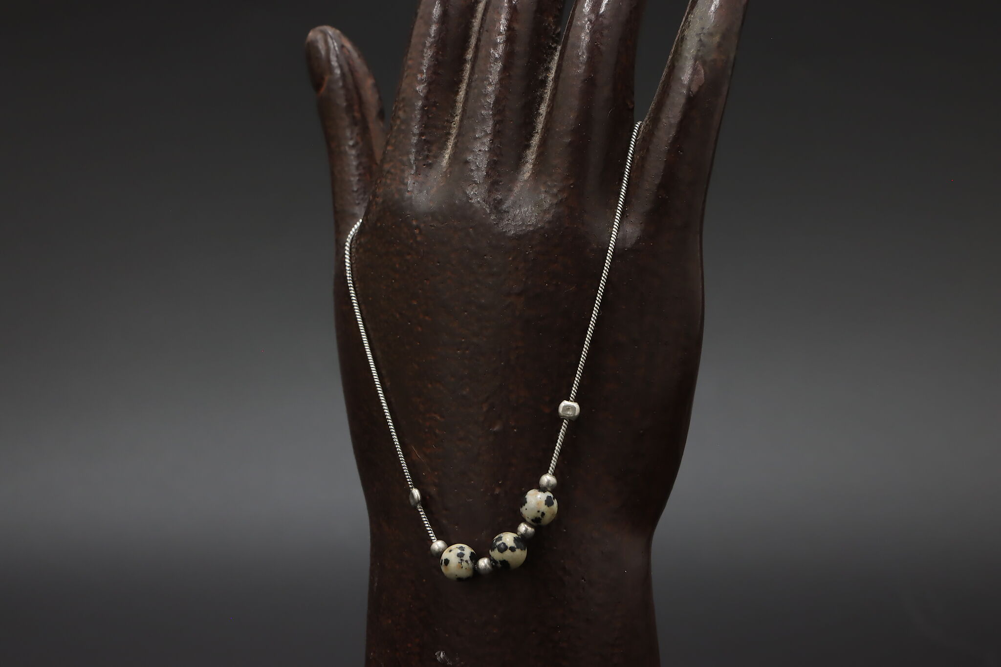 This 11" girl size necklace has three marbleized stones for a sweet look.