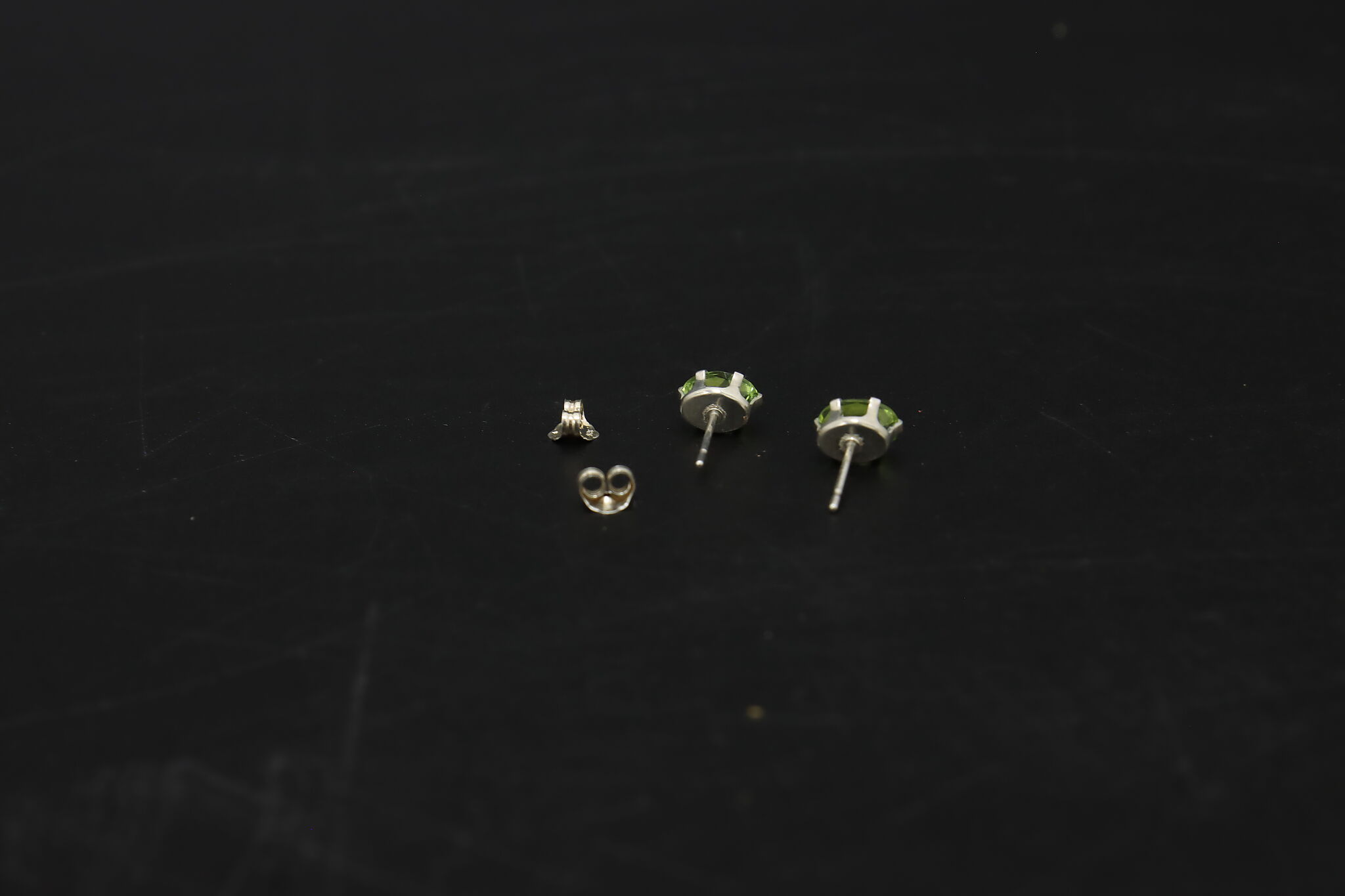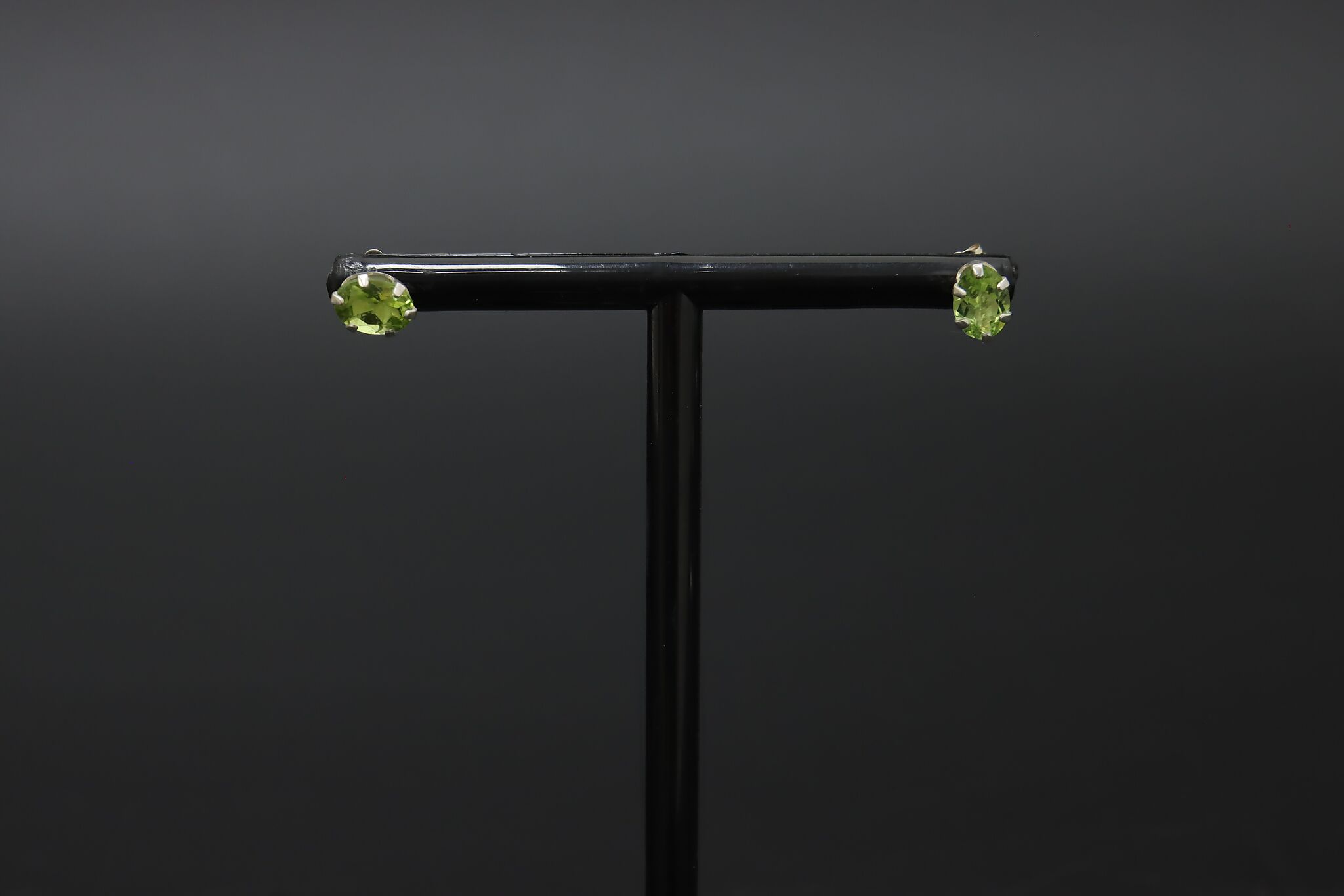 Classic sterling silver stud earrings set with vibrant oval-cut green gemstones, offering a fresh pop of color in a simple, elegant design.