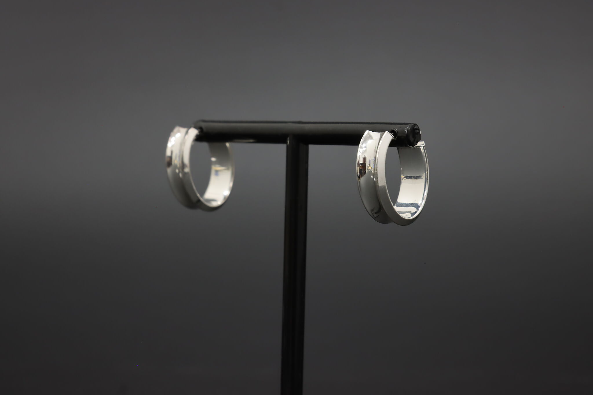 Classic sterling silver hoop earrings with a smooth, high-polish finish for a clean, timeless look that pairs effortlessly with any style.