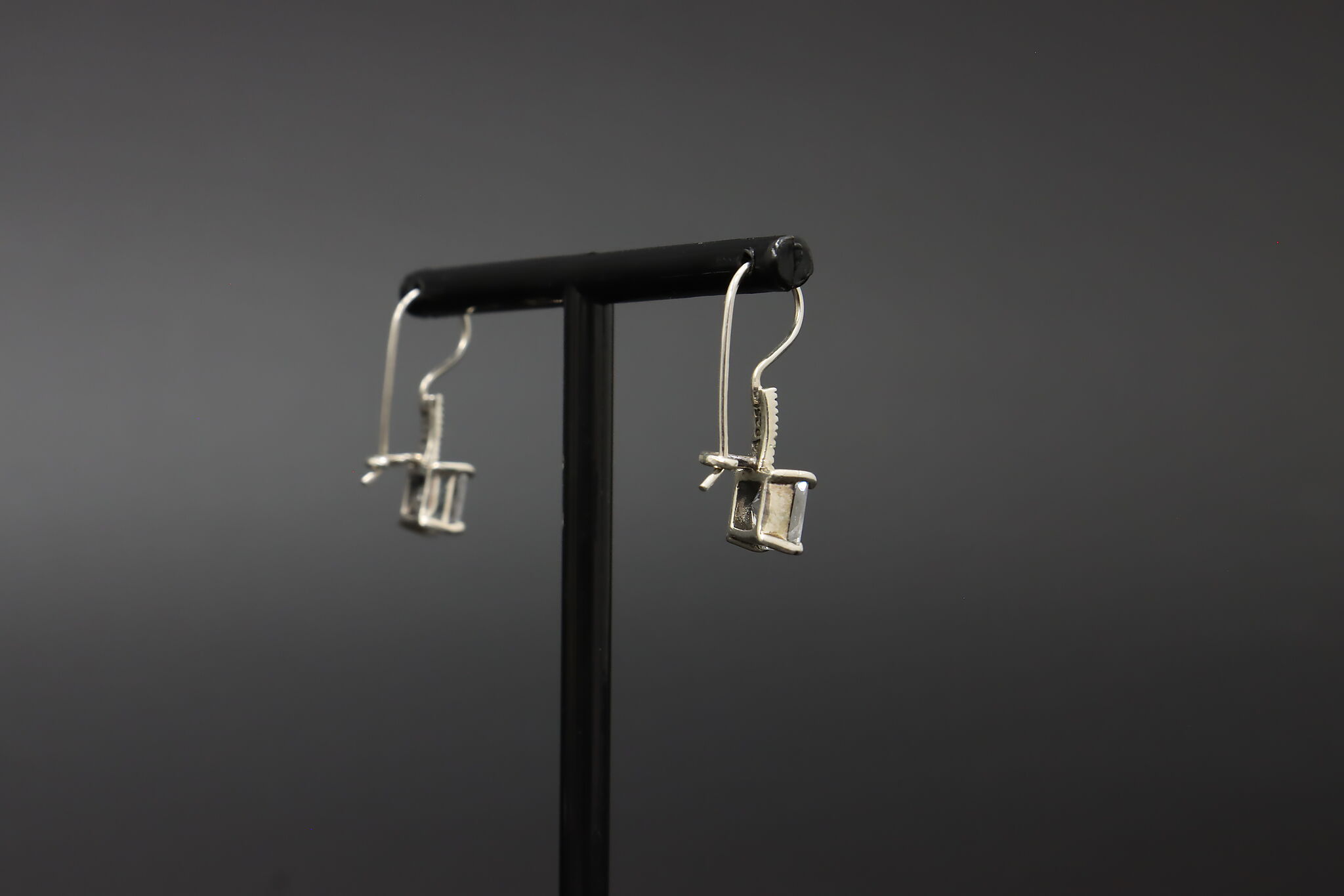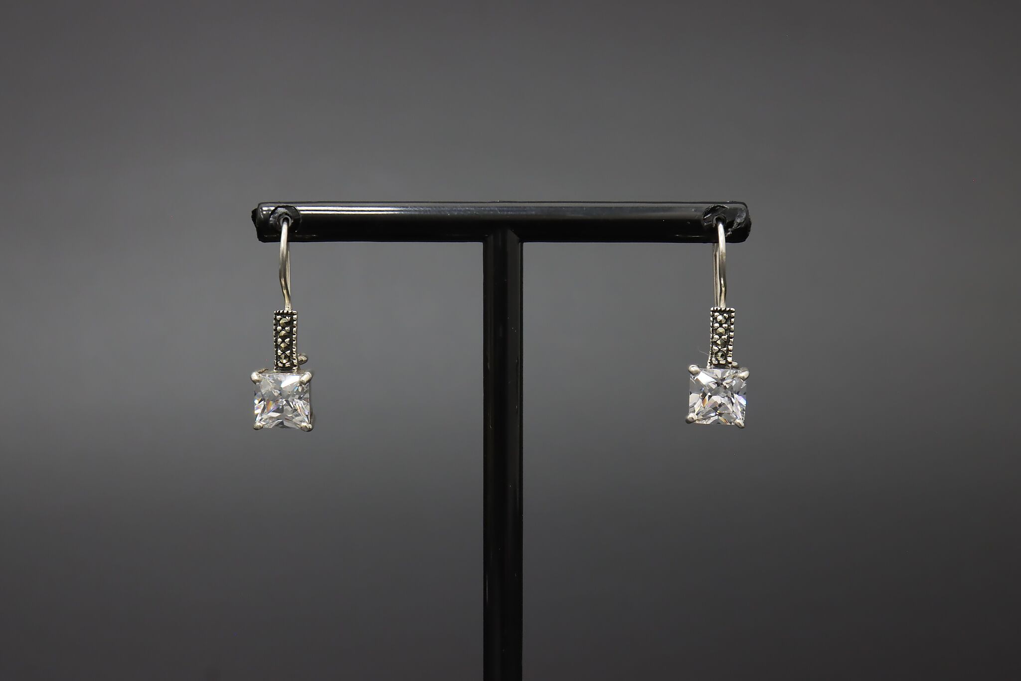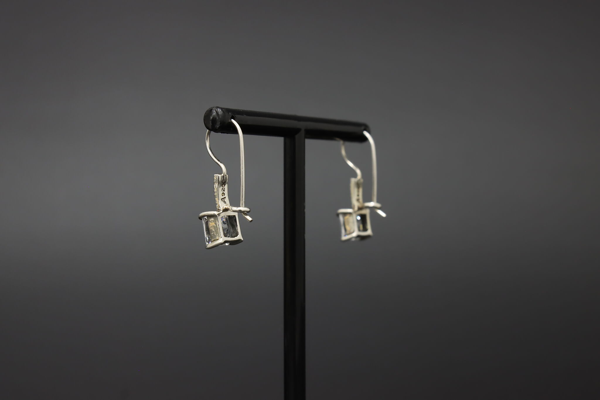 Classic sterling silver leverback drop earrings featuring sparkling princess-cut cubic zirconia dangles for a clean, elegant look with subtle movement.