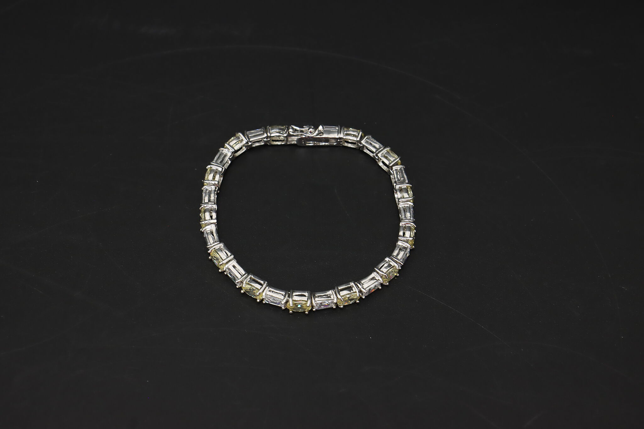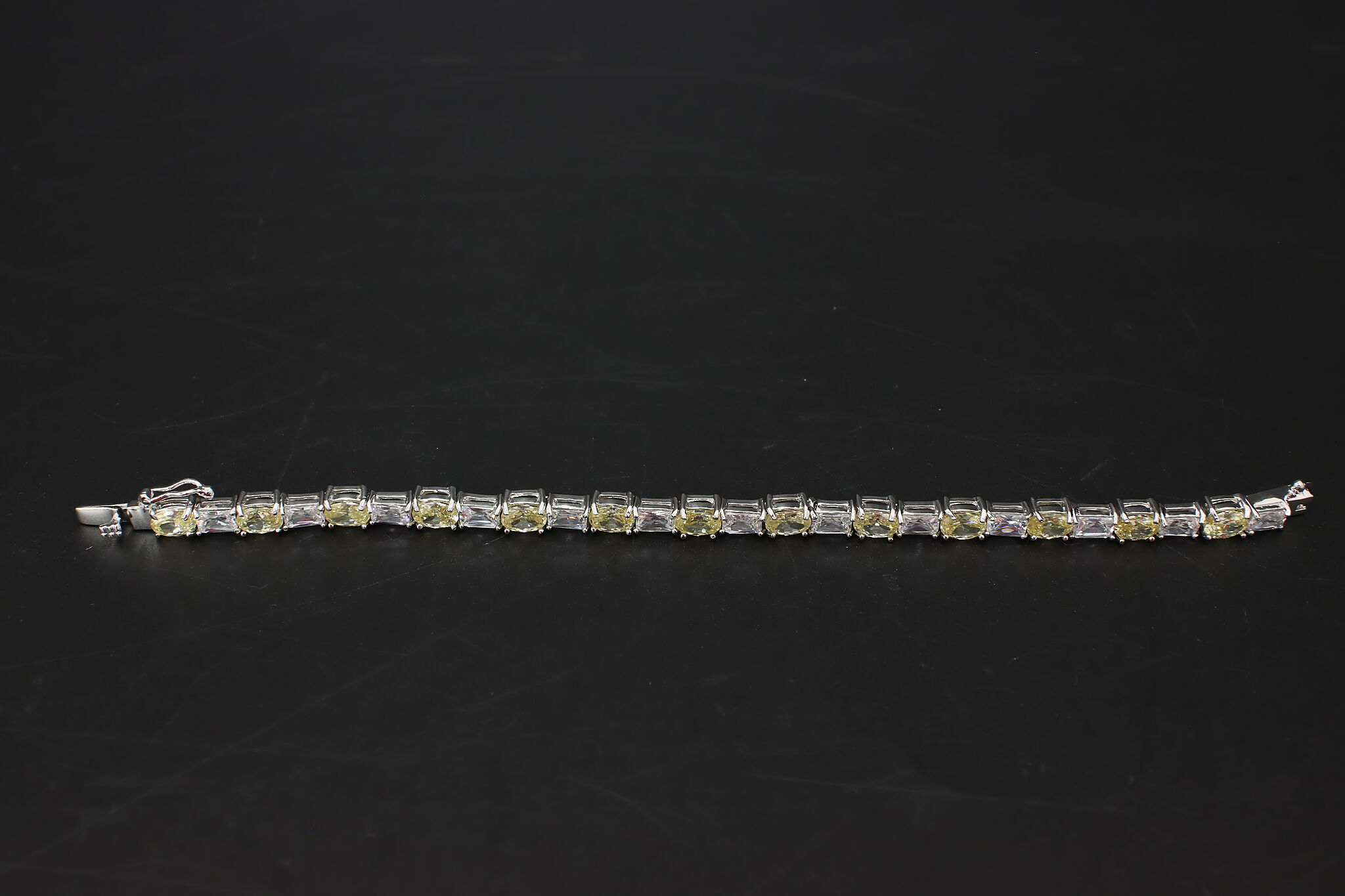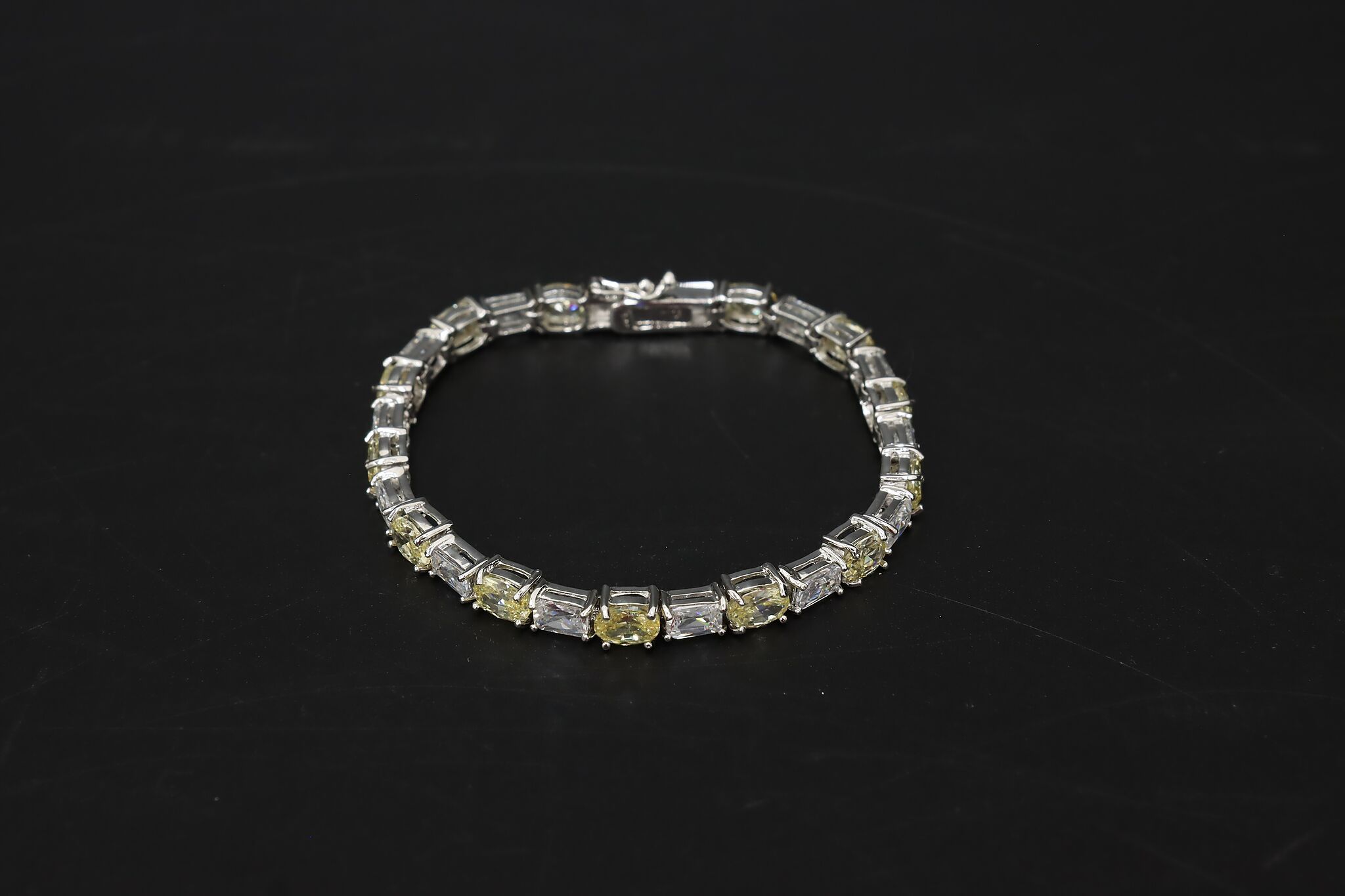 Classic sterling silver tennis bracelet featuring alternating yellow and clear cubic zirconia stones set in a bright silver mounting. The soft yellow CZ stones add a warm, diamond-inspired glow while keeping the look elegant and wearable for everyday or dress occasions.
