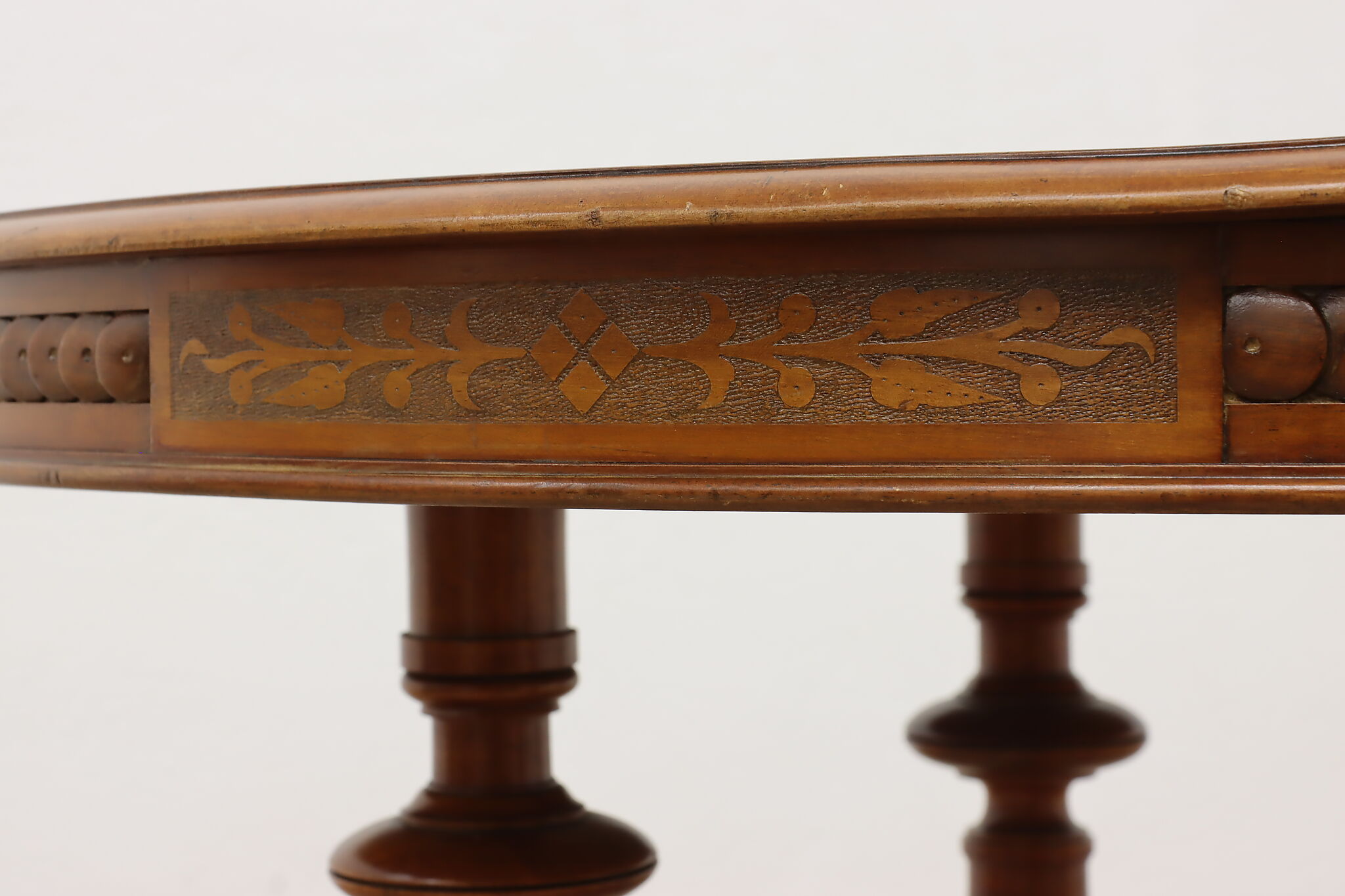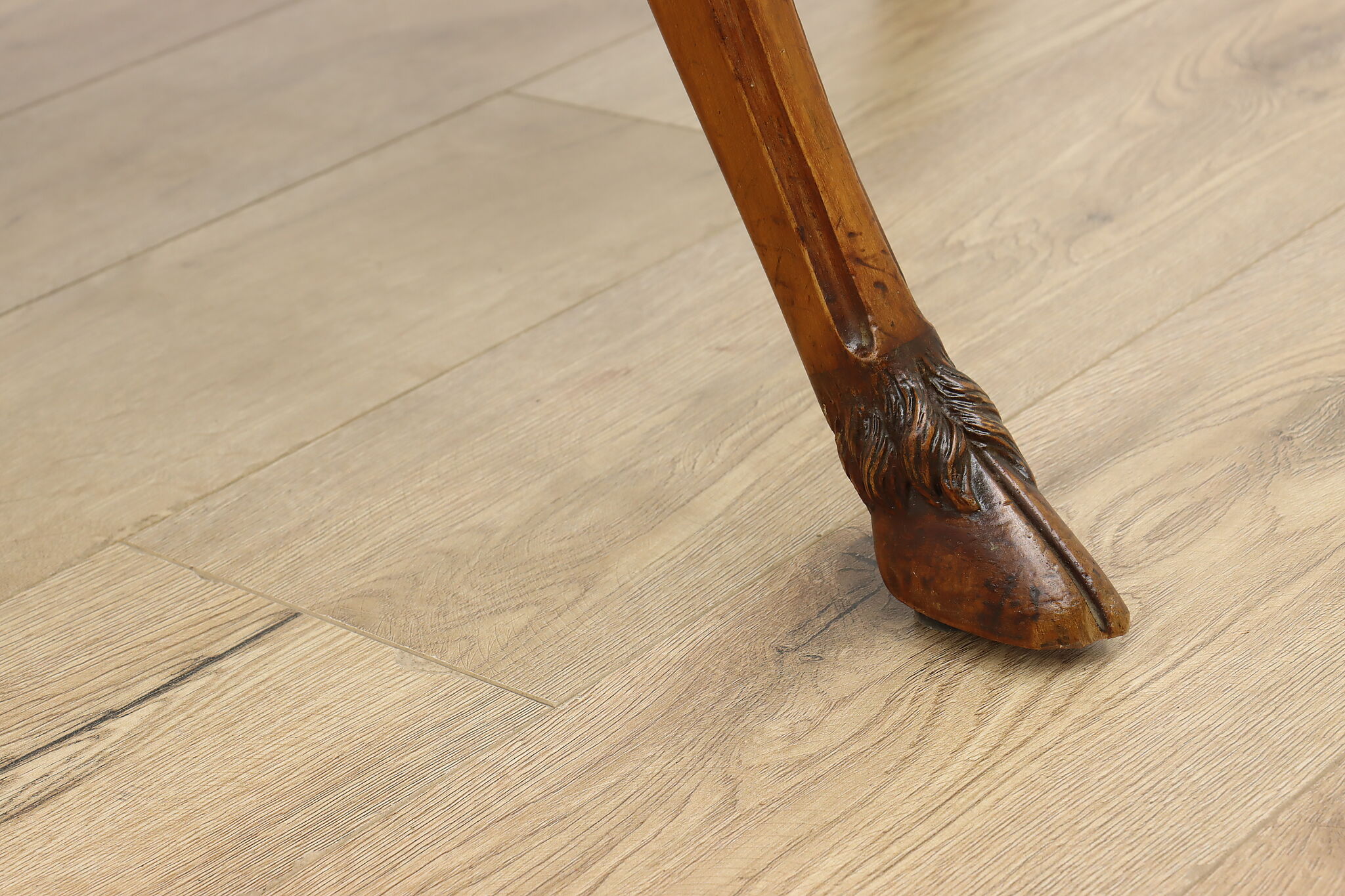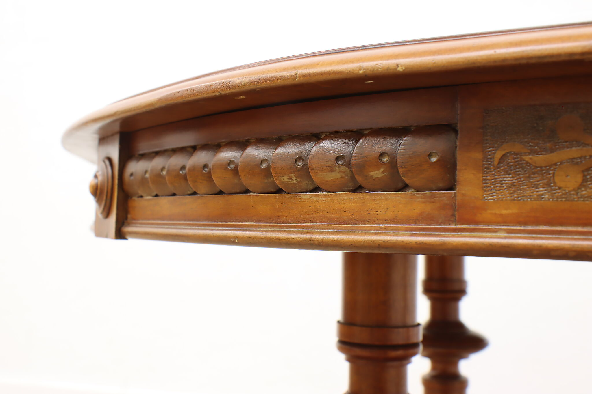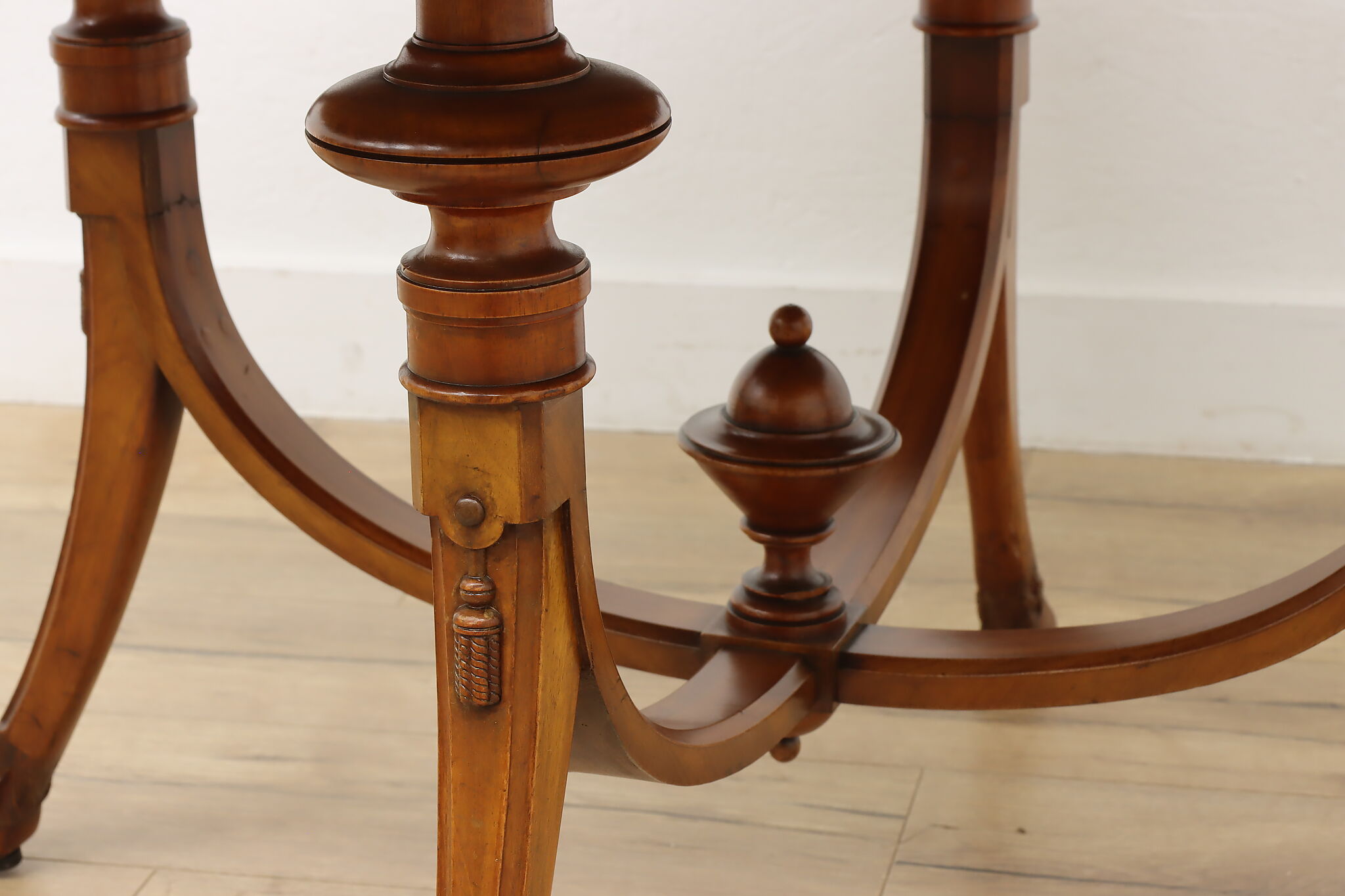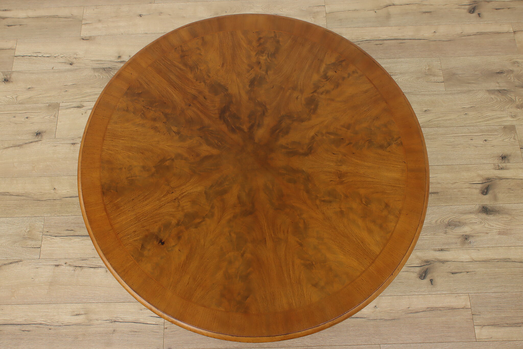 Looking for a unique table to add to your entryway or breakfast nook? This classical design round table may be just the piece with its horse hoof feet and "sunburst" top!