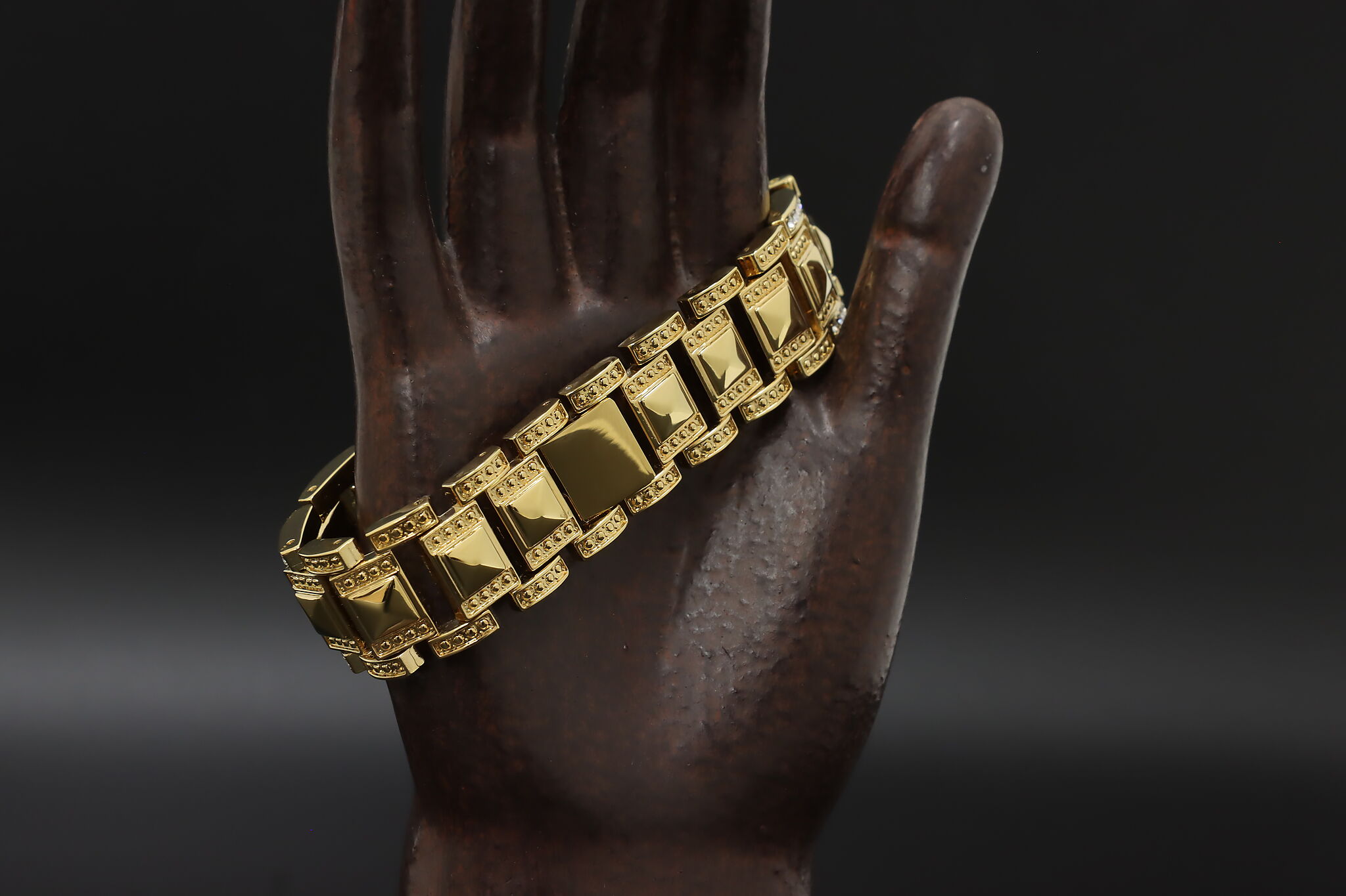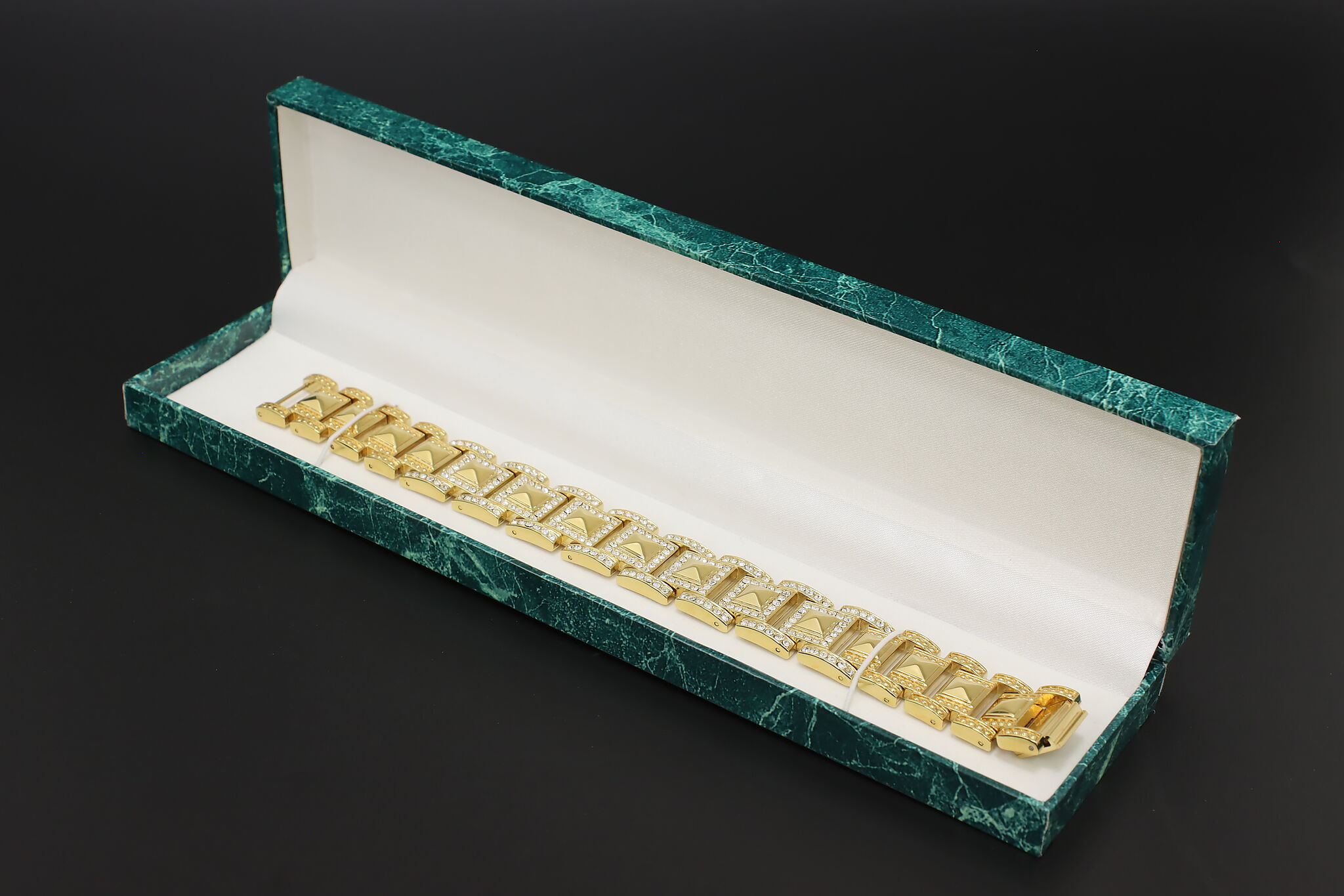 Make a bold statement by adding this bracelet with its sparkly cubic zirconia gemstones to your wardrobe.