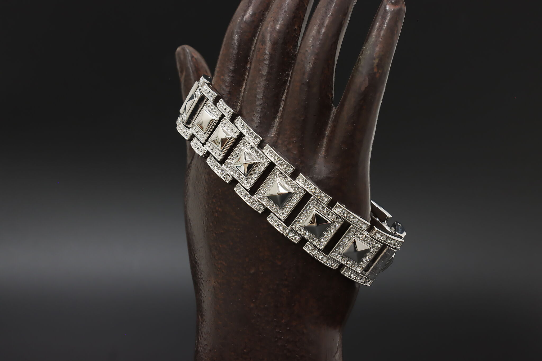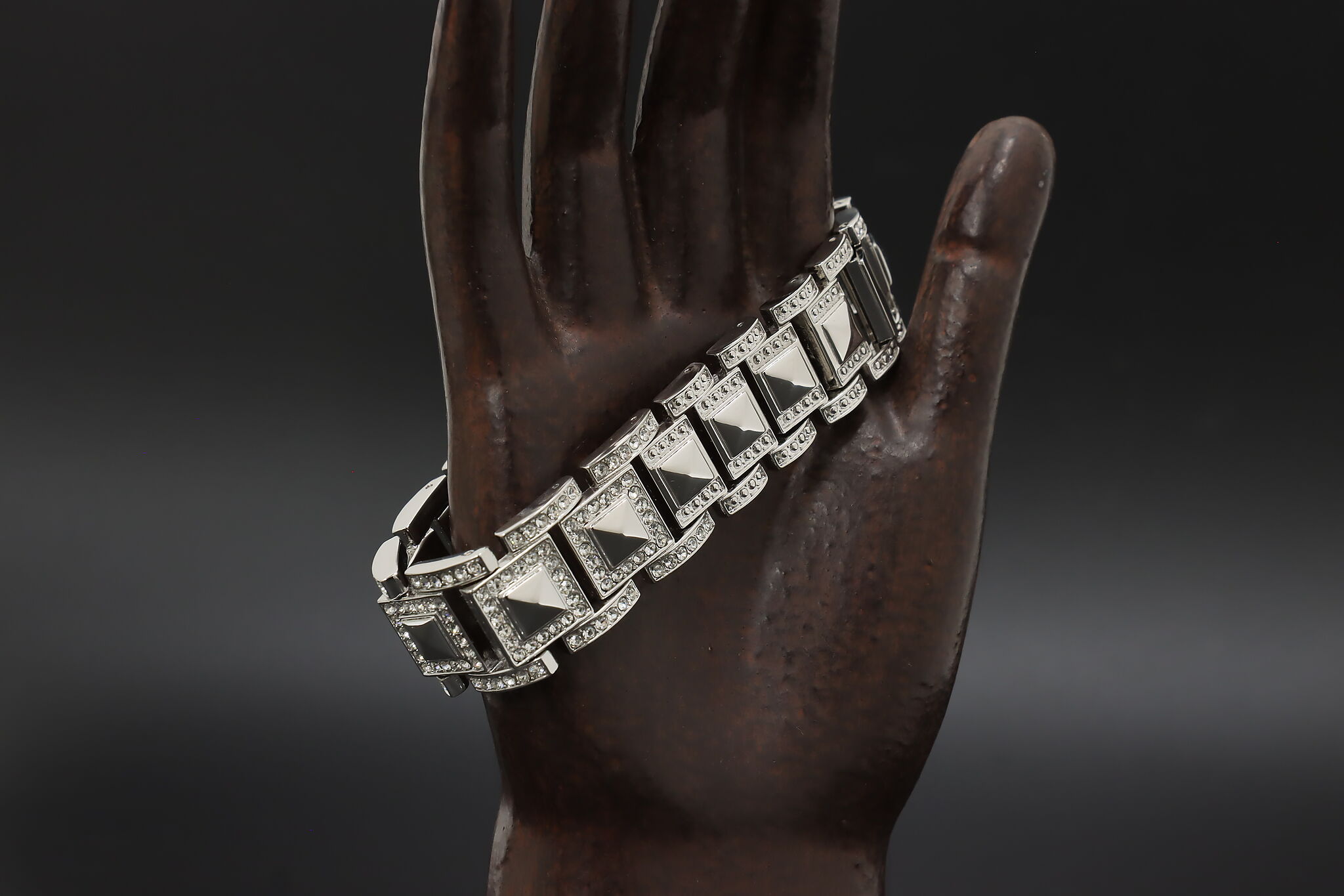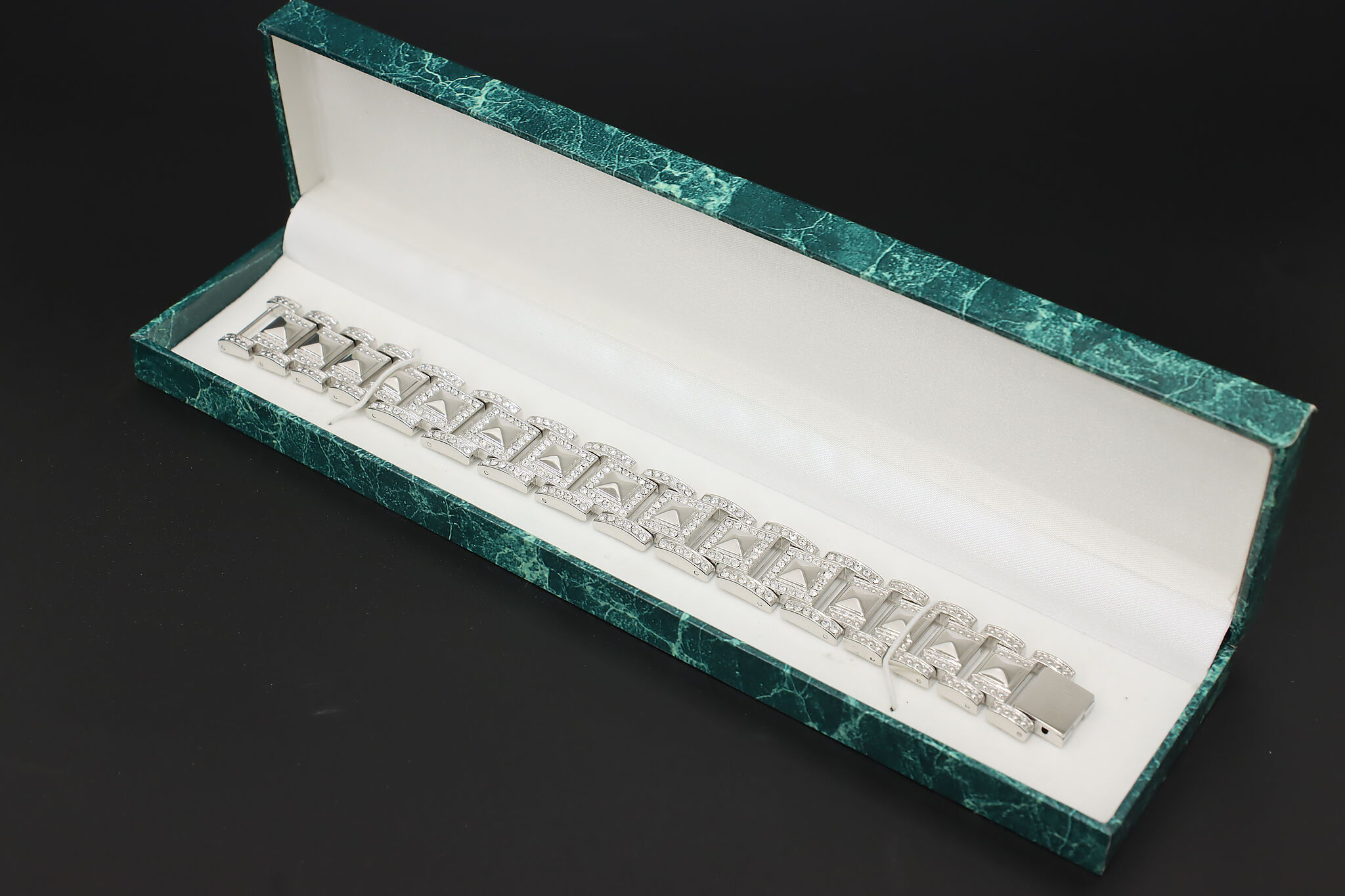 Make a bold statement by adding this bracelet with its sparkly cubic zirconia gemstones to your wardrobe.