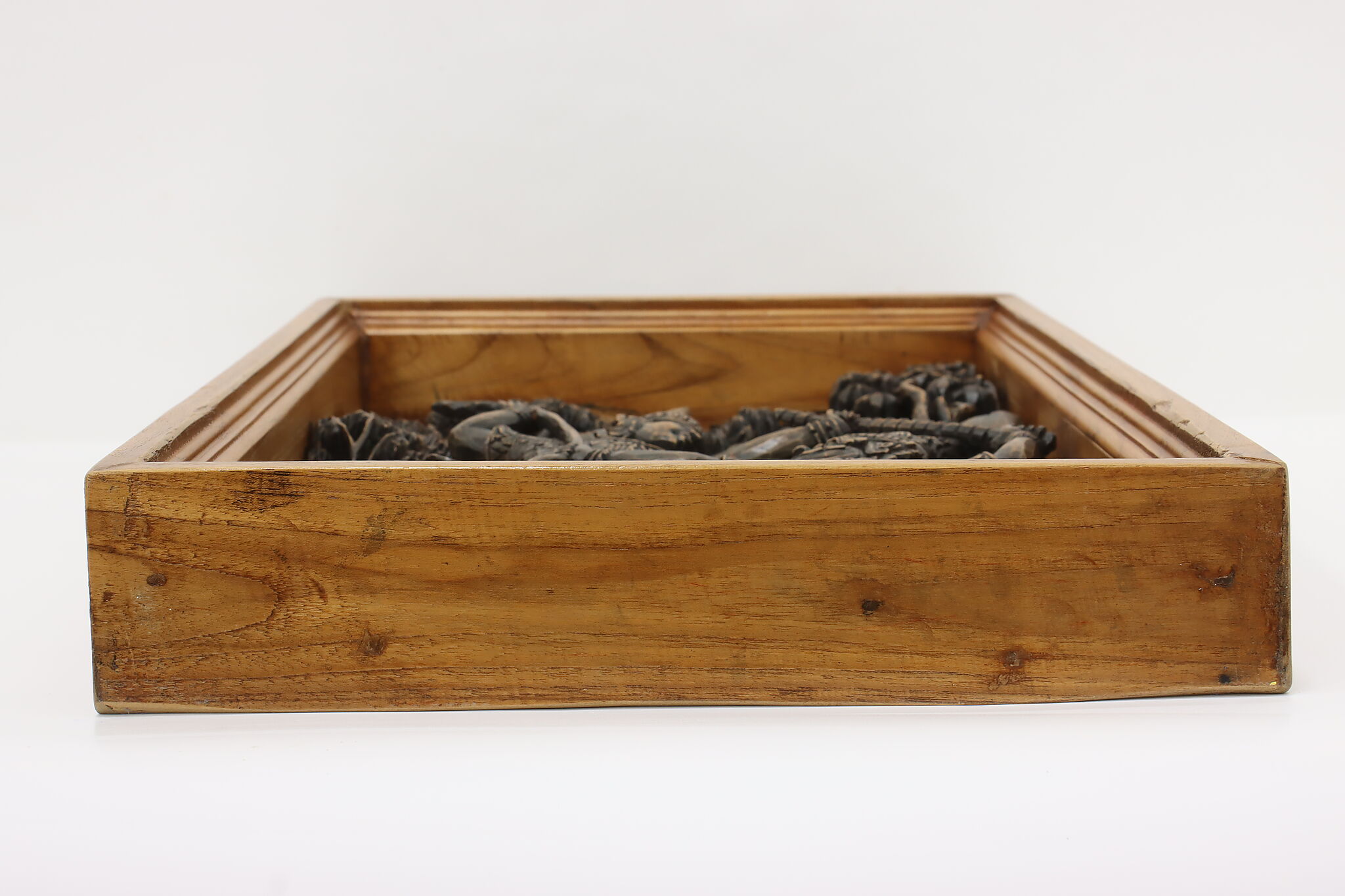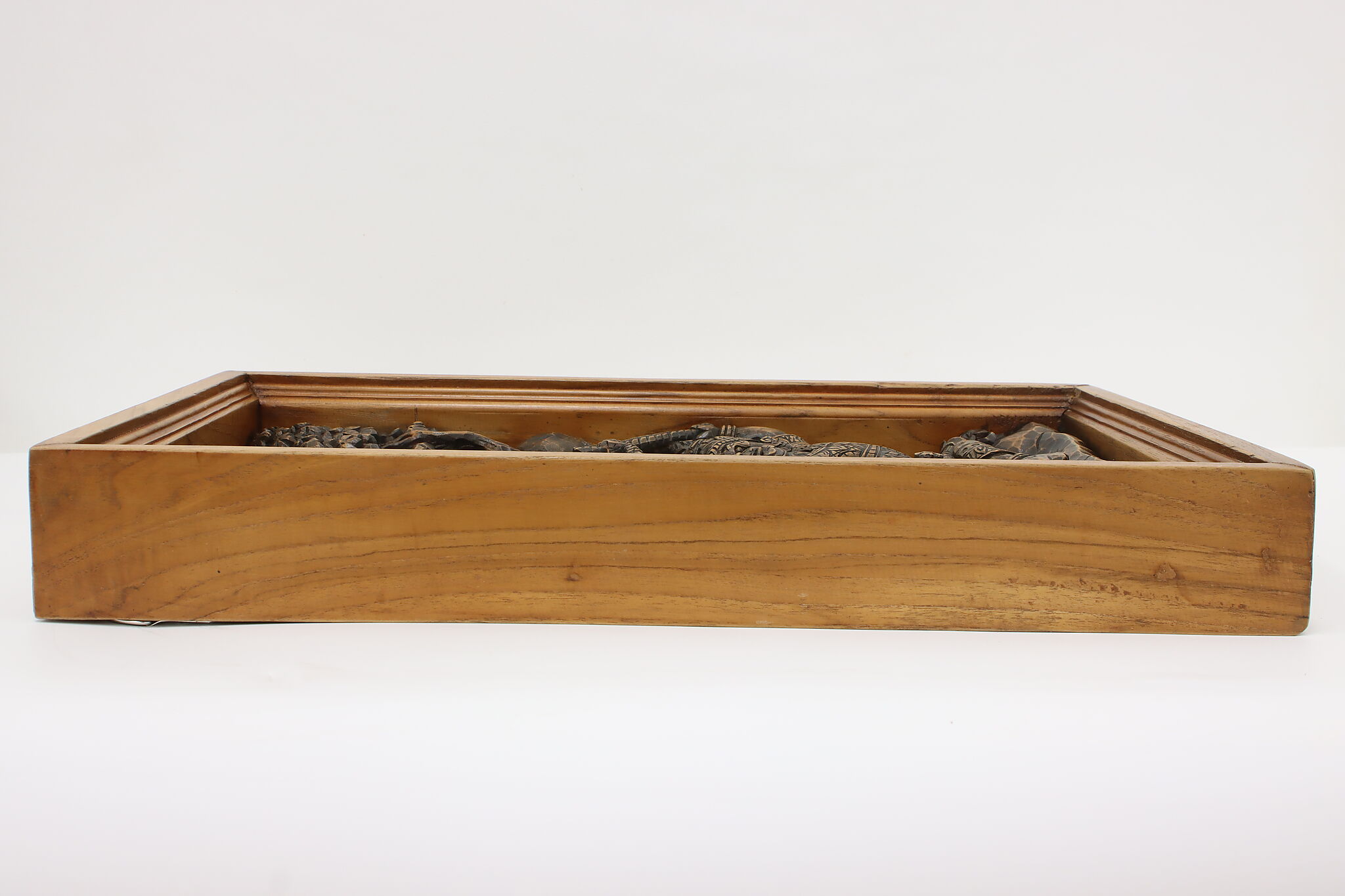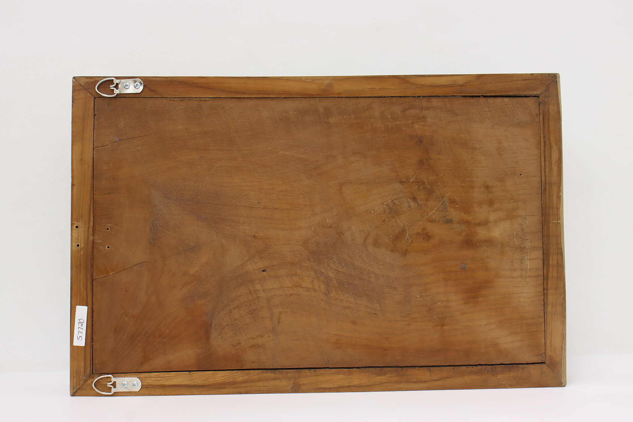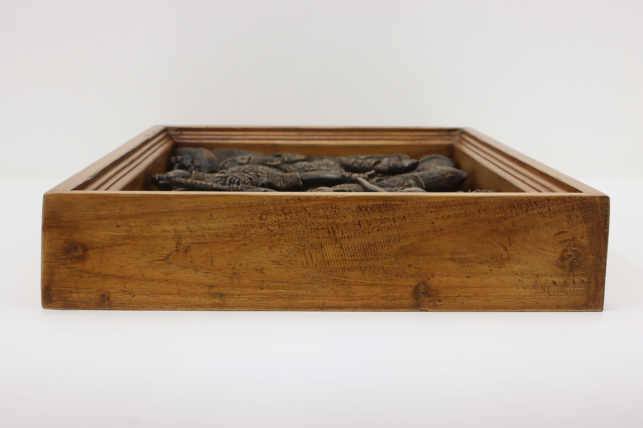 This wall hanging plaque depicts a fantastically detailed battle between a god and demon.