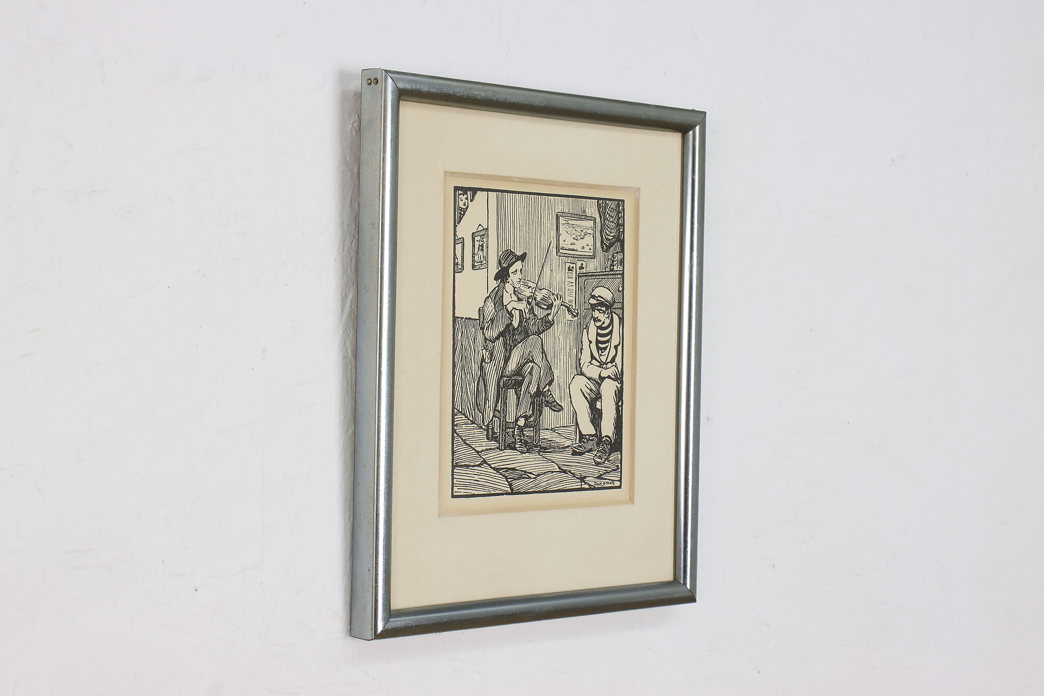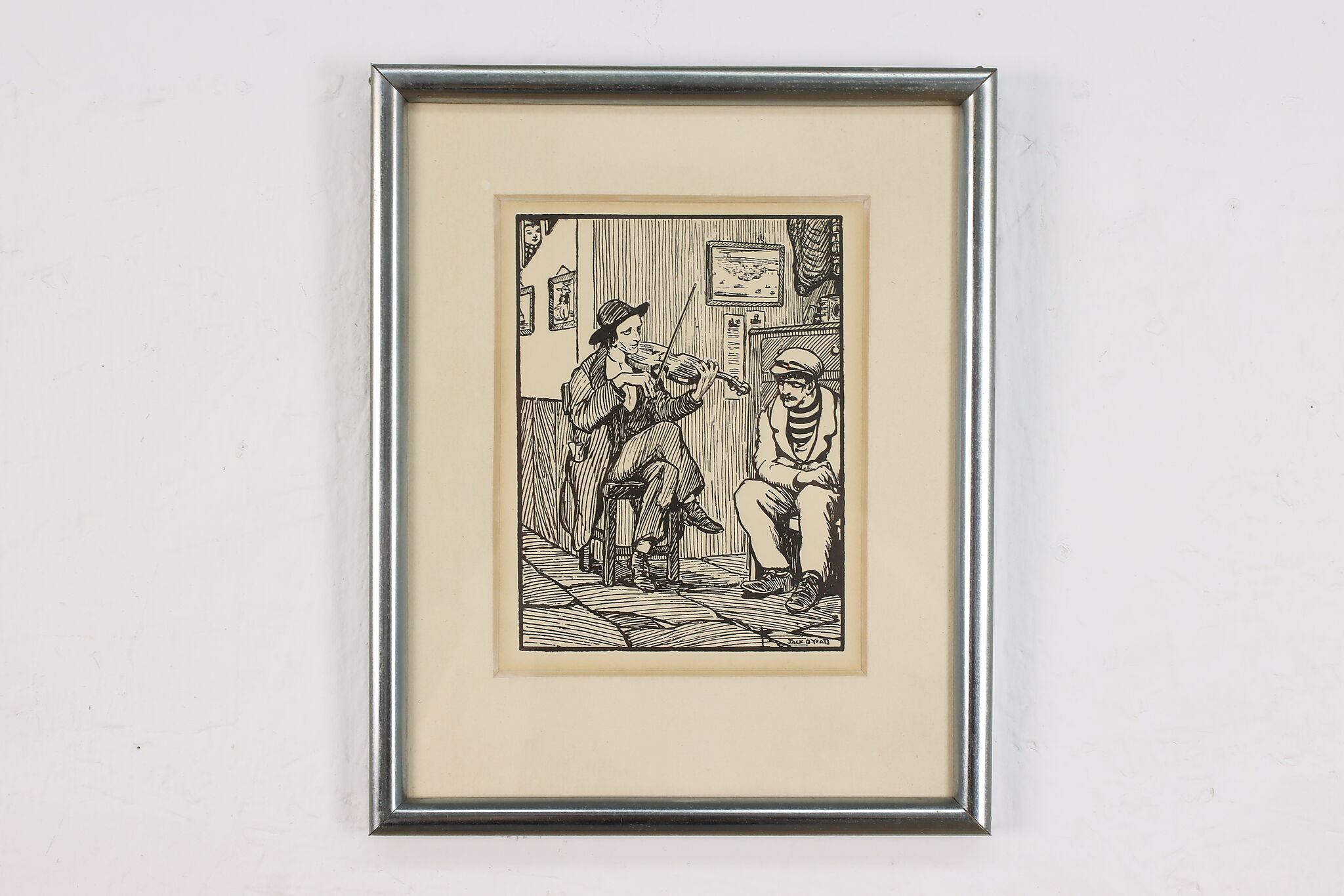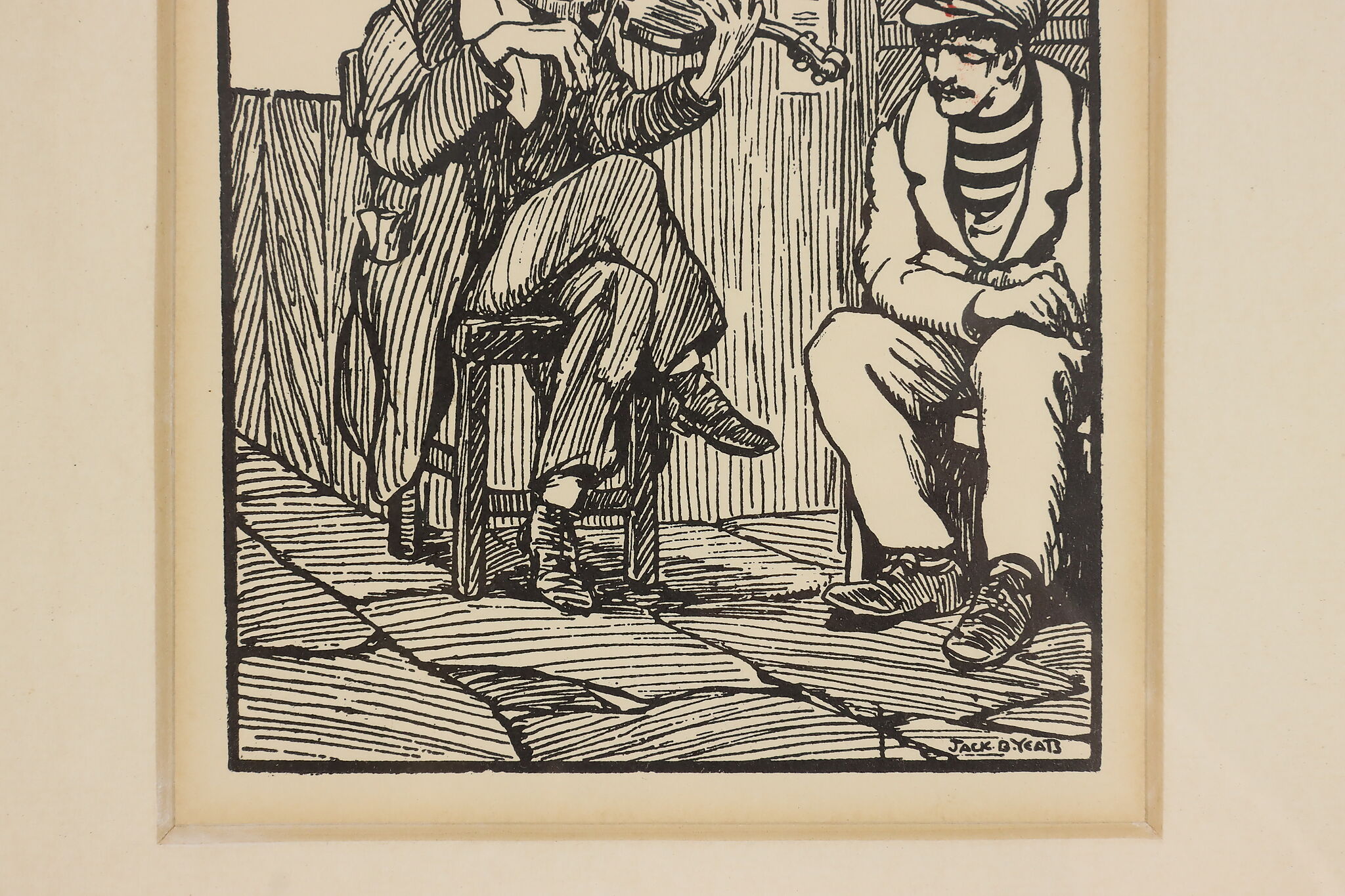 This art print depicts a fiddler playing for a sailor and is by Jack B. Yeats, a famous Irish painter who beautifully captured the lives of the Irish.
