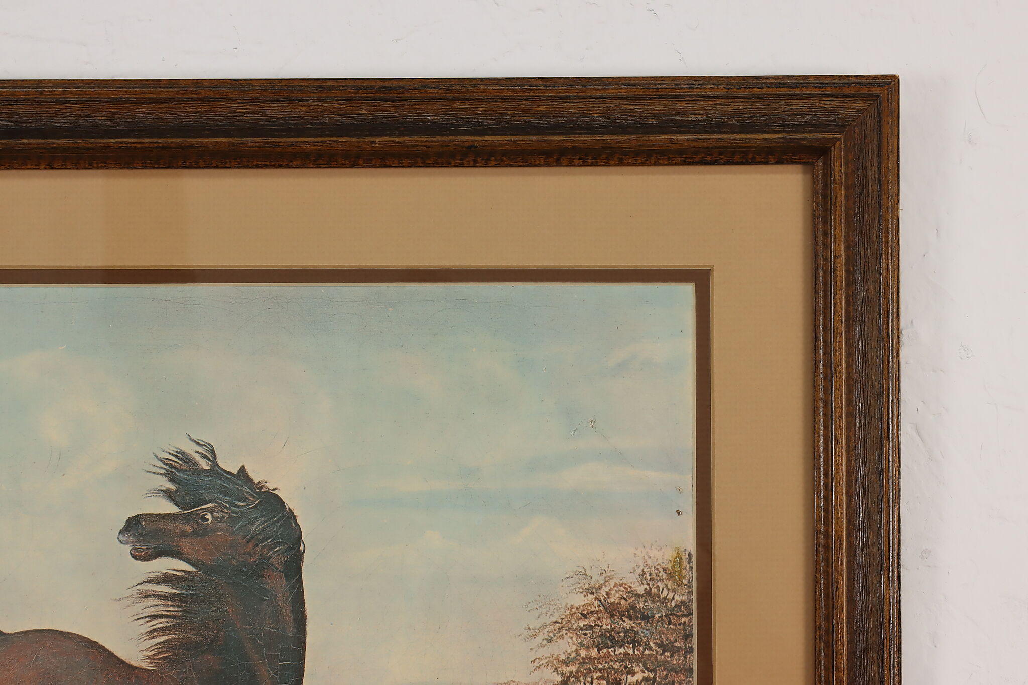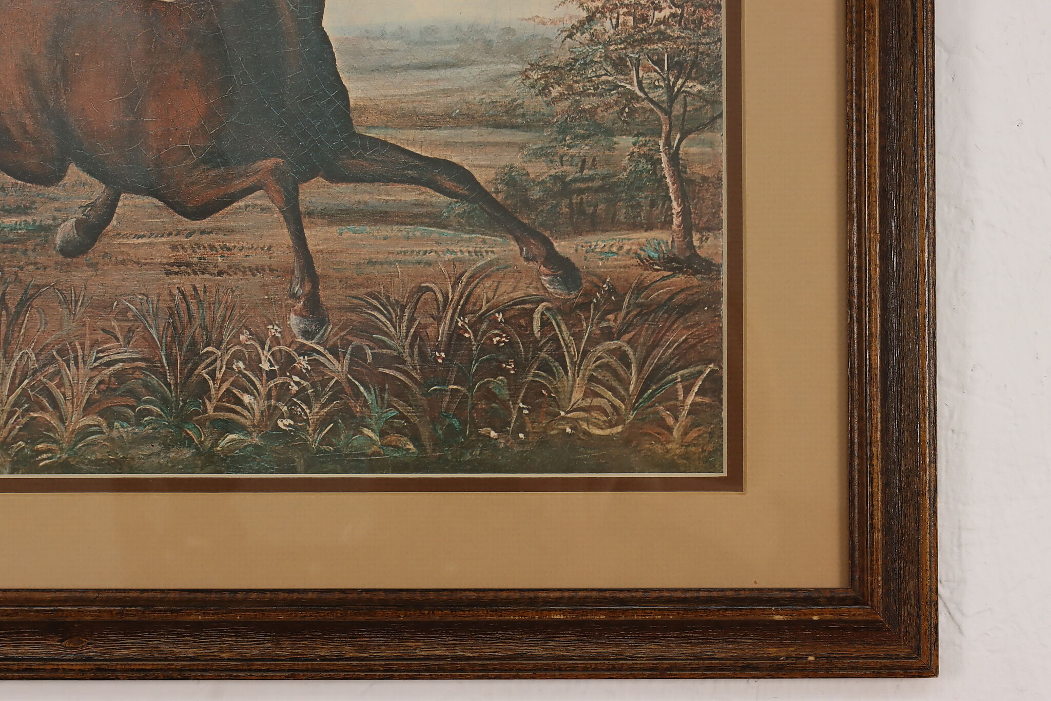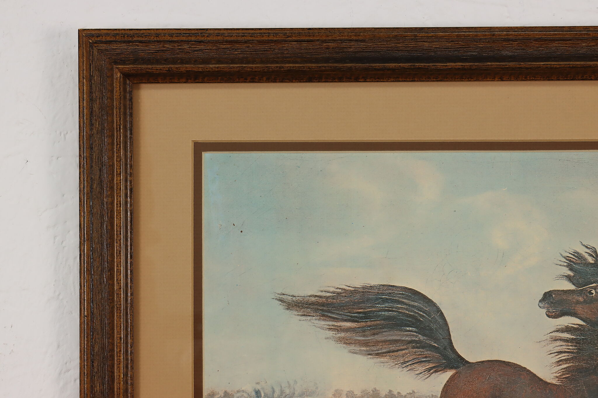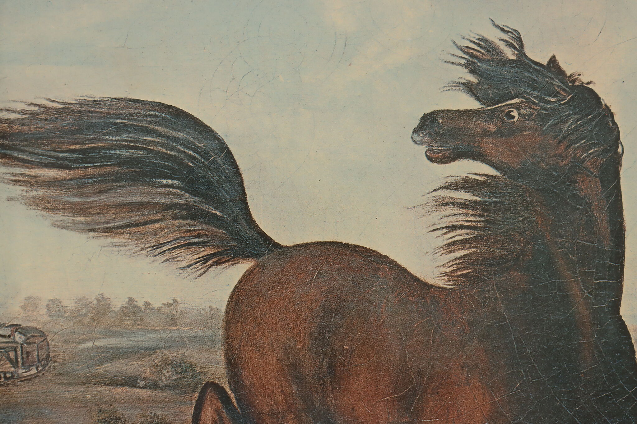 This charming print is after Joseph Anderson Faris's original 1860s painting titled "The Neigh of an Iron Horse", where a wild mustang is spooked by a train.
