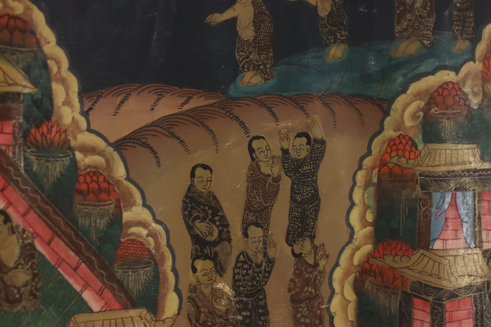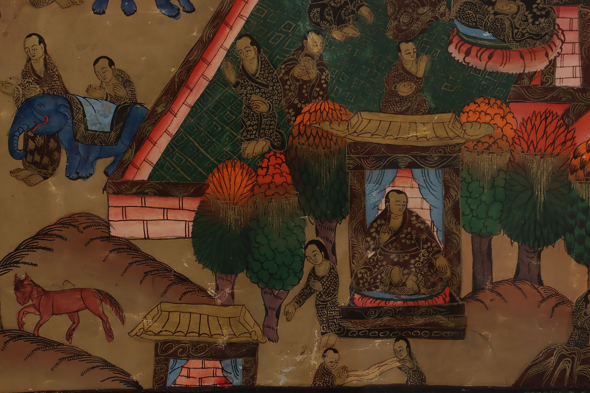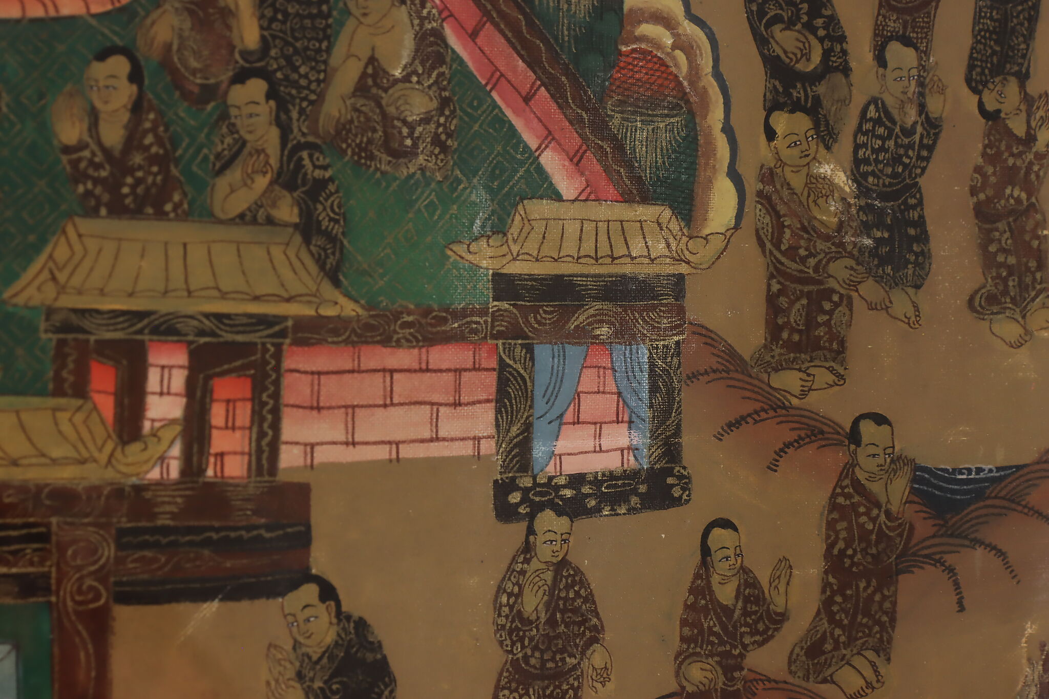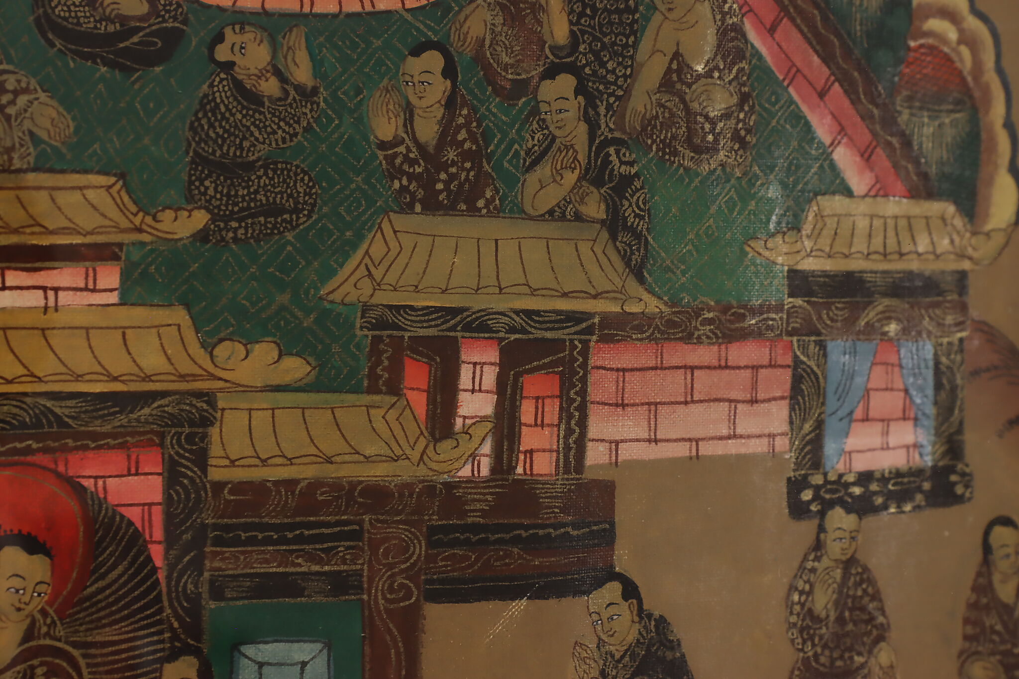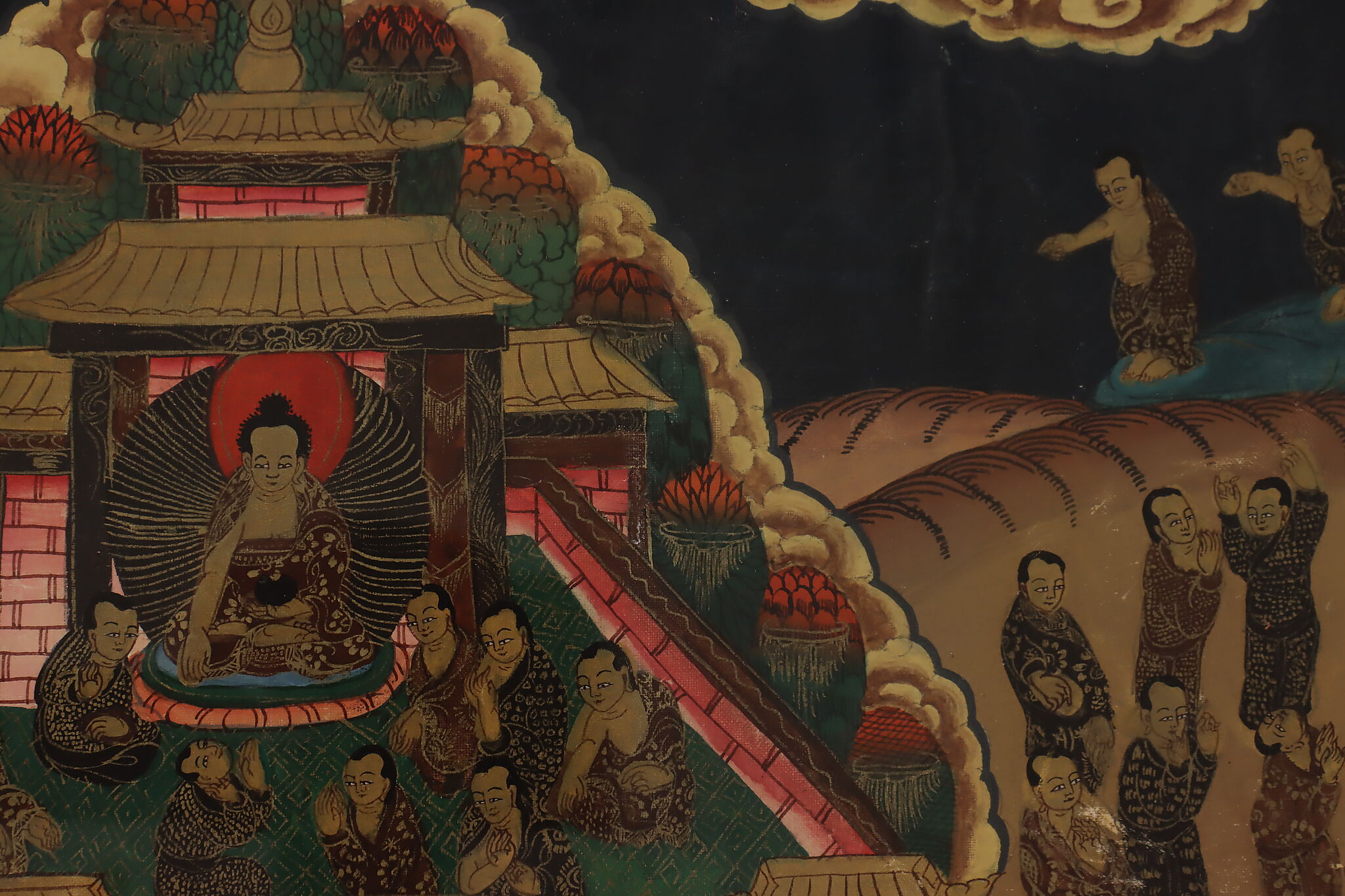 This beautiful framed thangka possibly portrays Kalachakra, a cosmic deity of wisdom and time.