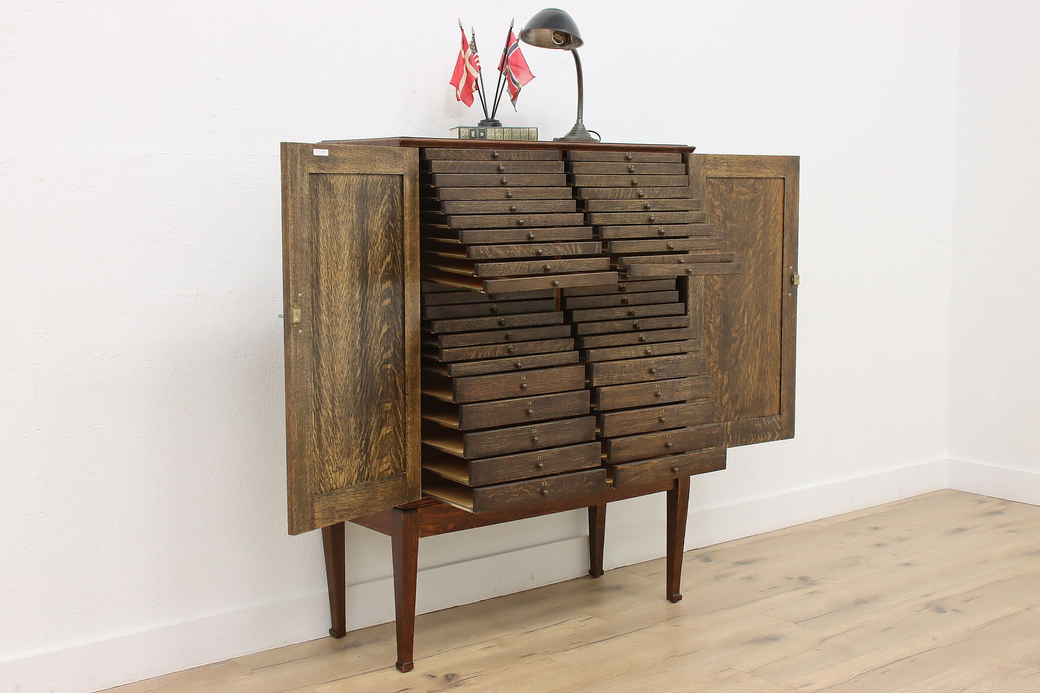 The forty-four drawers in this traditional file cabinet are perfect for office papers or collector items.