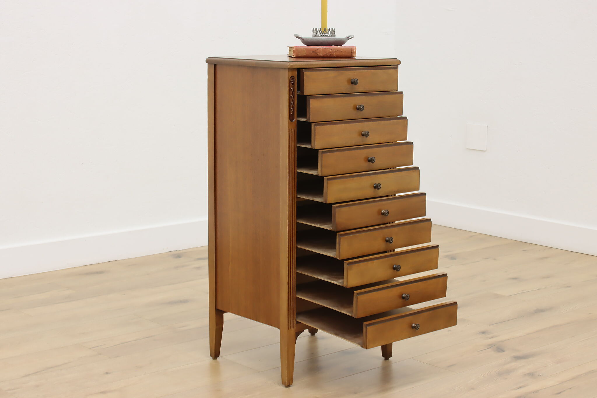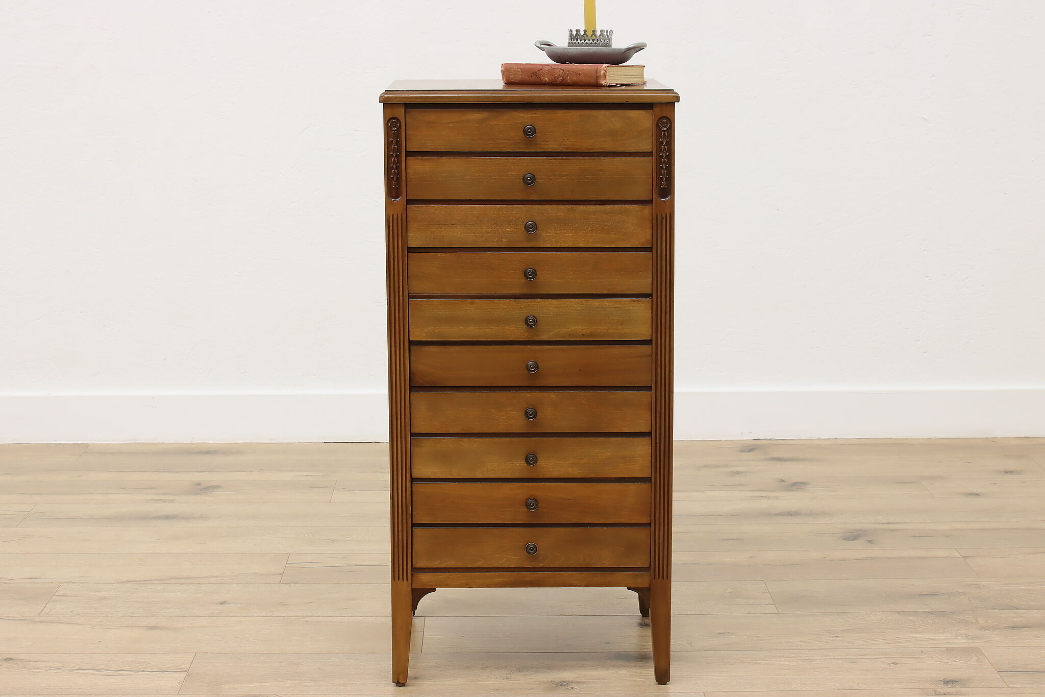 Organize your sheet music, prints or important documents with this ten drawer file cabinet.