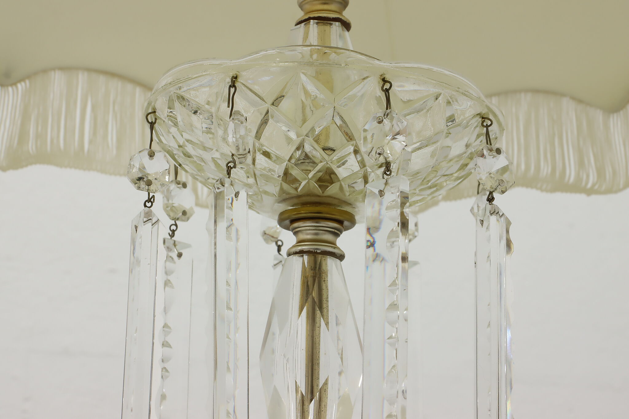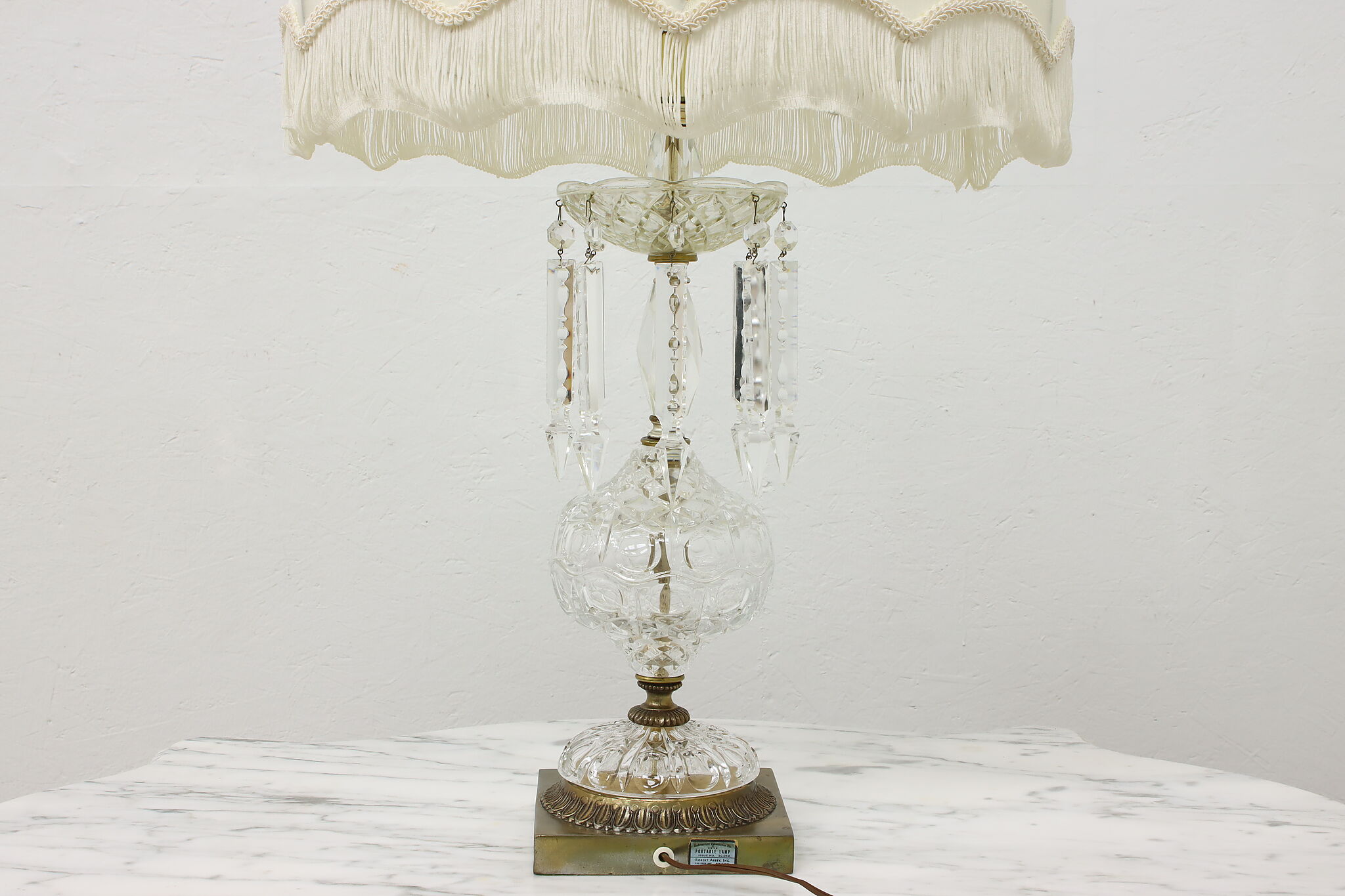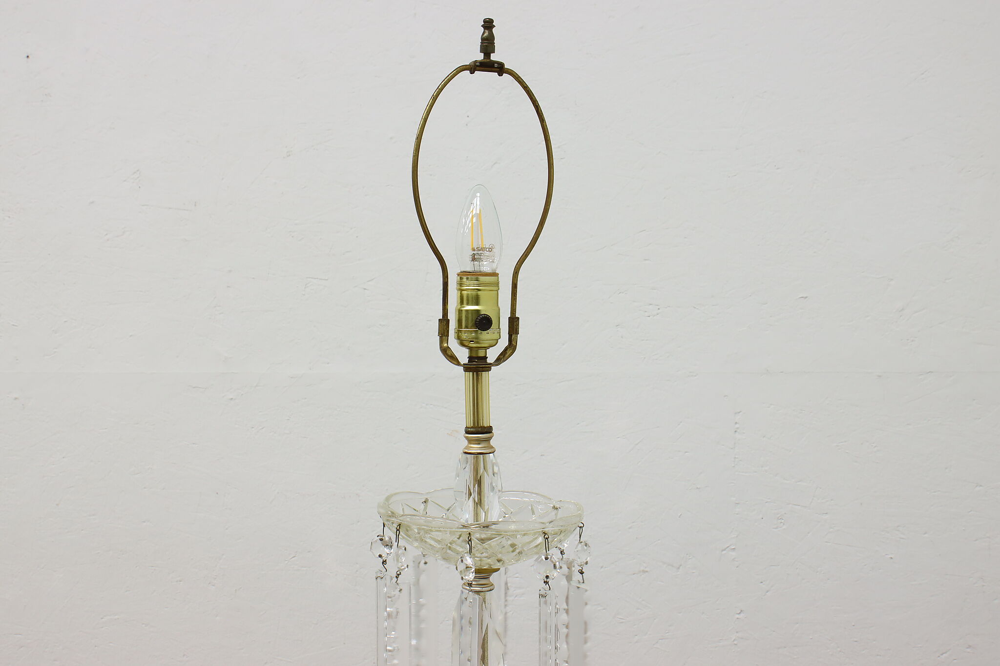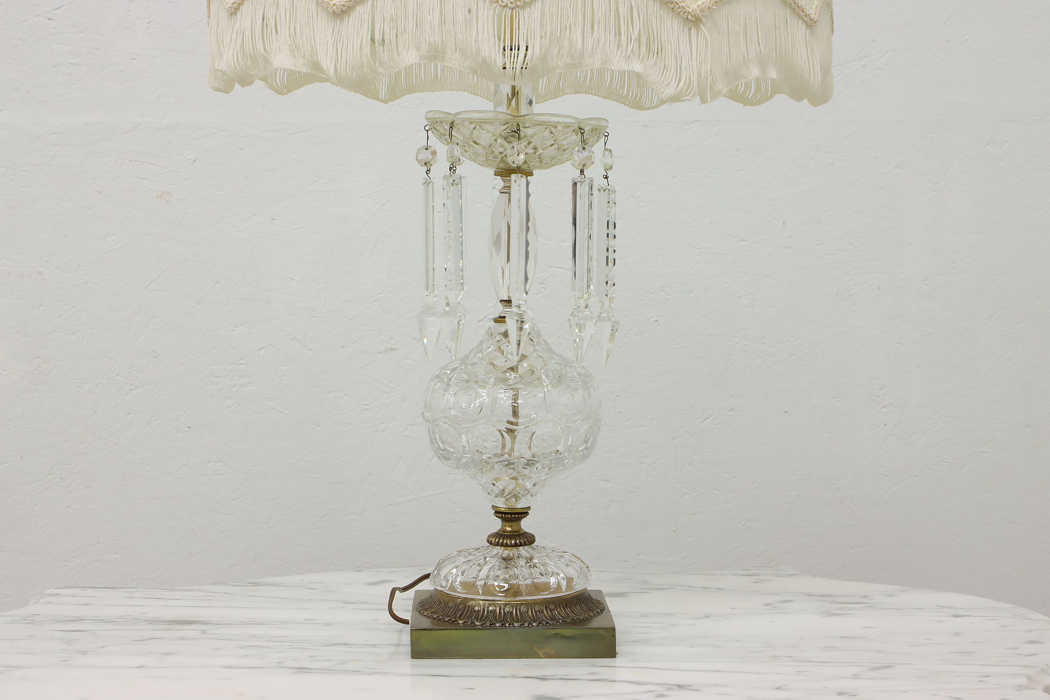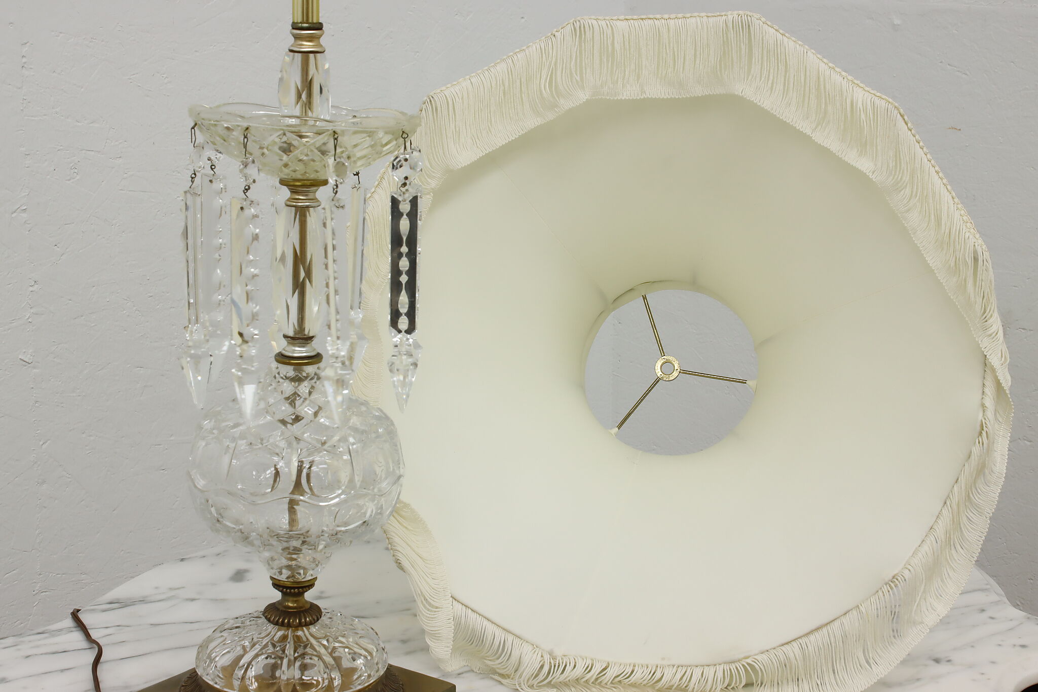 This beautiful lamp has large hanging cut crystal prisms for a dash of elegance.