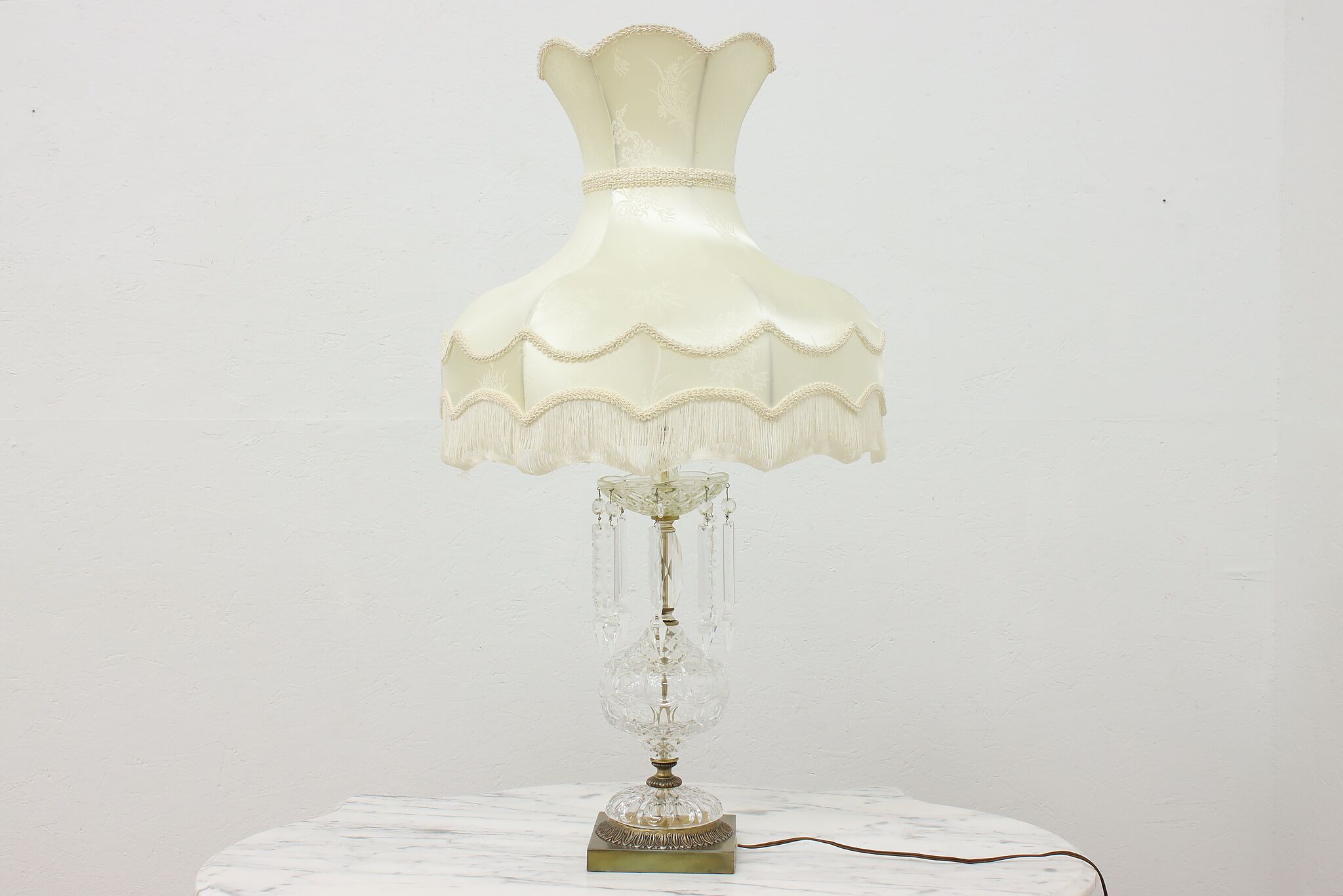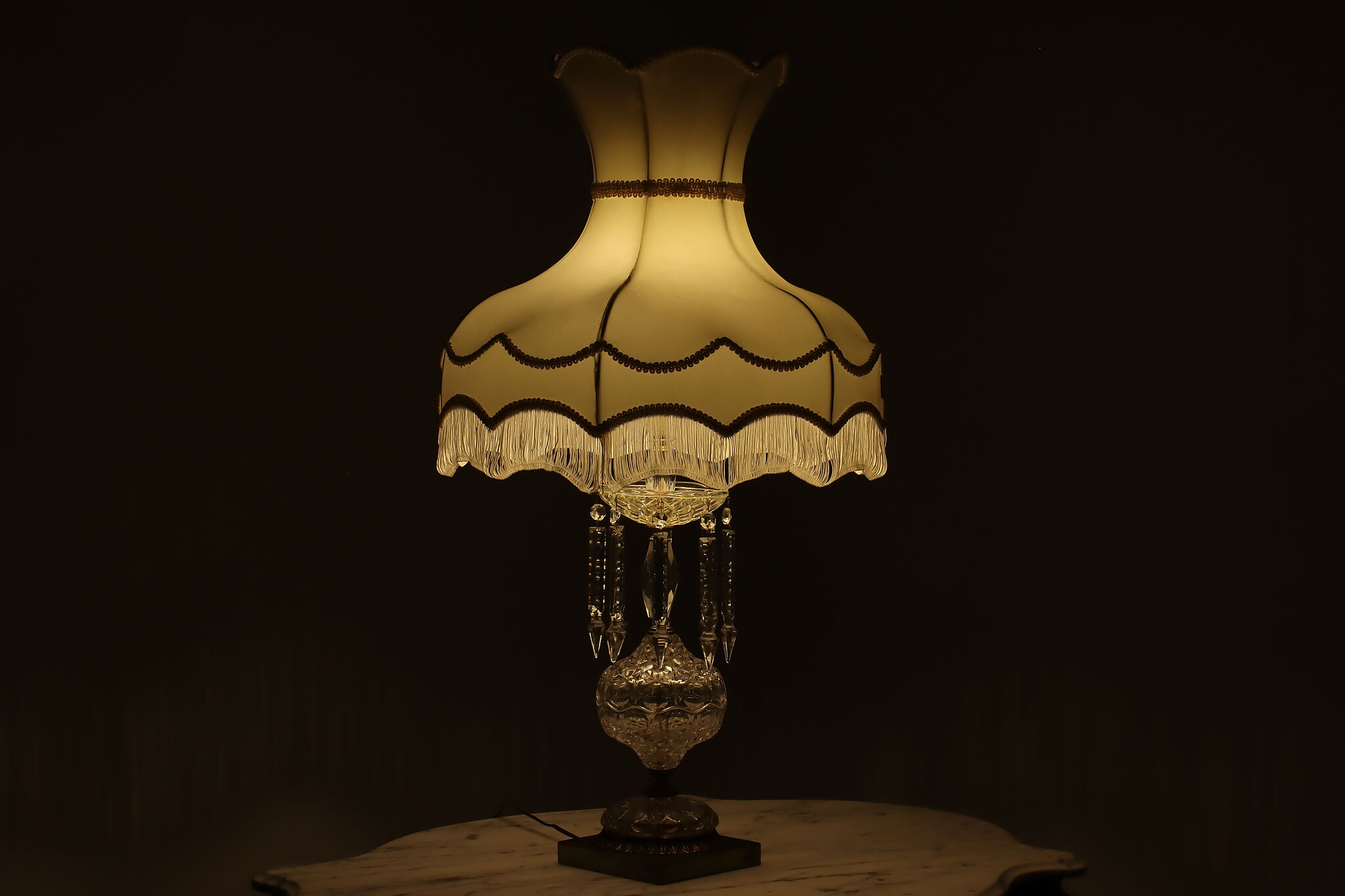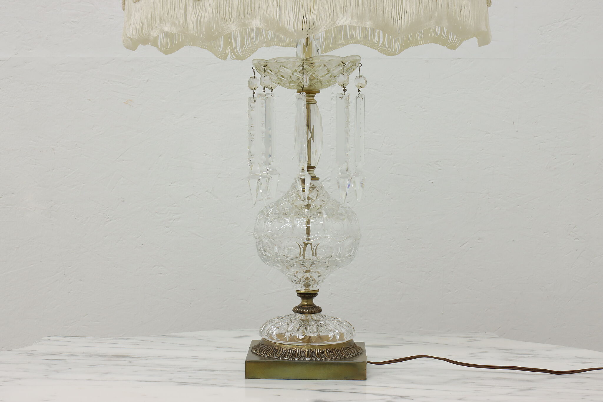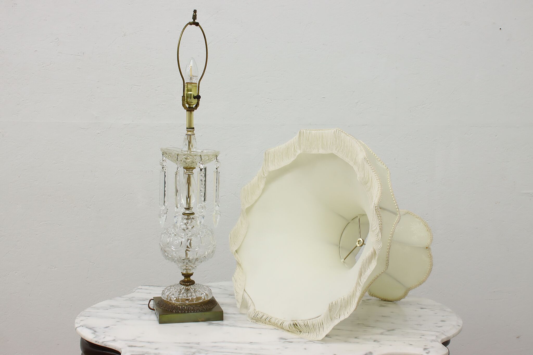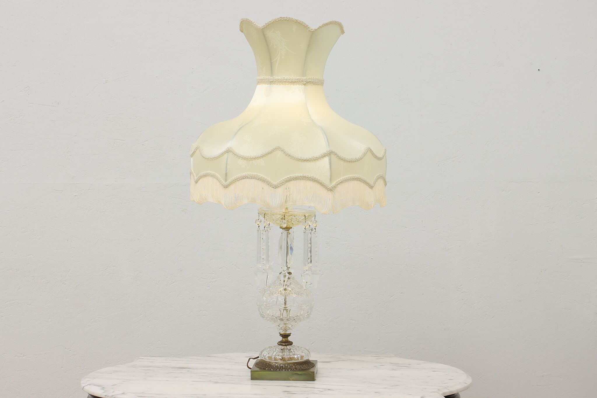 This beautiful lamp has large hanging cut crystal prisms for a dash of elegance.