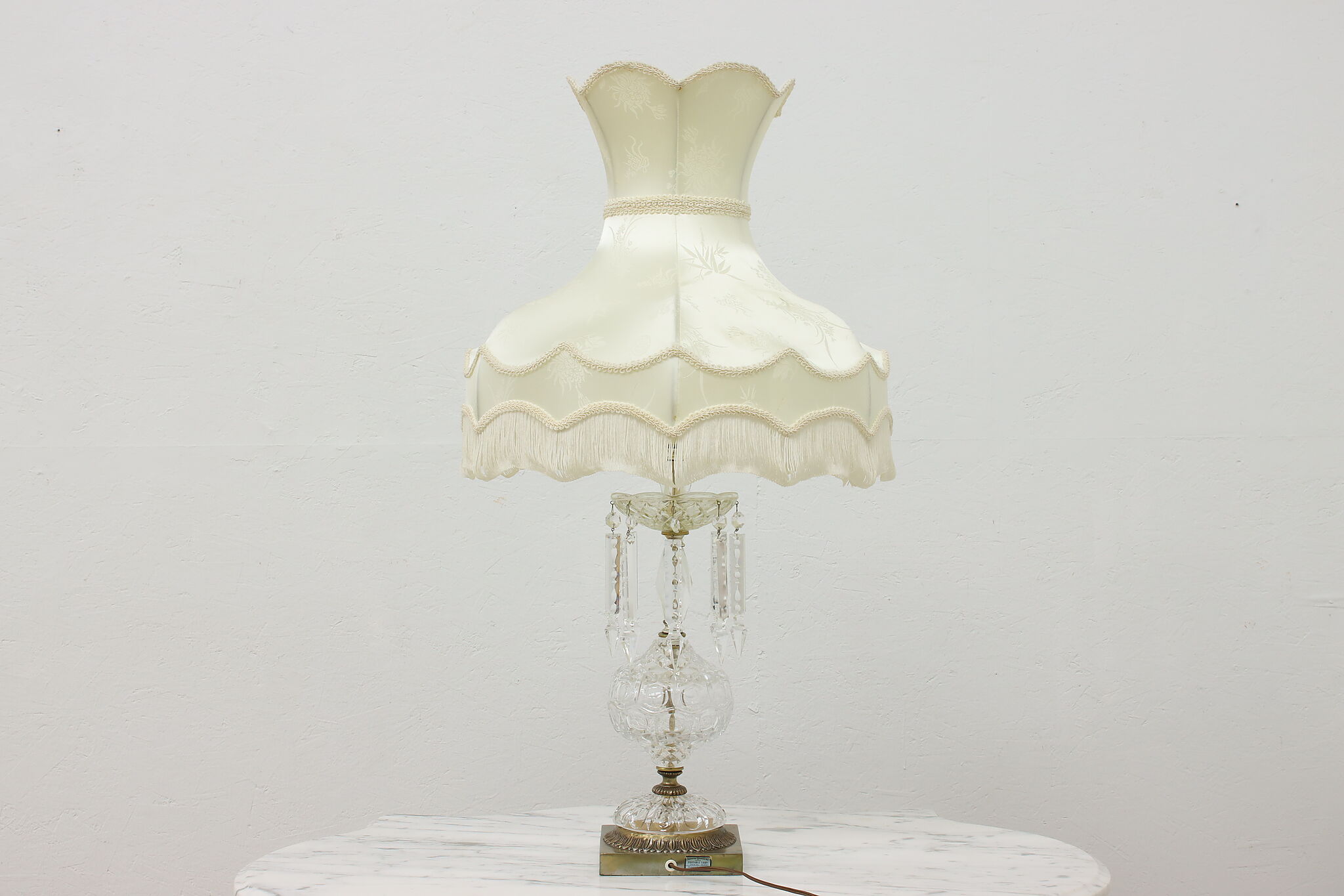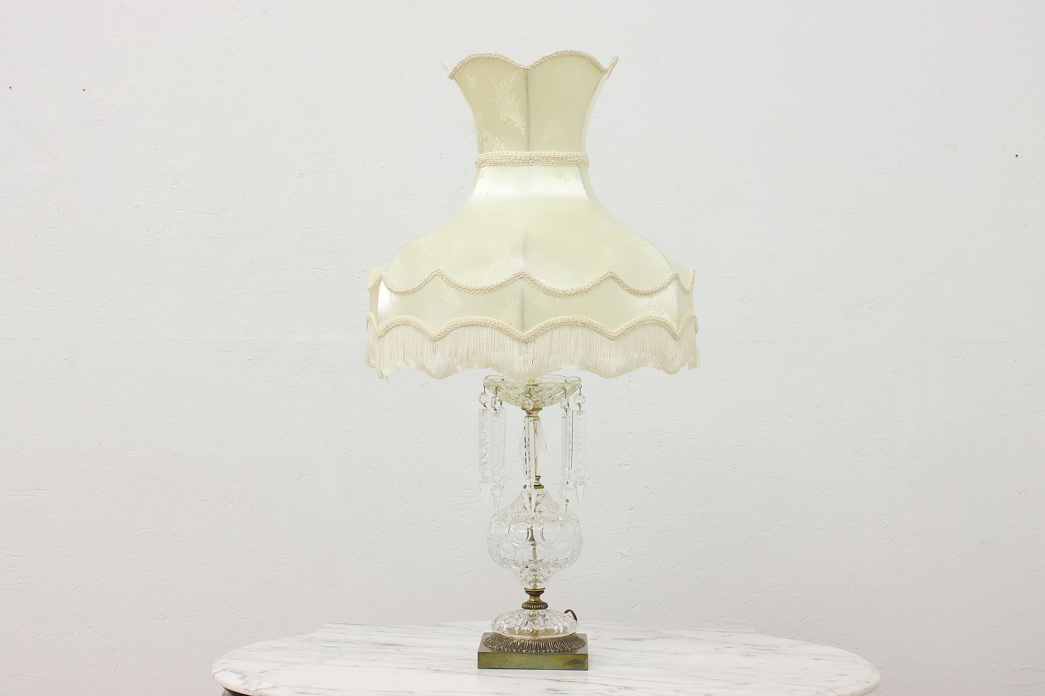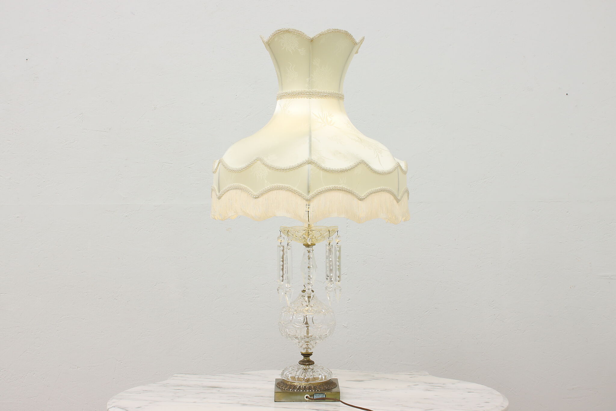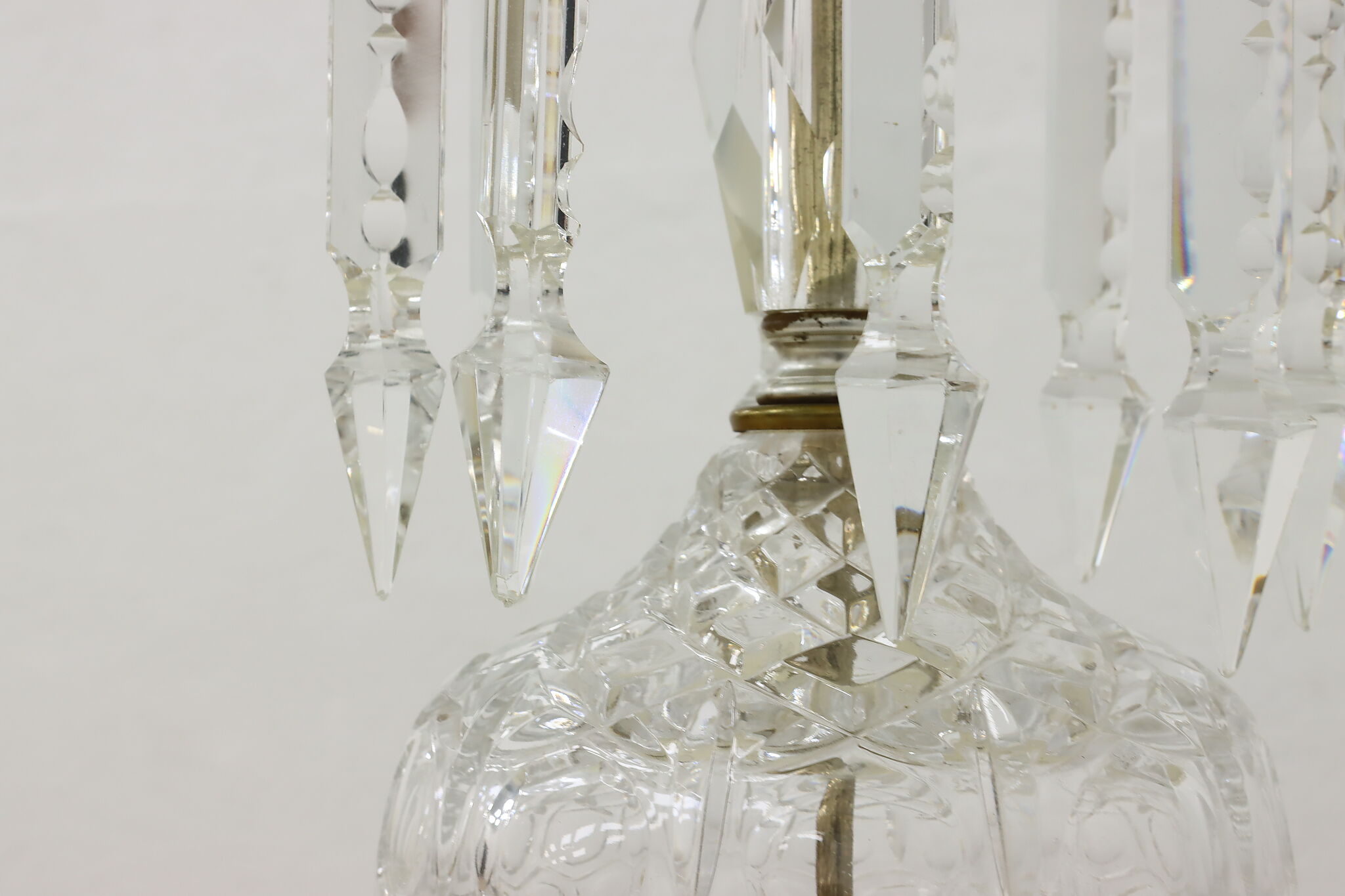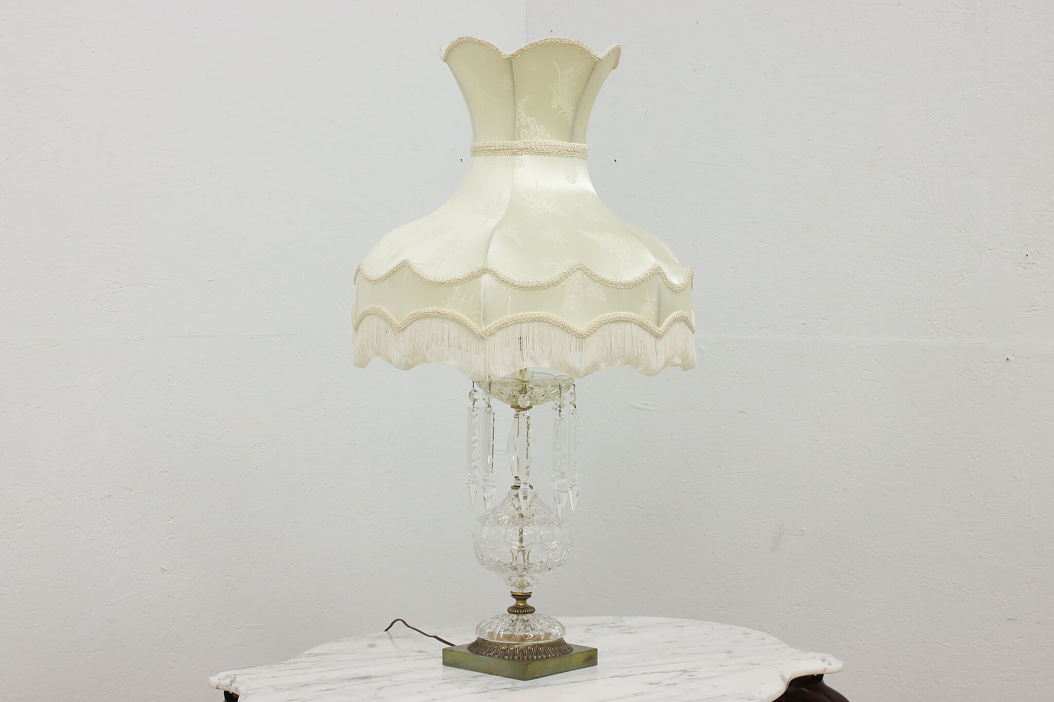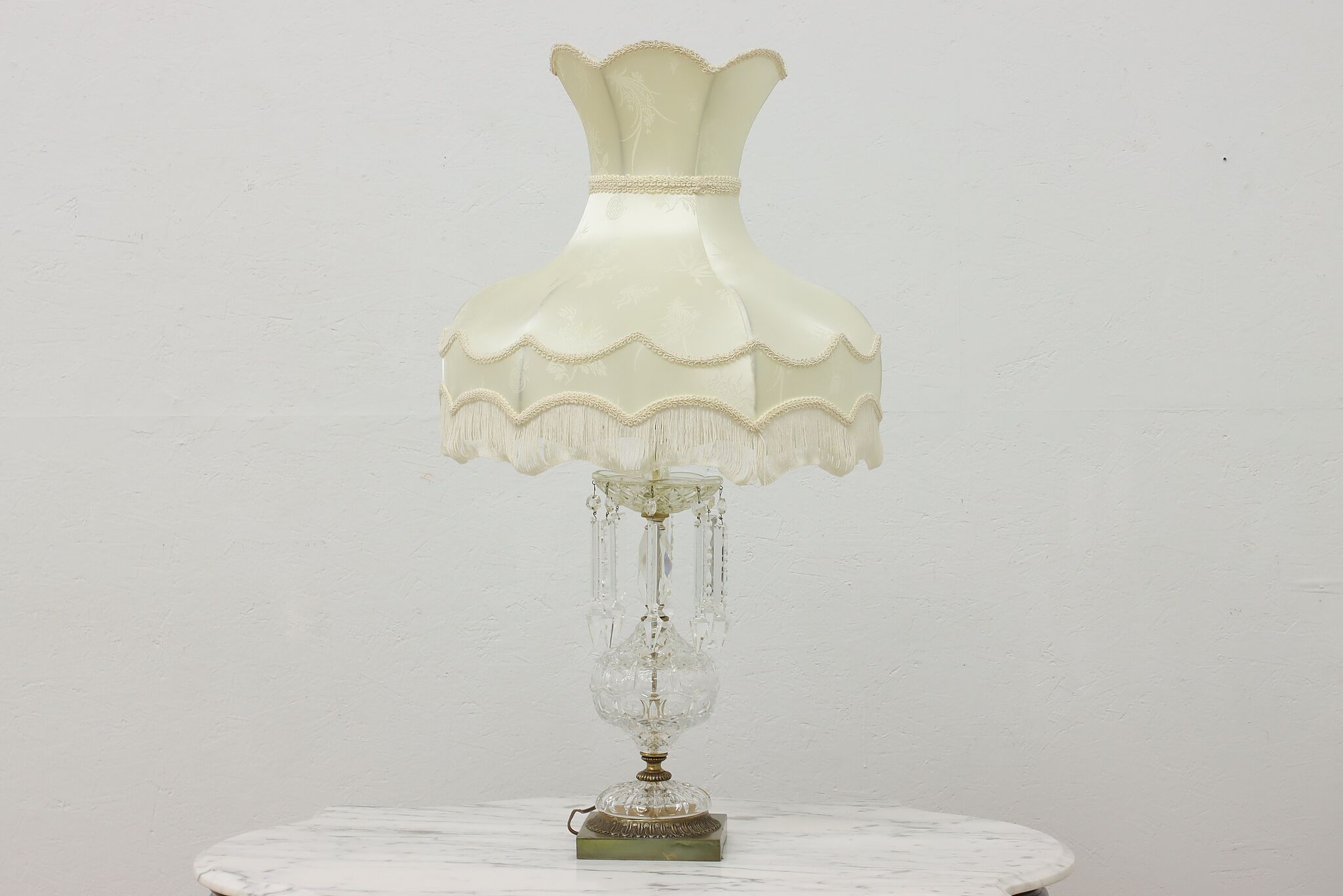 This beautiful lamp has large hanging cut crystal prisms for a dash of elegance.