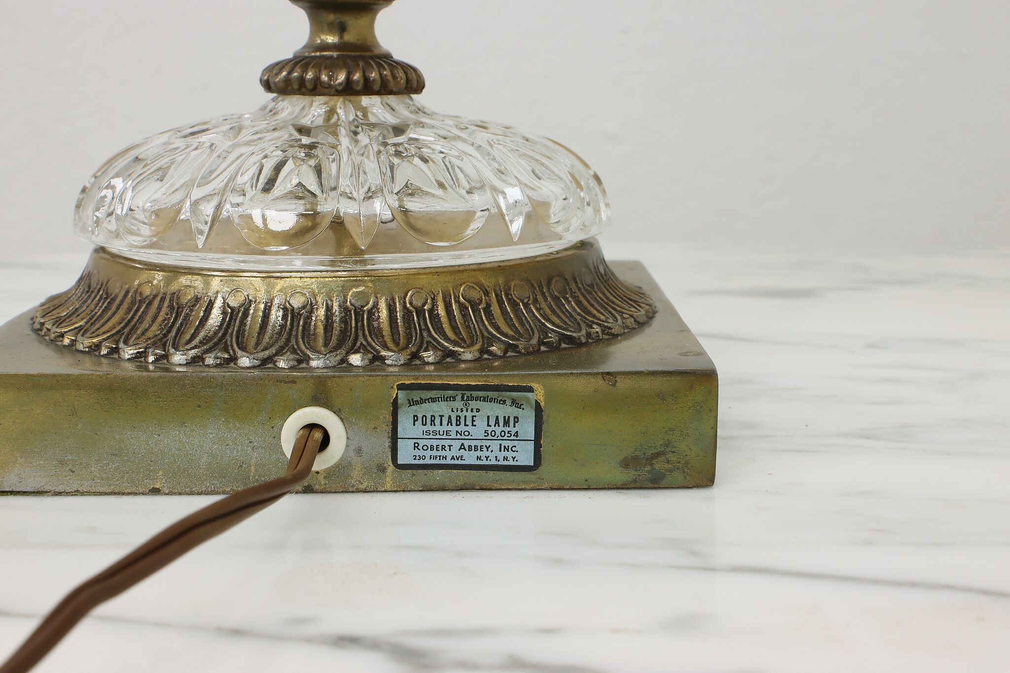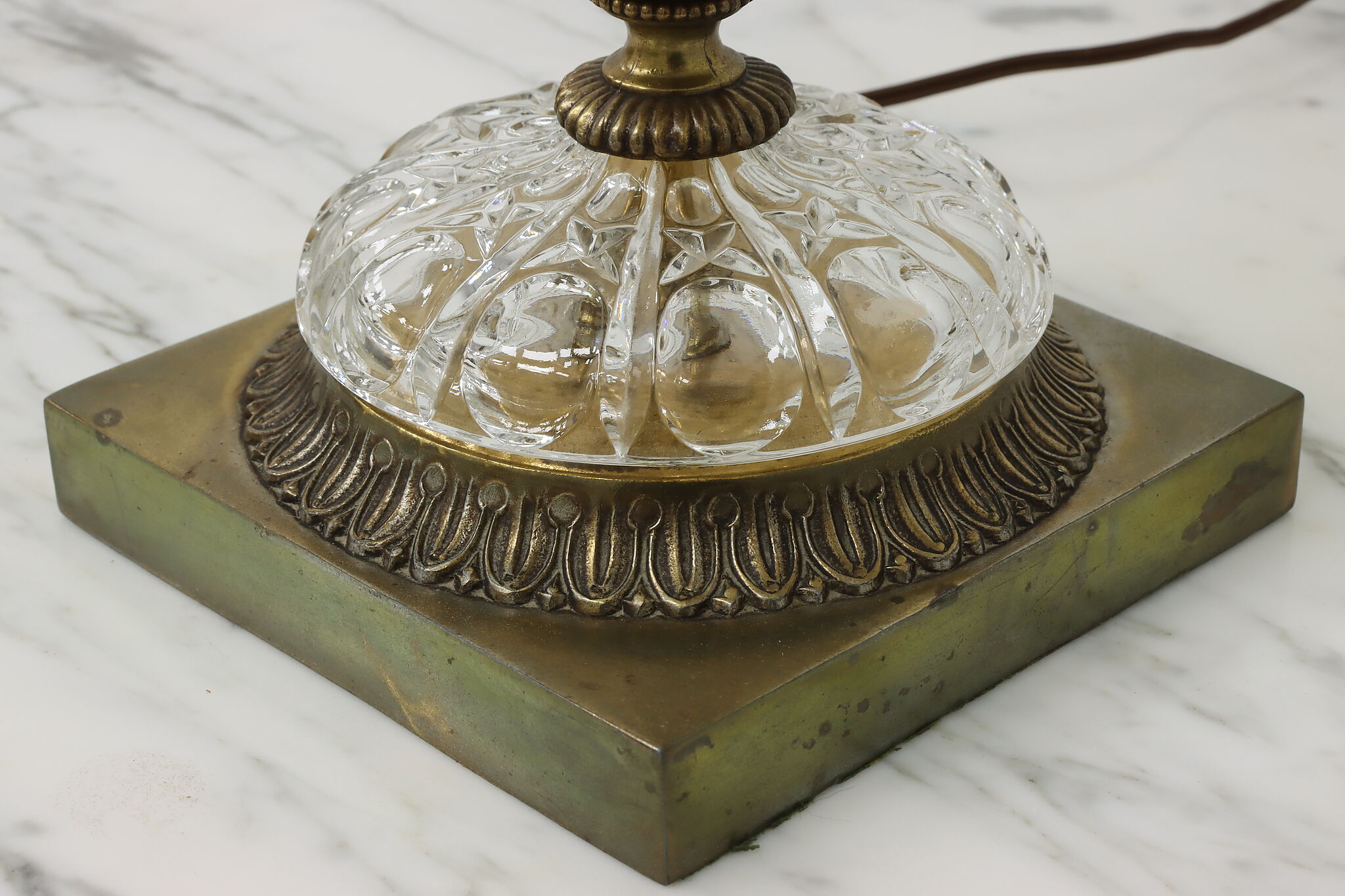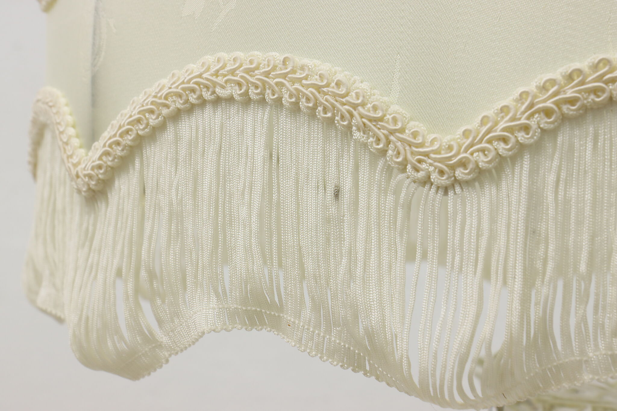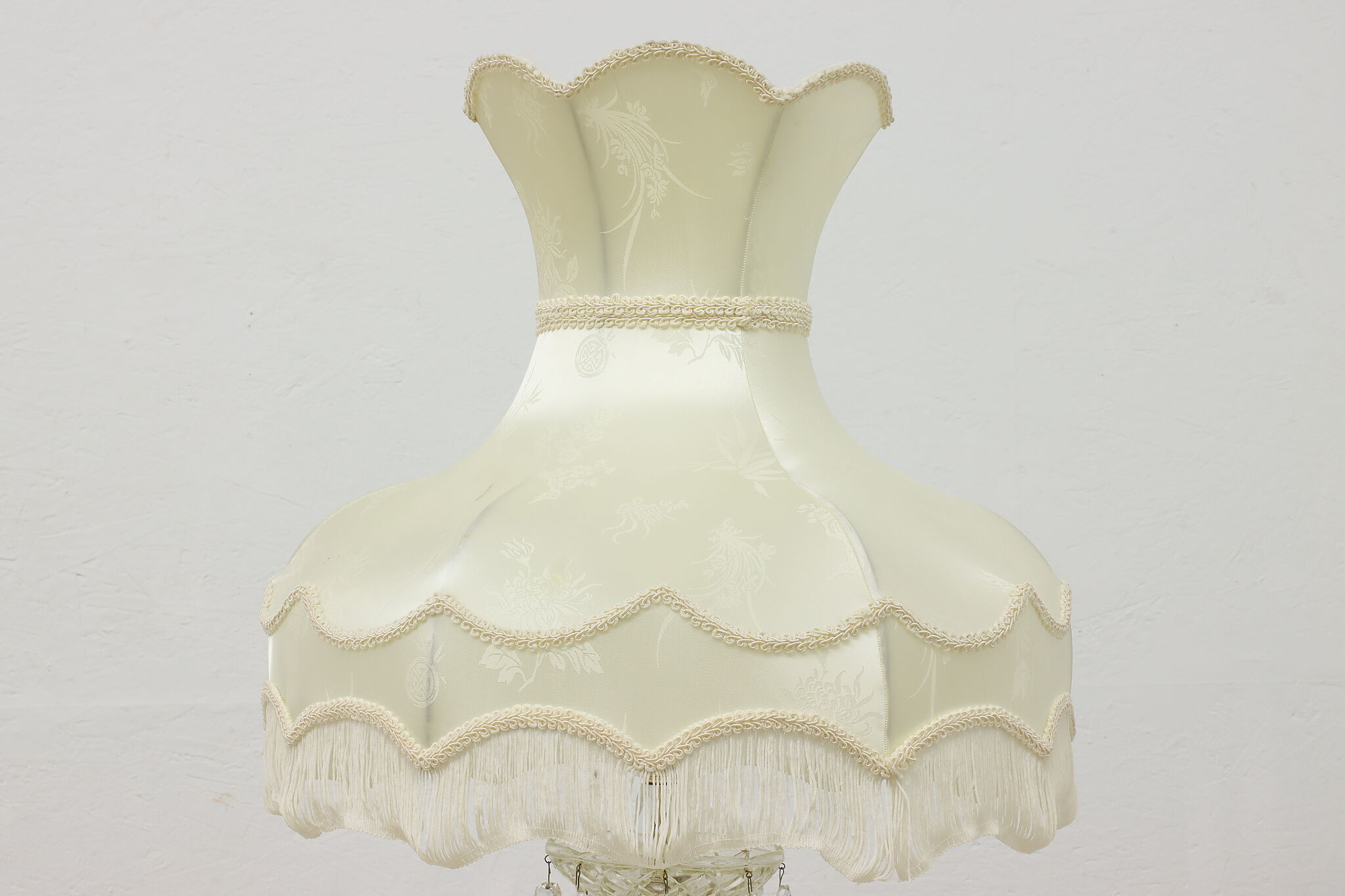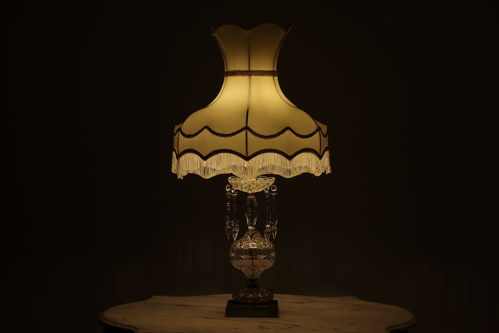 This beautiful lamp has large hanging cut crystal prisms for a dash of elegance.