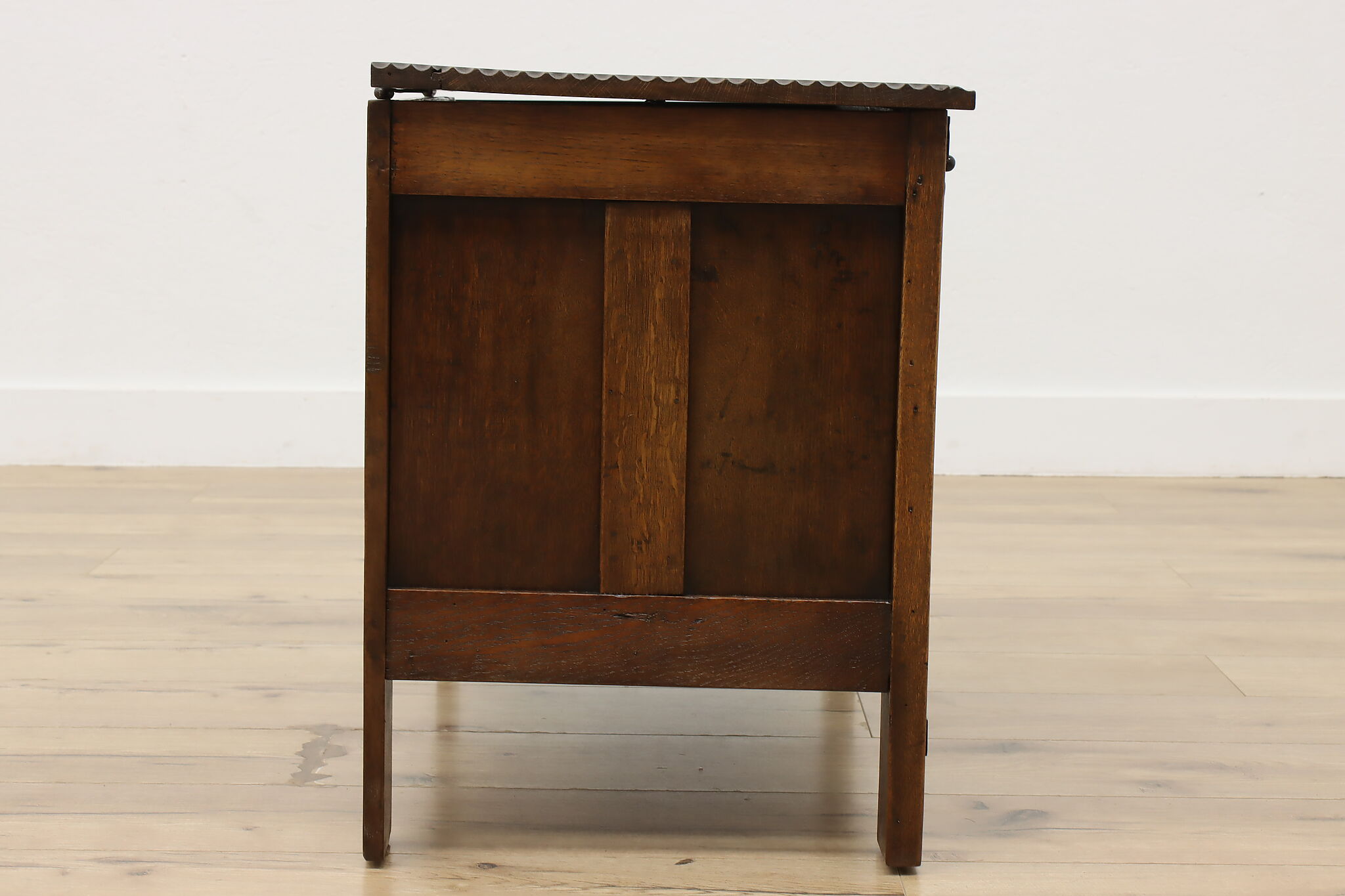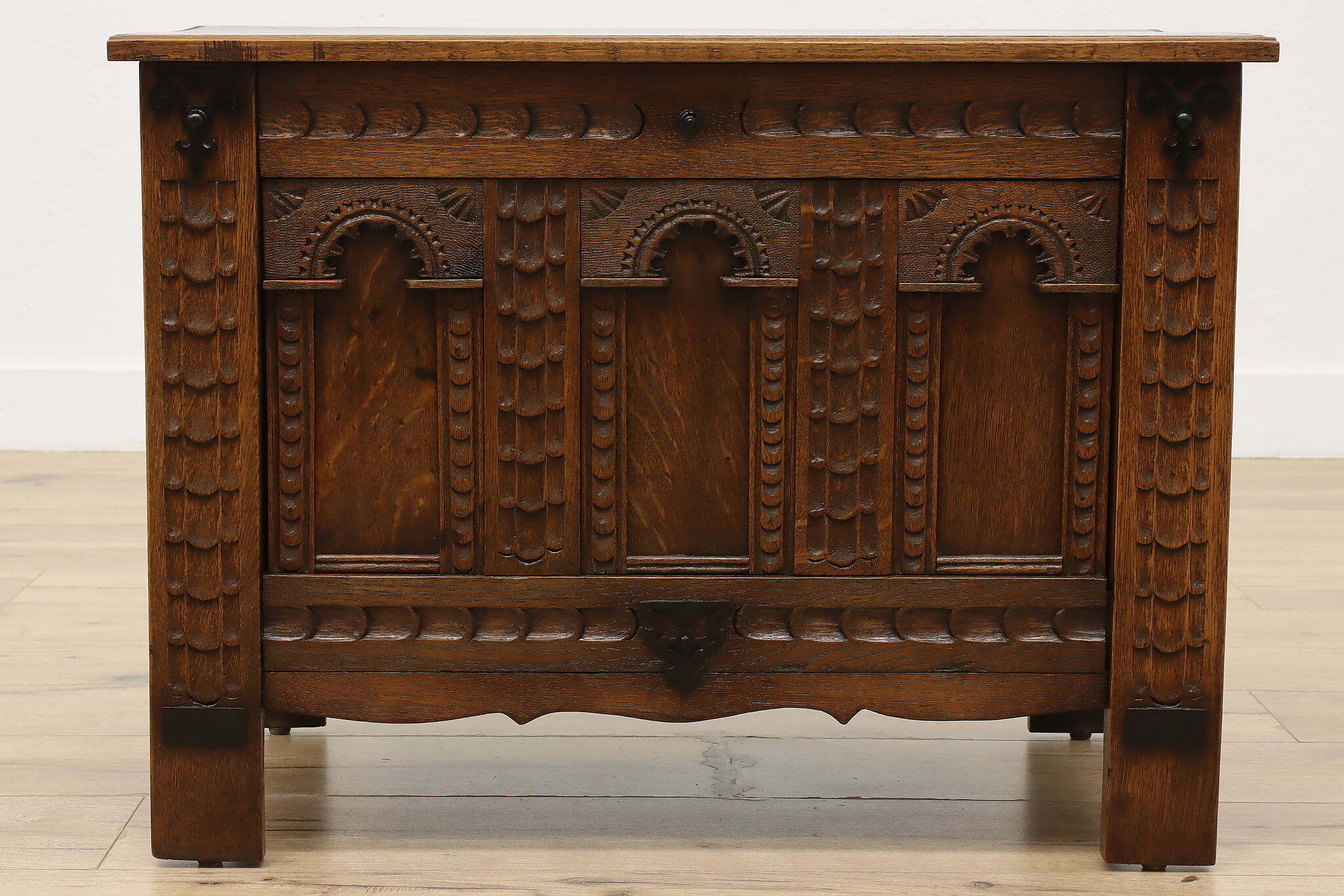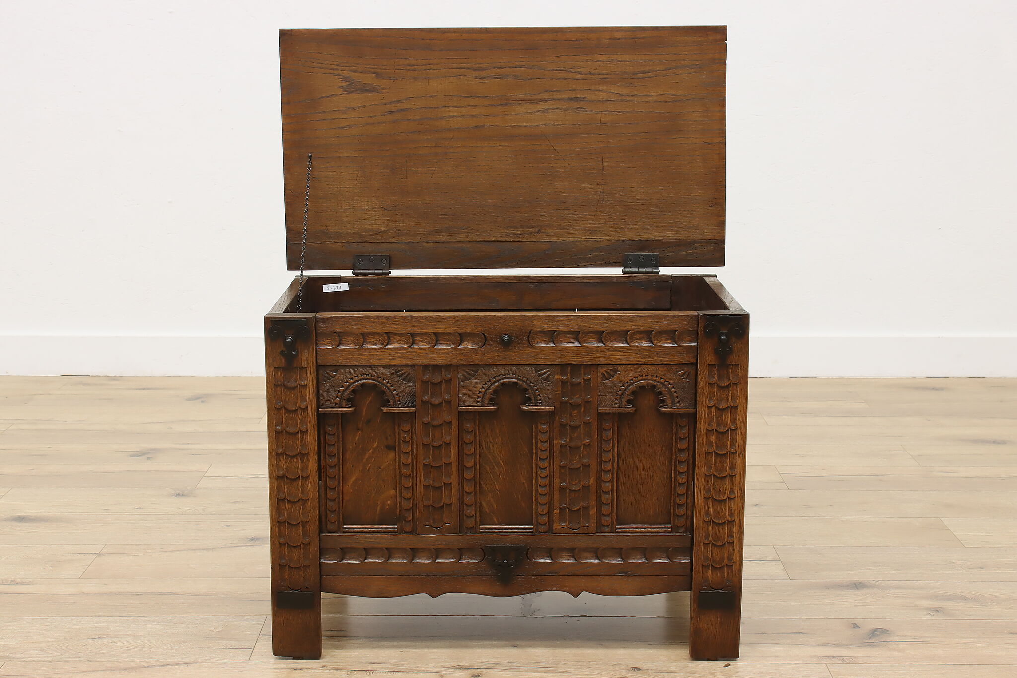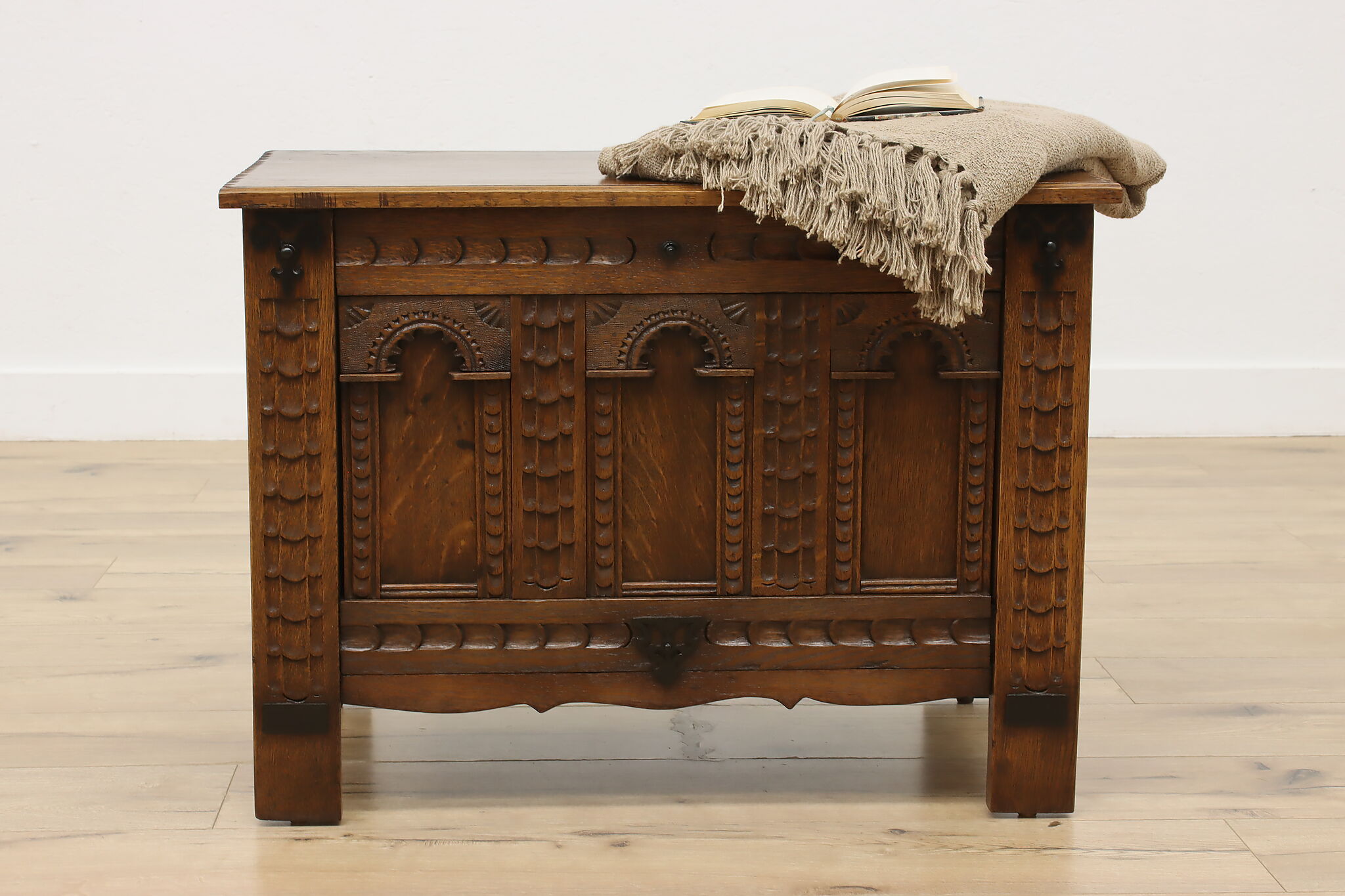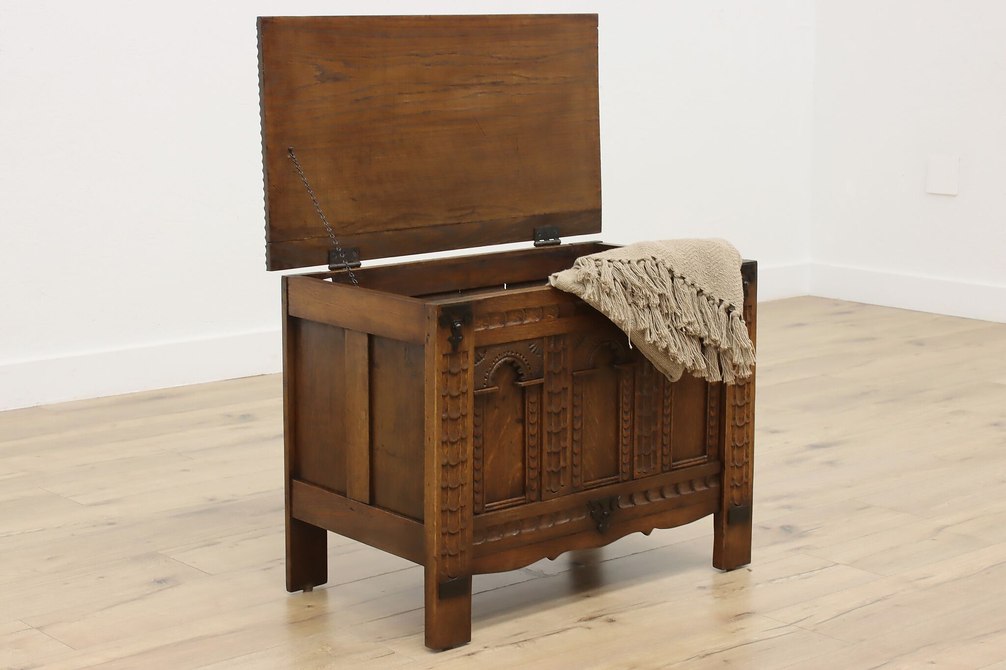 Often called a "coffer", this small chest or trunk would've been used to store valuables, such as money or heirlooms. We also think it would be a great end or side table as well.