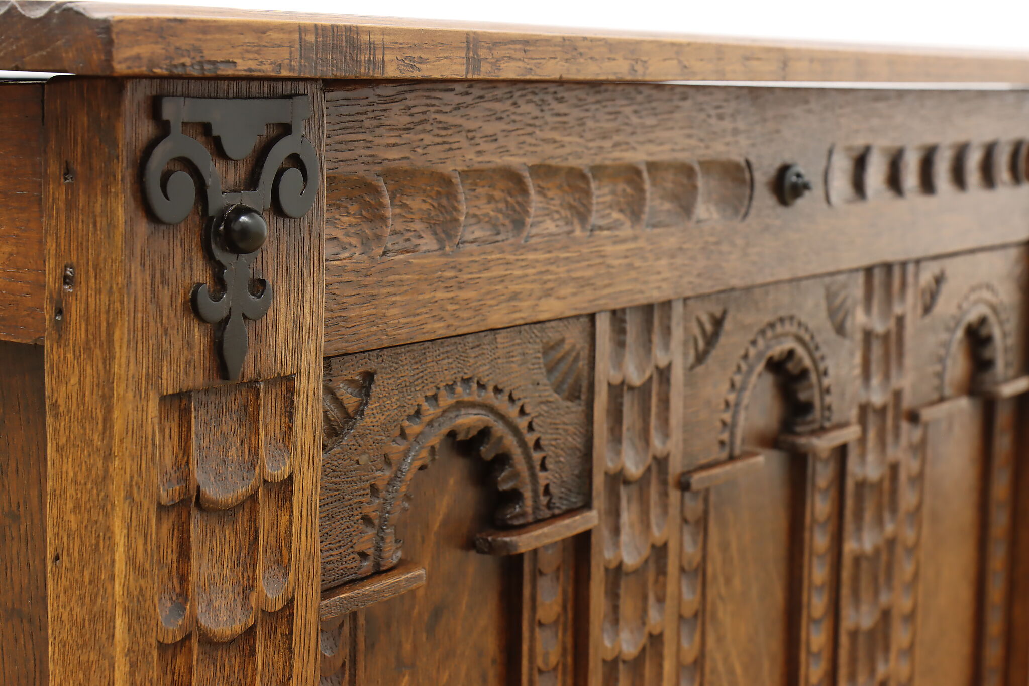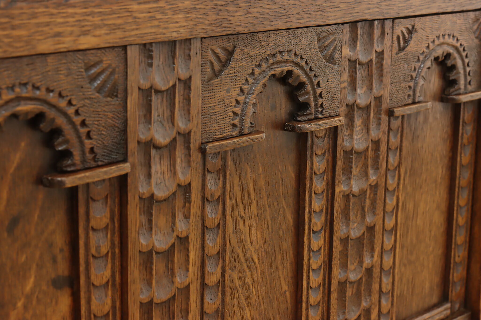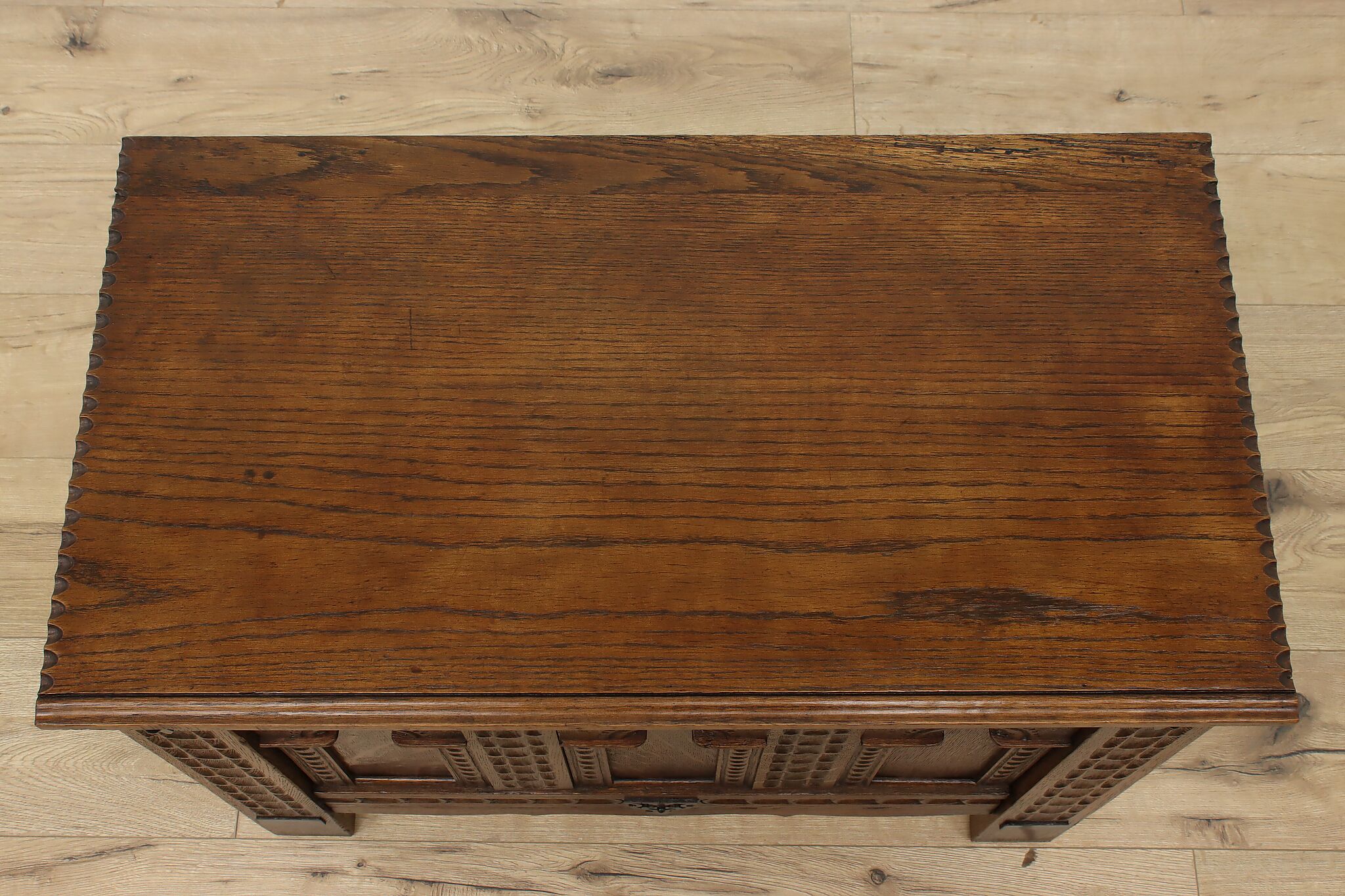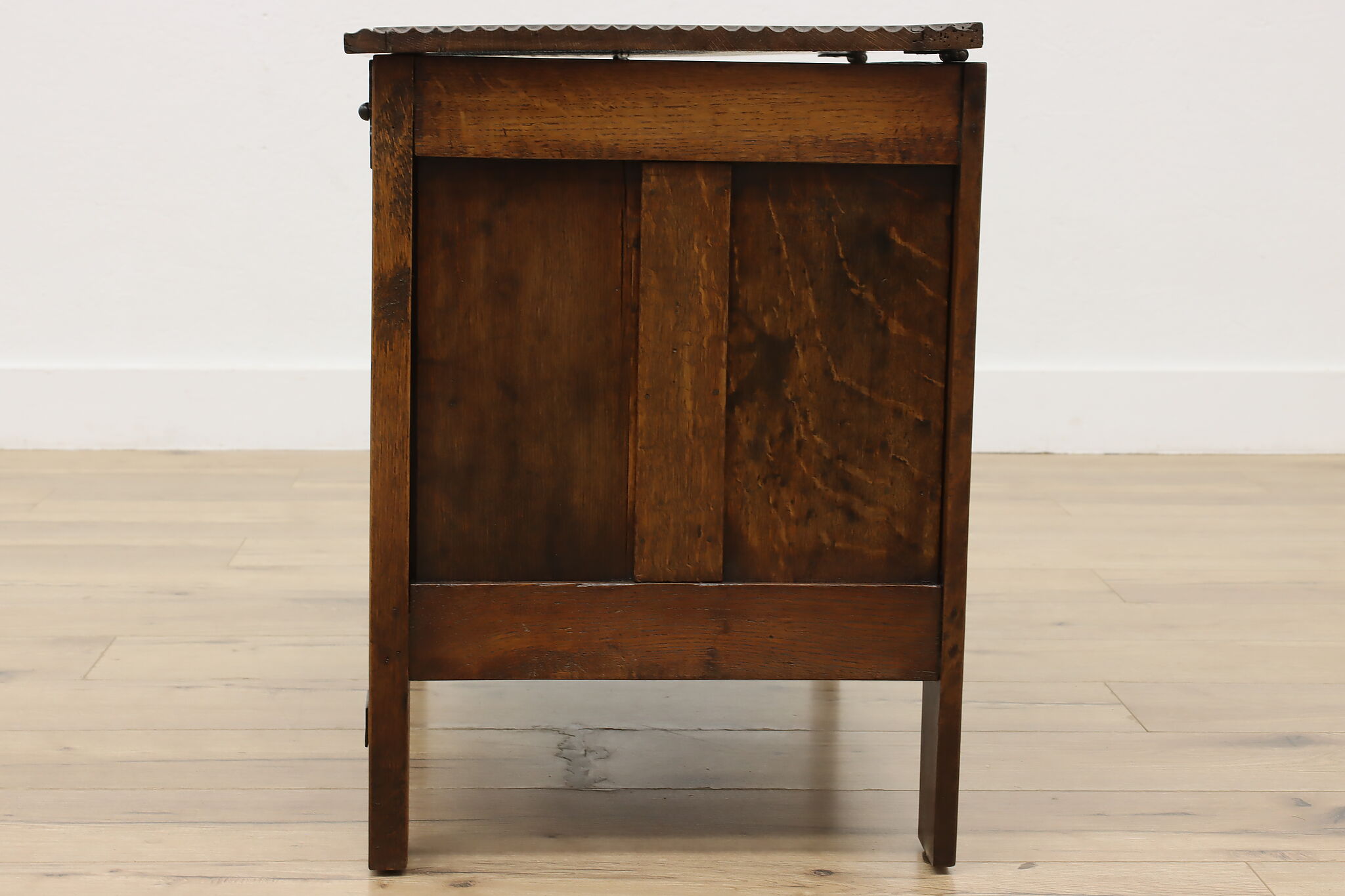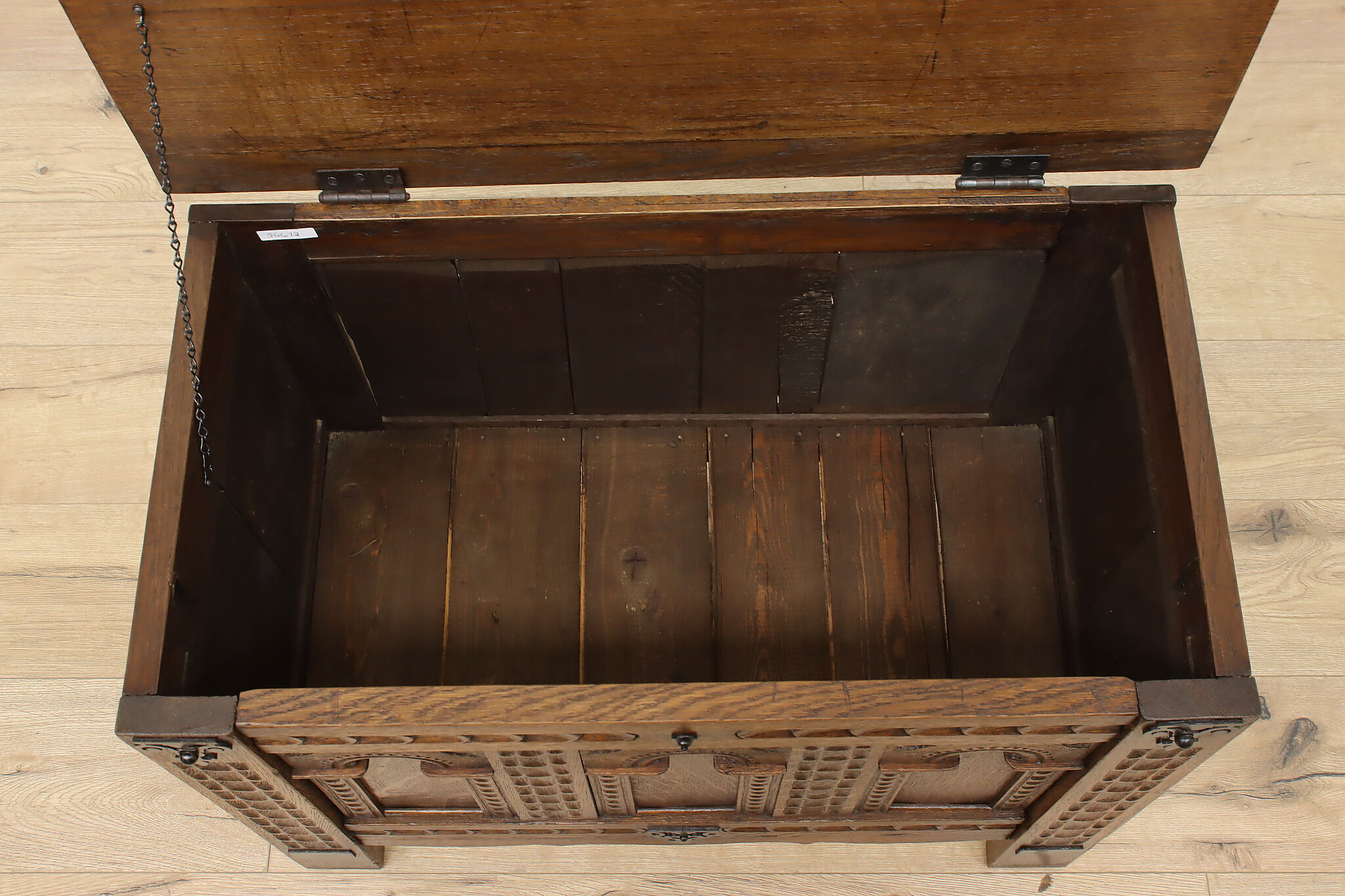 Often called a "coffer", this small chest or trunk would've been used to store valuables, such as money or heirlooms. We also think it would be a great end or side table as well.