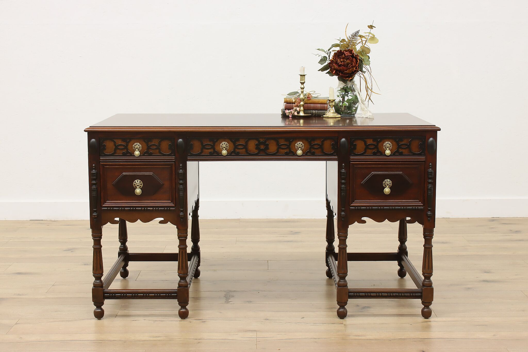 Want to add beauty and function into your office or library? This English Tudor design desk is the perfect choice!