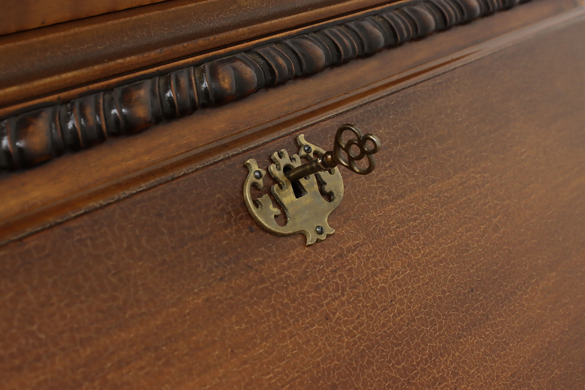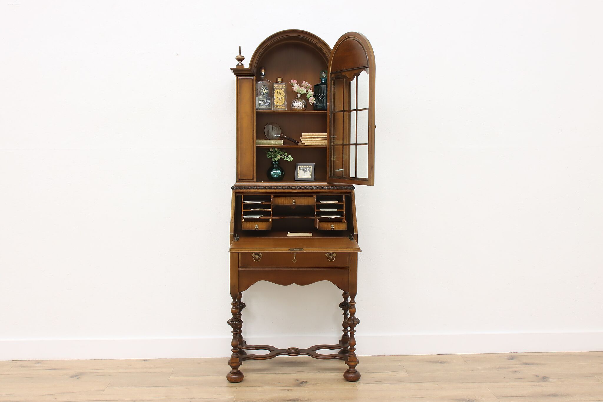 This beautiful Tudor design secretary desk and bookcase is a wonderful option for a small office or library.