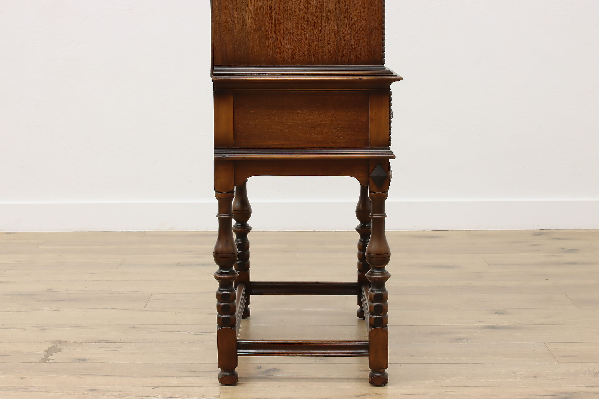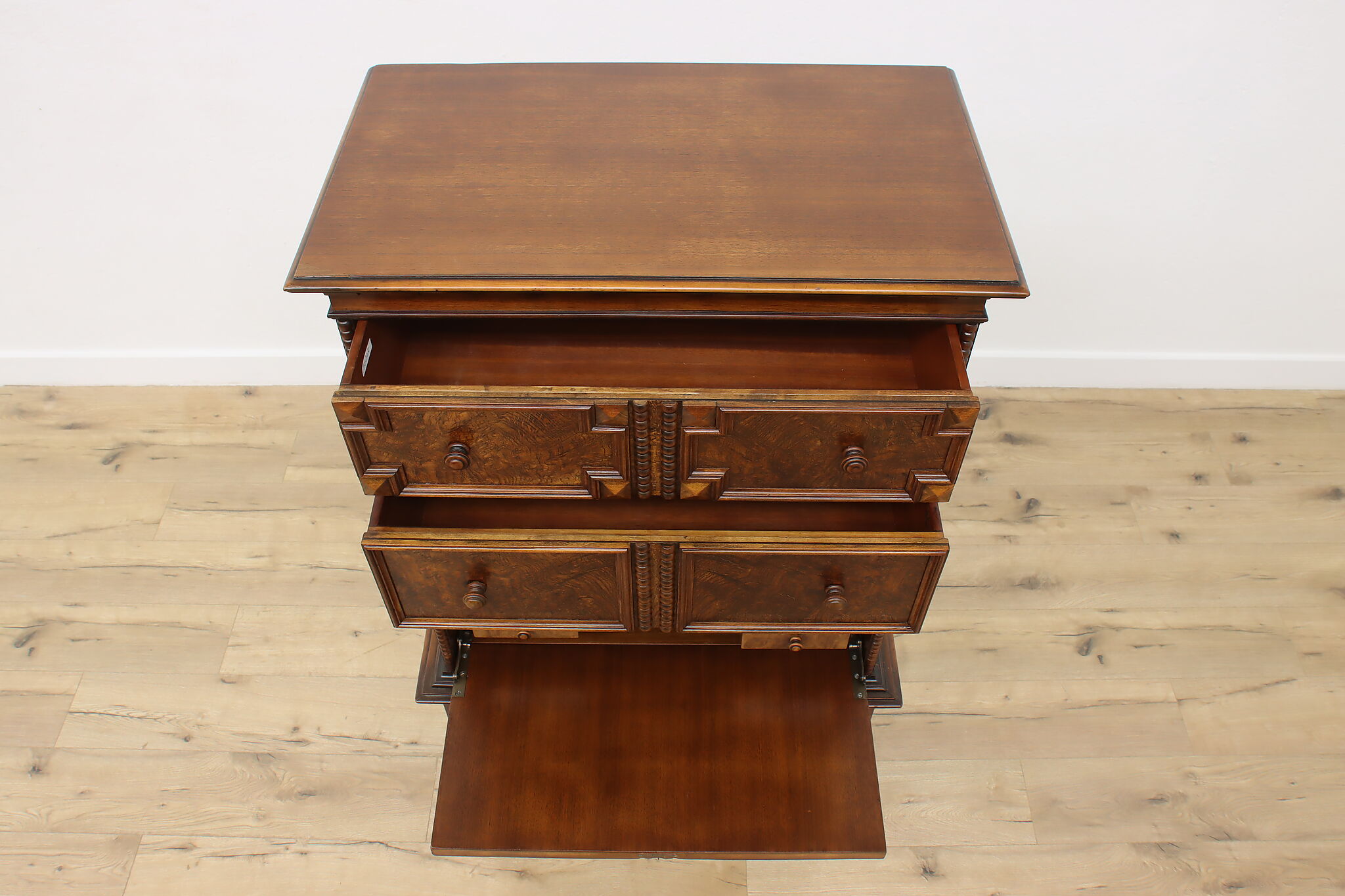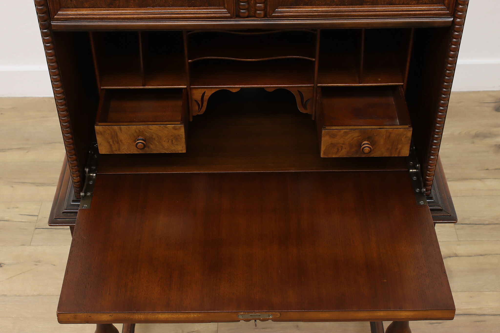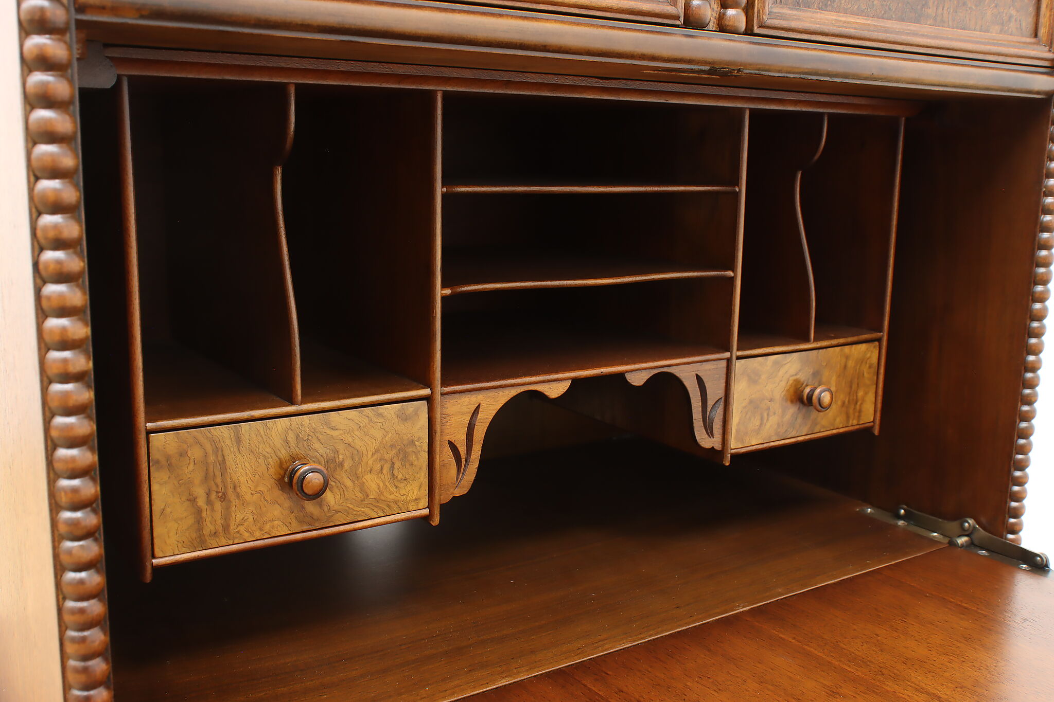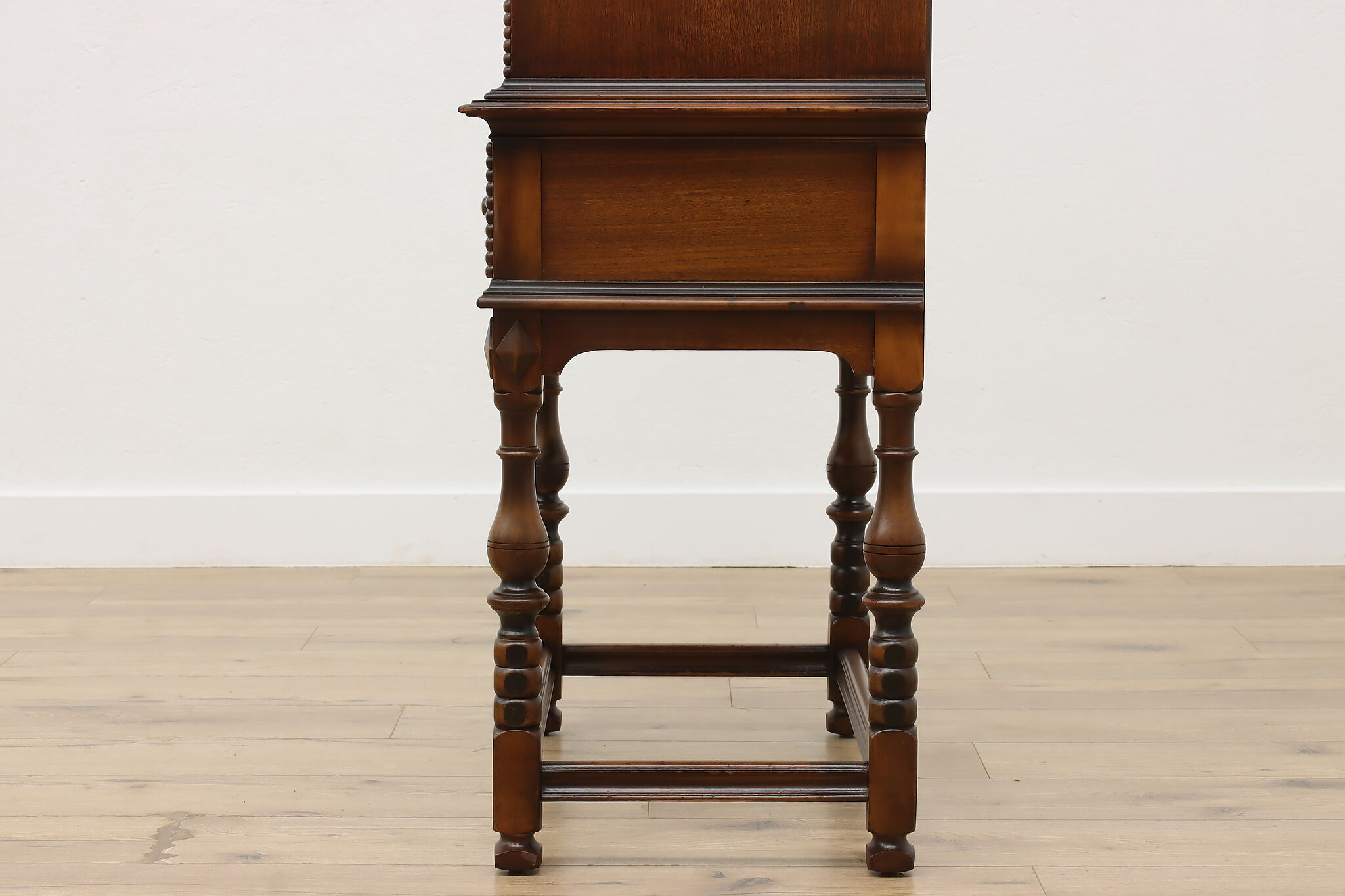 Looking for a secretary desk that has antique character with modern day practicality? This Tudor design beauty is an excellent option that works well with a laptop and can be folded away after use.