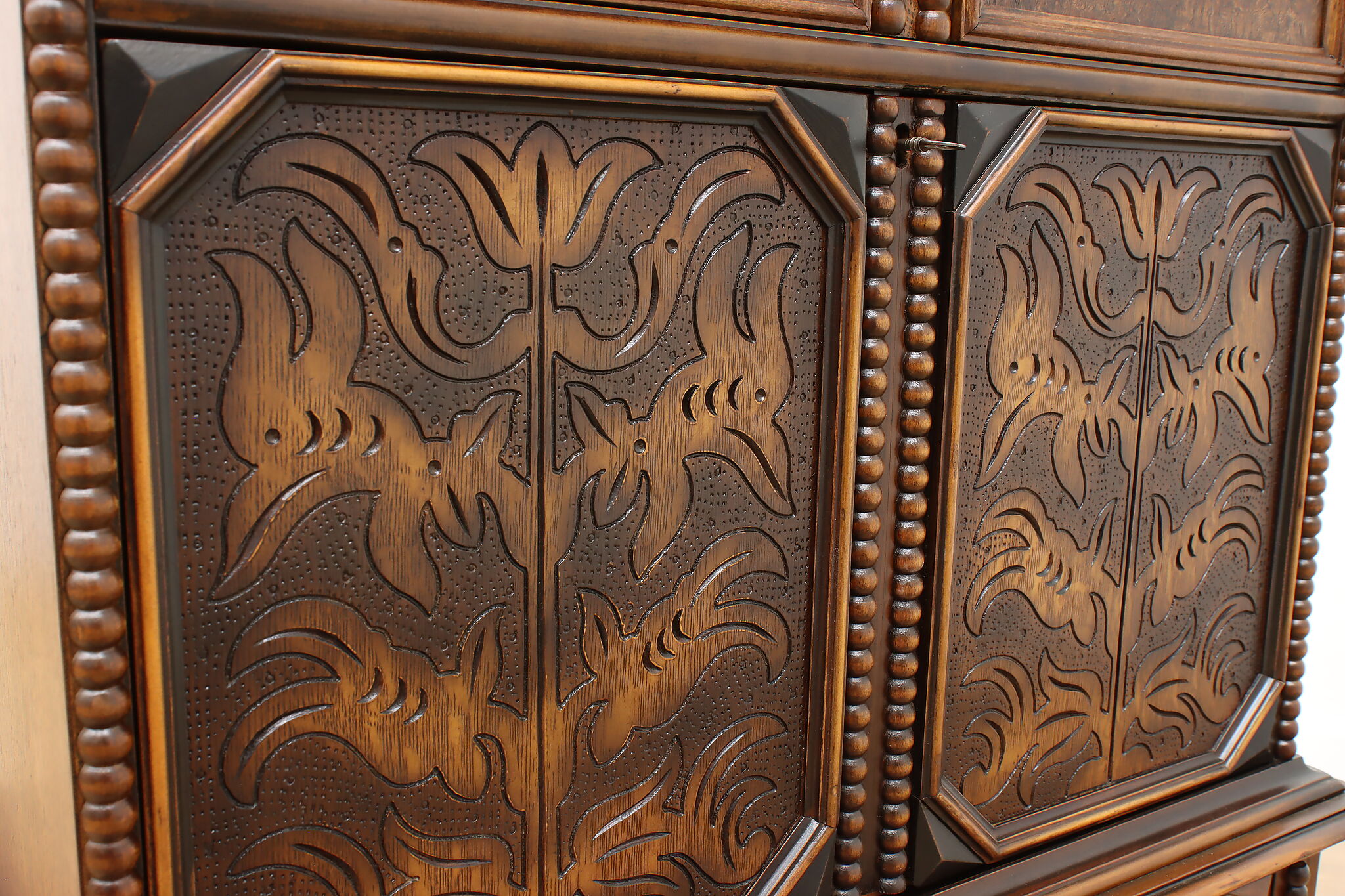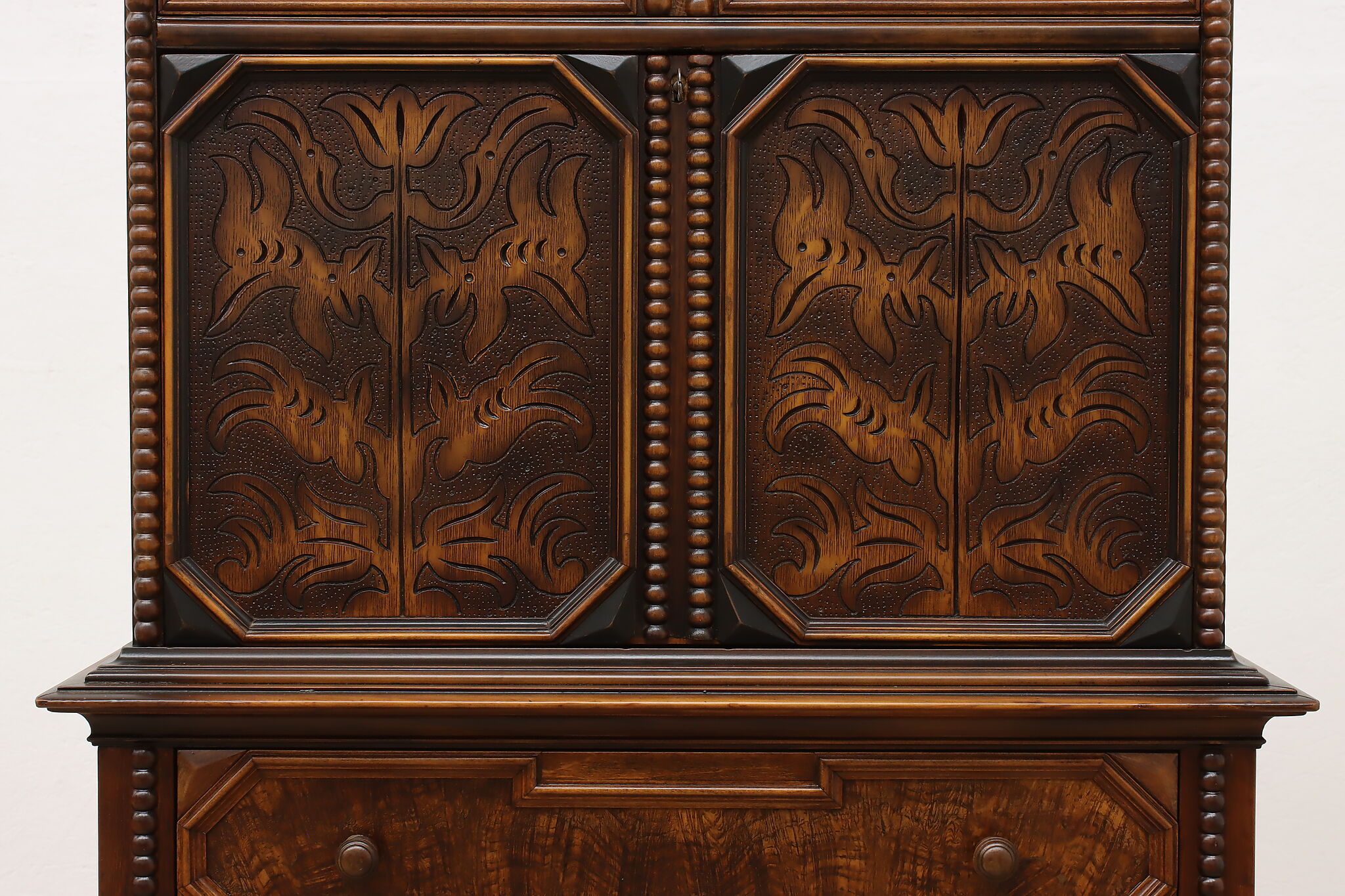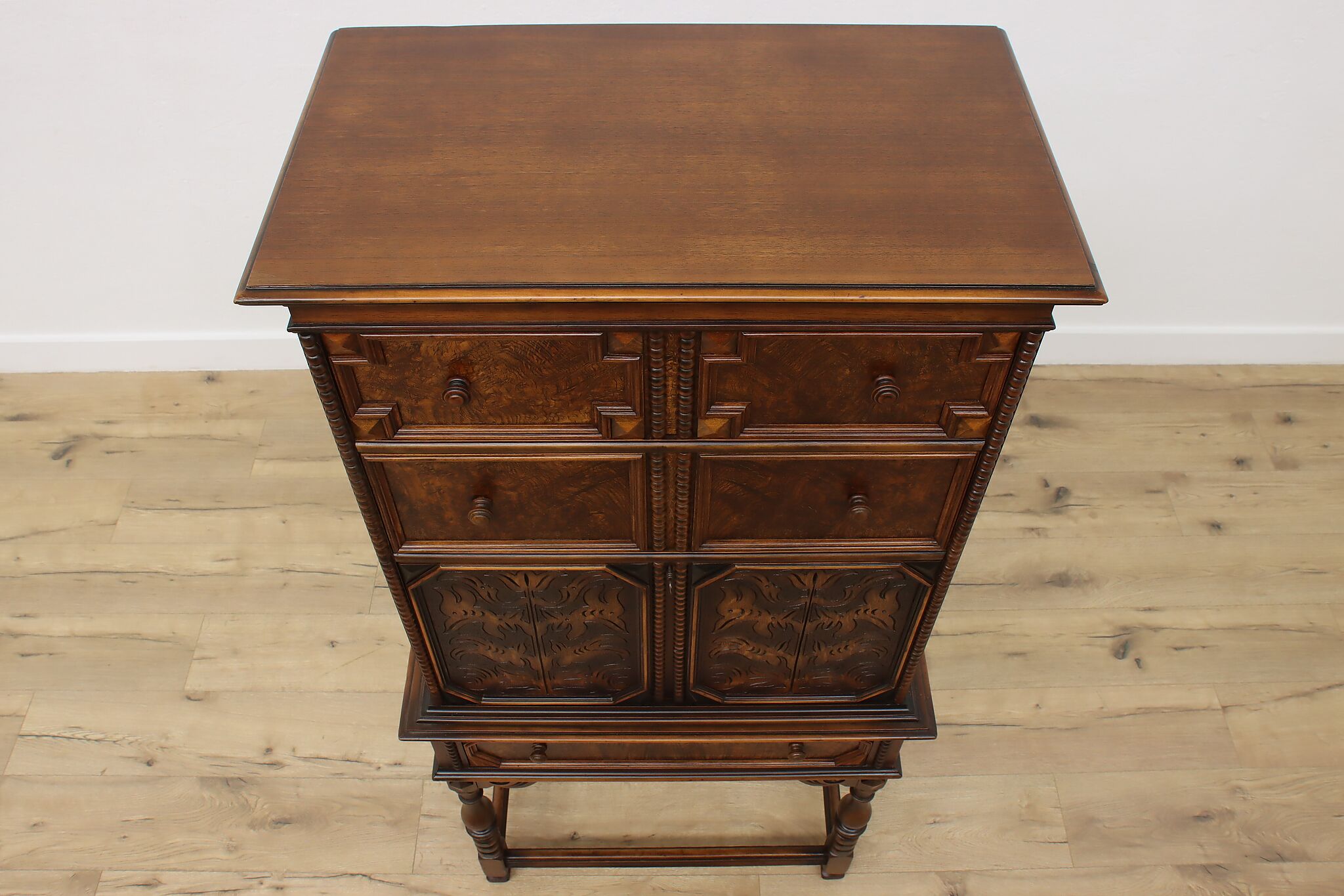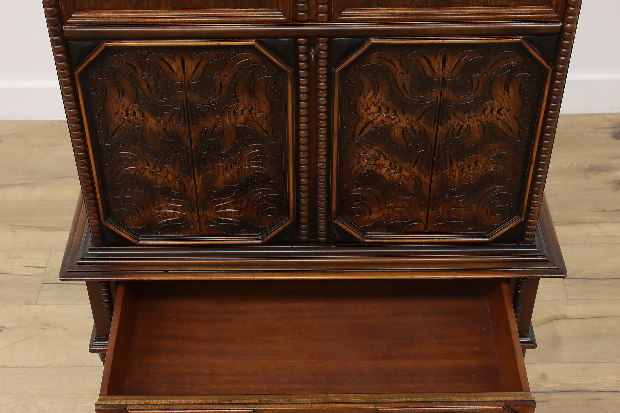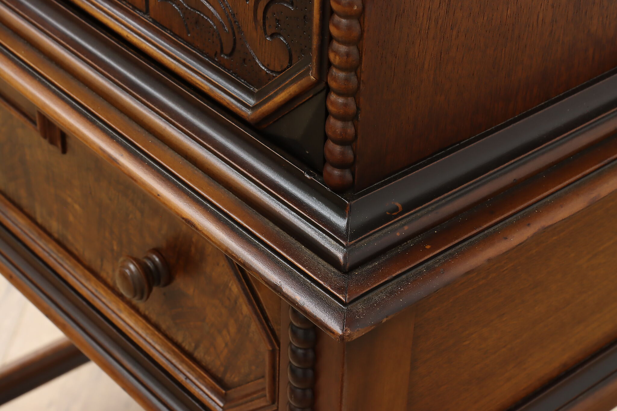 Looking for a secretary desk that has antique character with modern day practicality? This Tudor design beauty is an excellent option that works well with a laptop and can be folded away after use.