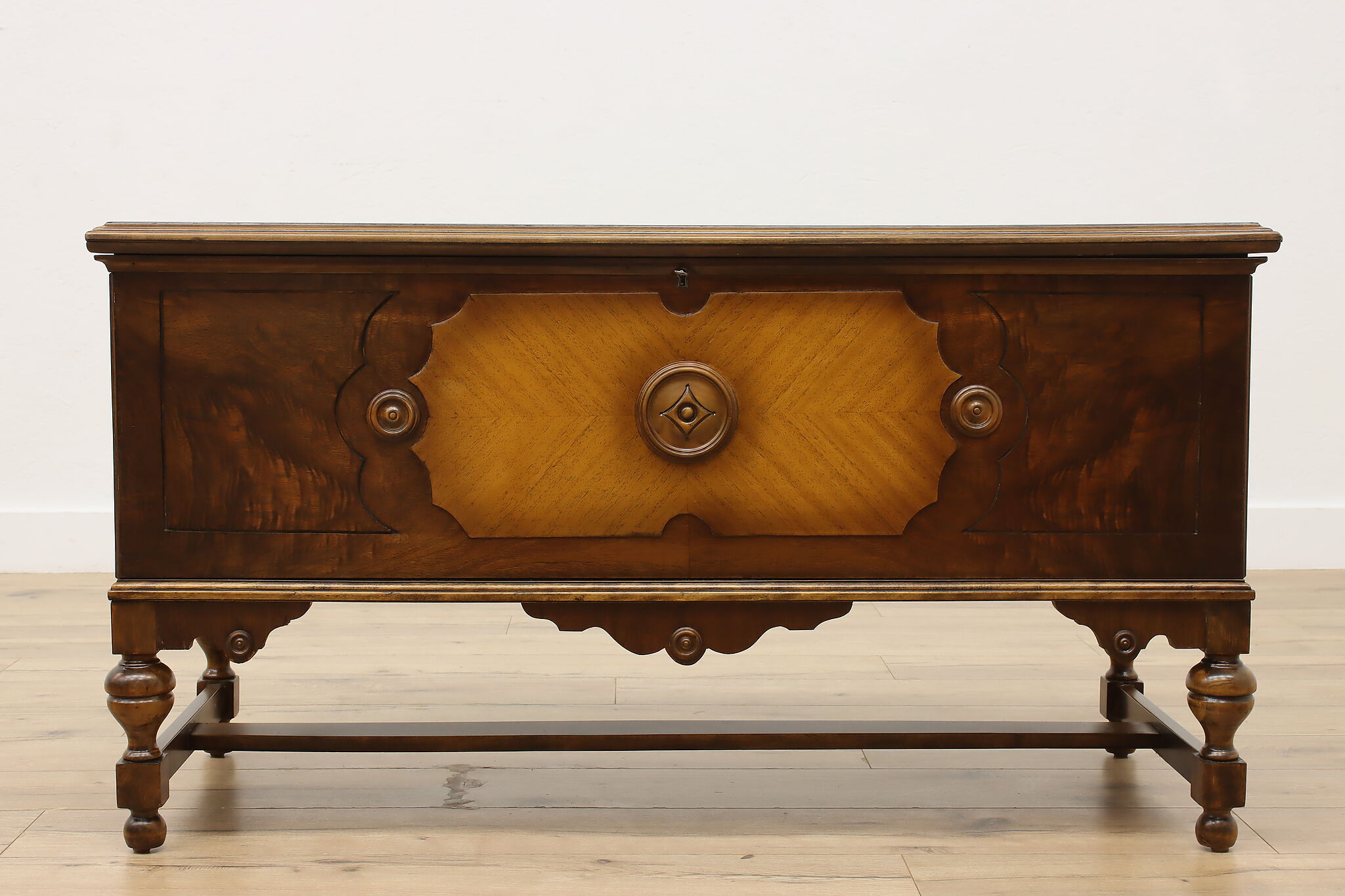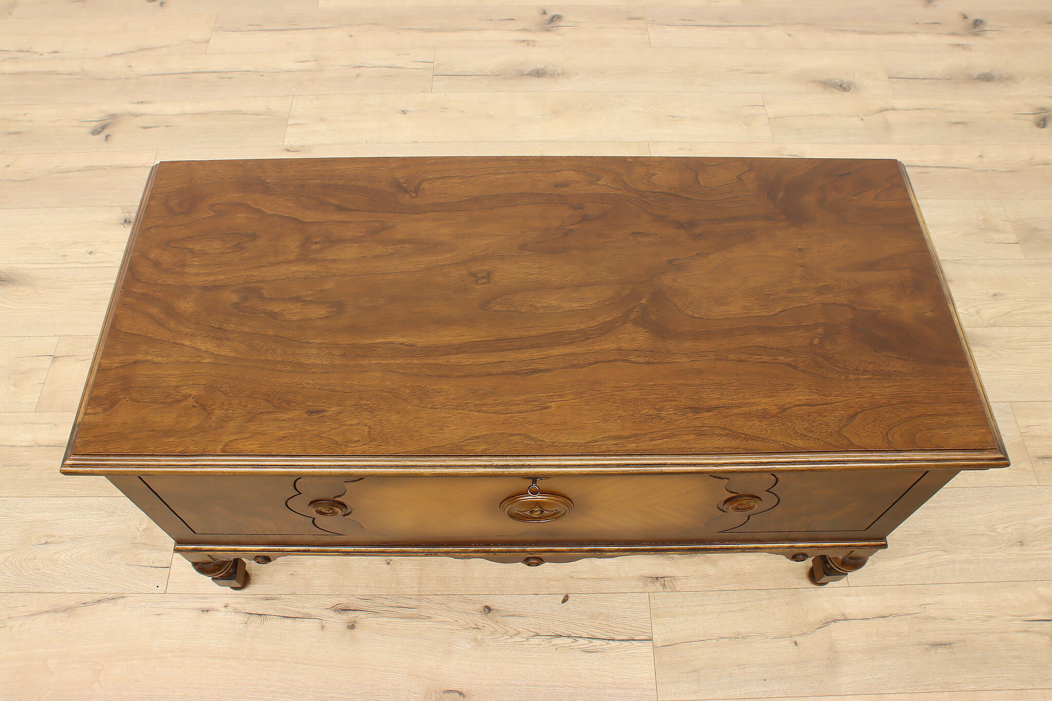 The true beauty of this Tudor design blanket chest or trunk is that it can double as a coffee table!