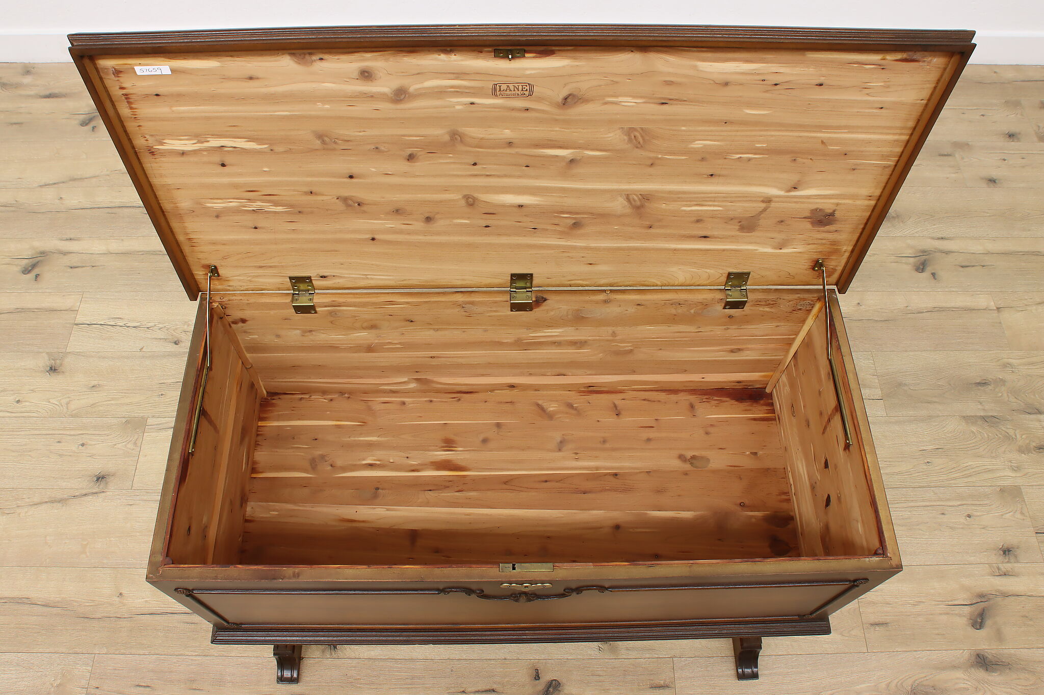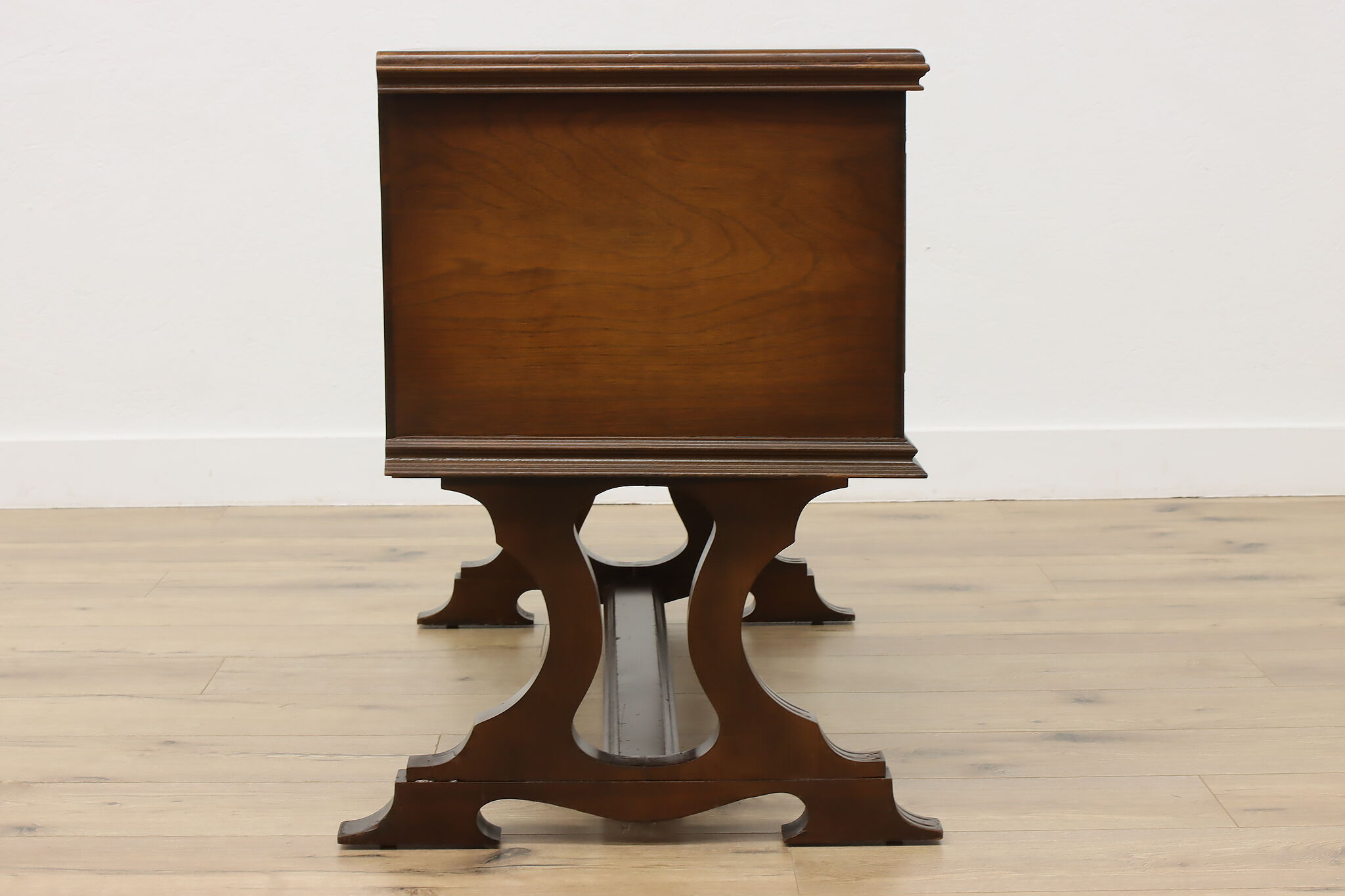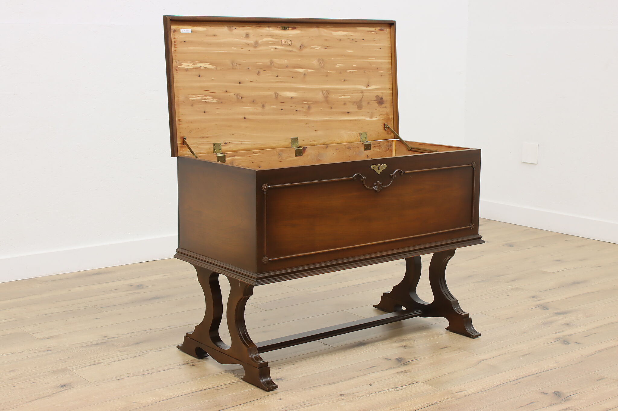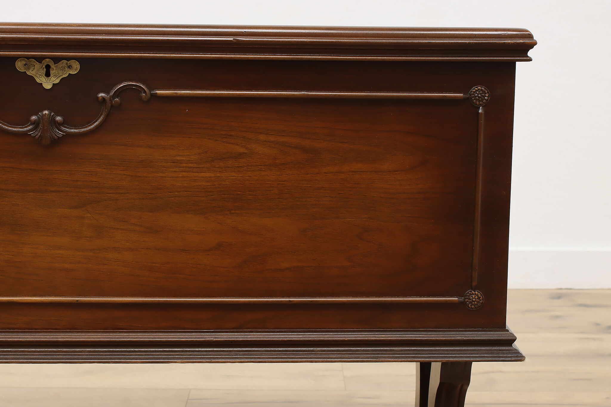 This Tudor design blanket chest or storage trunk is lined with cedar to keep your wool sweaters safe.