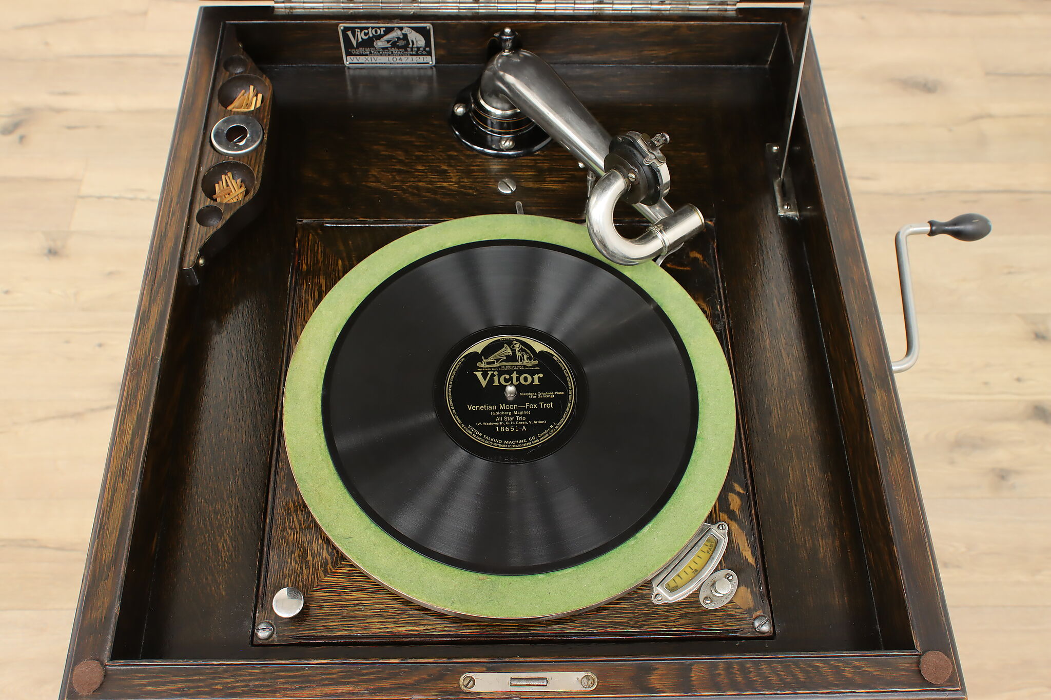 Once the highlight of social parties, this "Victor Talking Machine" or Victrola wind up record player is a wonderful piece of history that still plays very well!