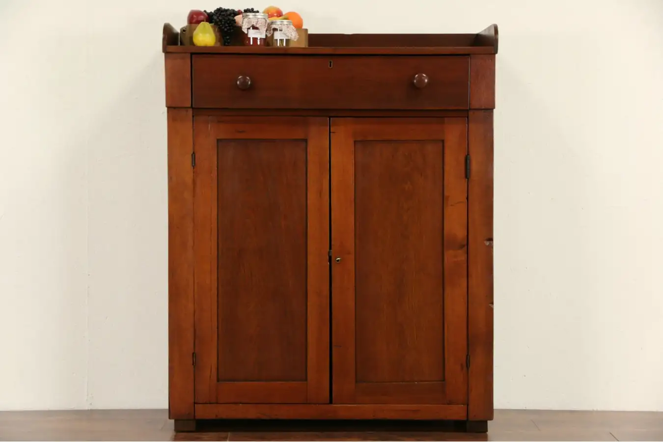 Said to be from Ohio, this Victorian period pantry cupboard was made to hold jelly from the fall harvest to last an entire year. There is a working lock to keep hungry children at bay.