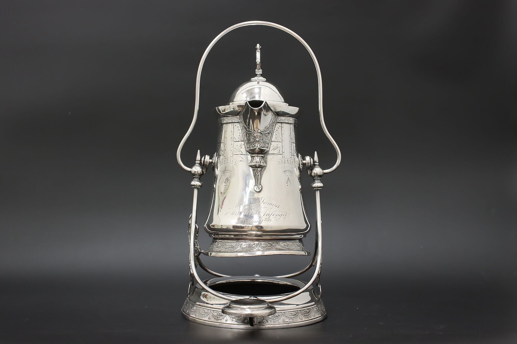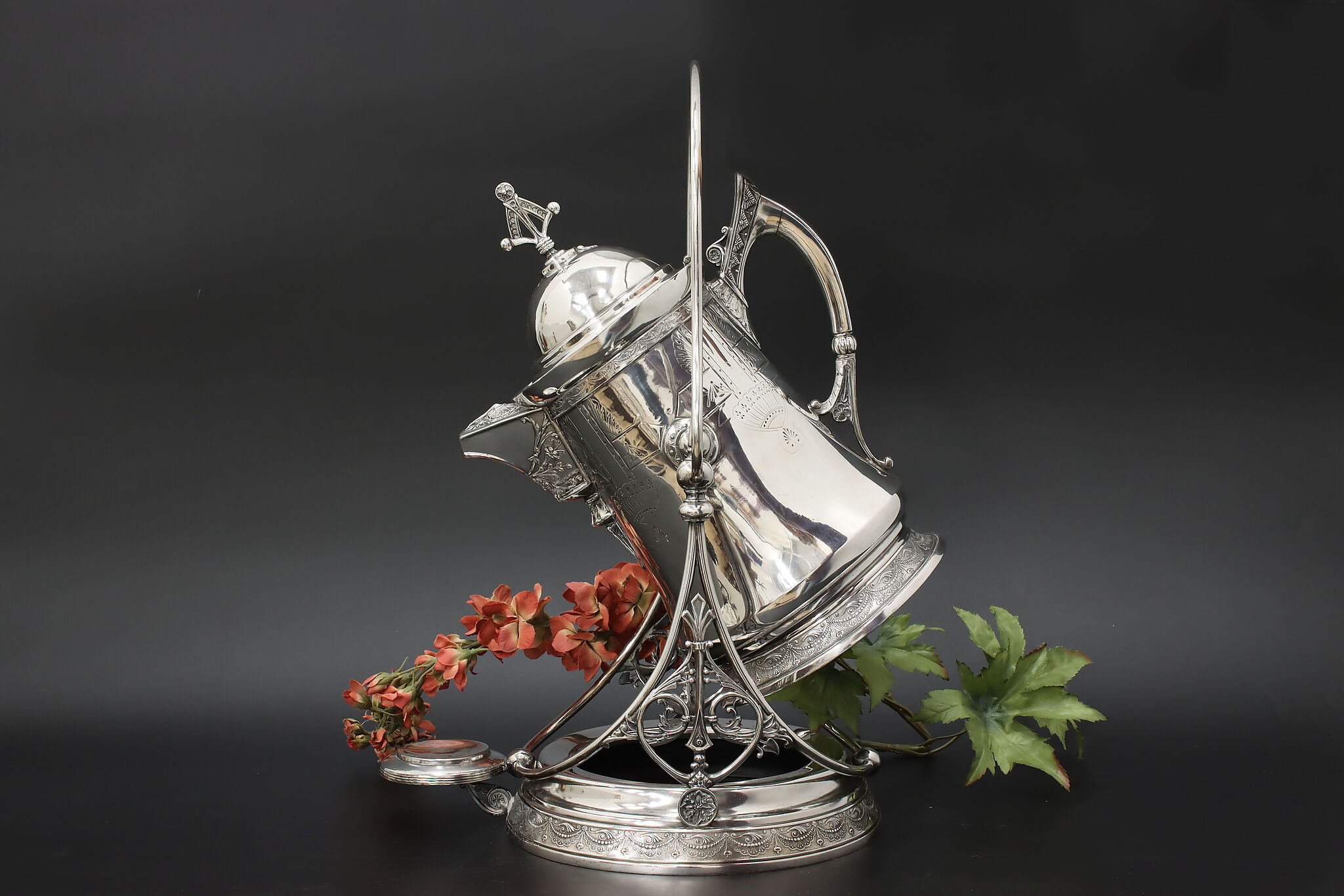 This gorgeous water pitcher swivels on its stand to pour cold water for the newlywed couple it was gifted to.