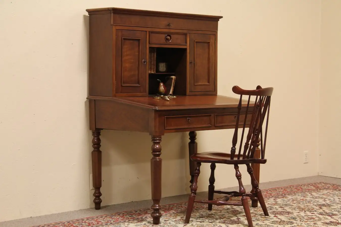 This style of Victorian desk was called a "plantation" desk, and dates from about 1850. This antique held all the accounting and papers necessary to operate a large farm or plantation, and the owner took great pride in this utilitarian possession.