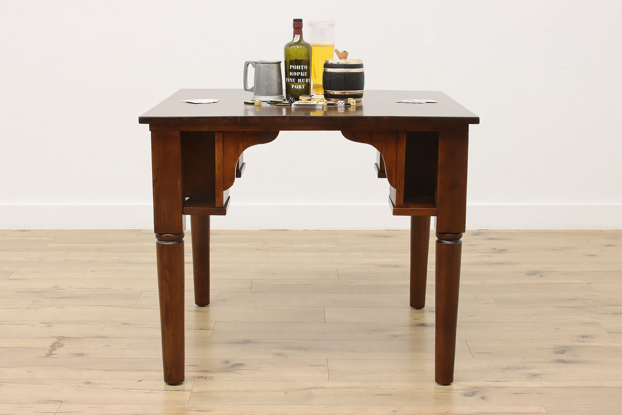 Spend a Saturday night with your friends playing games at this table salvaged from a pub or tavern.