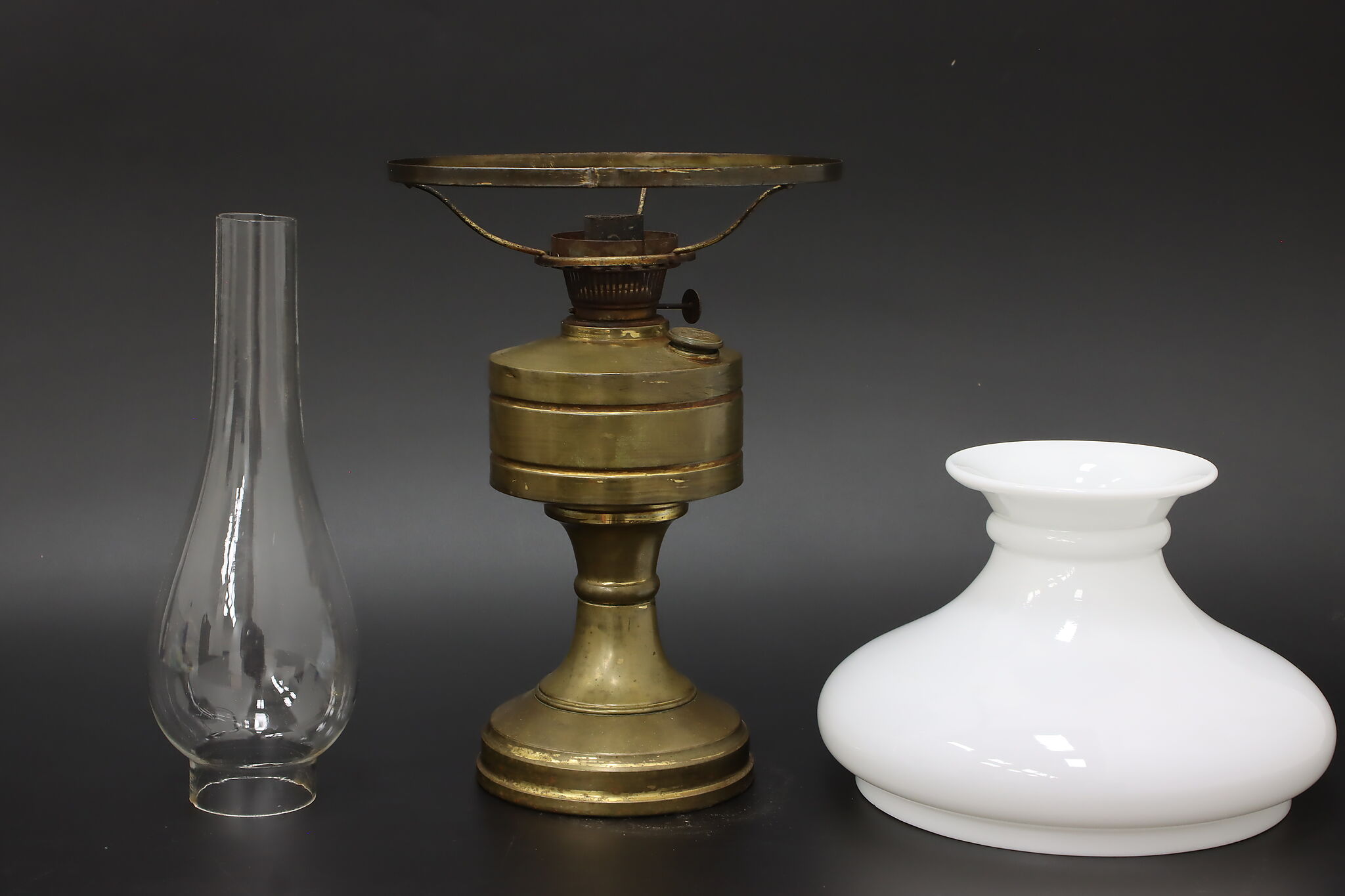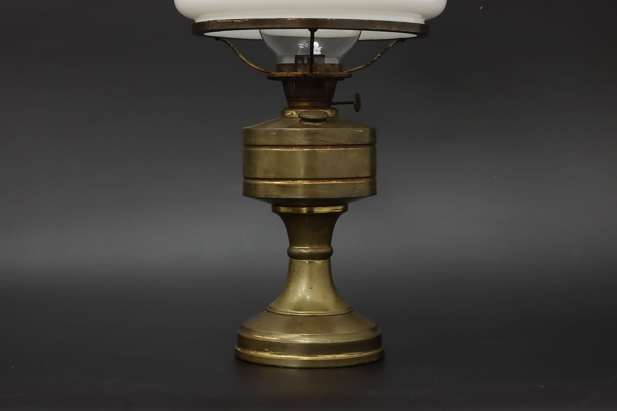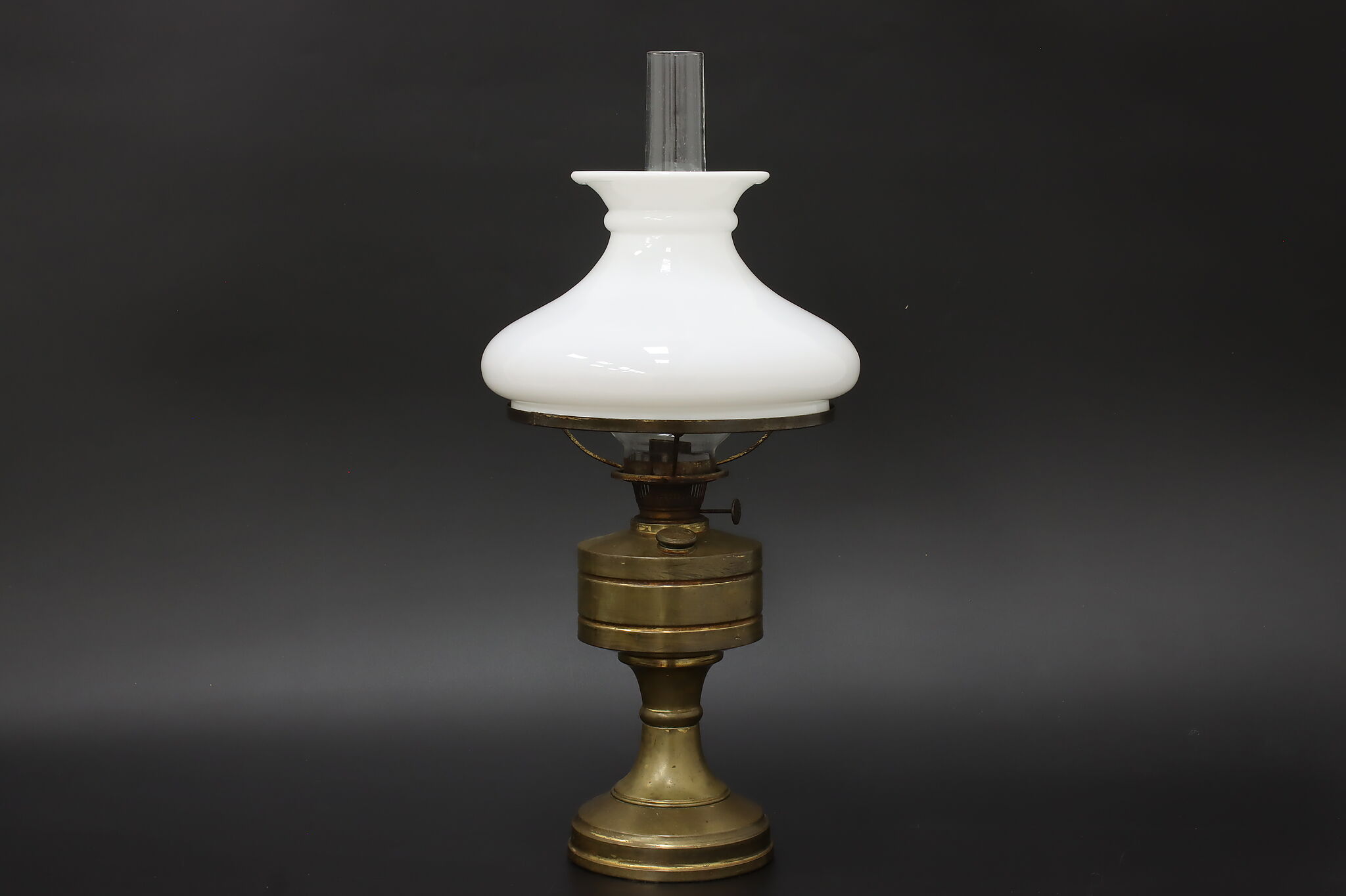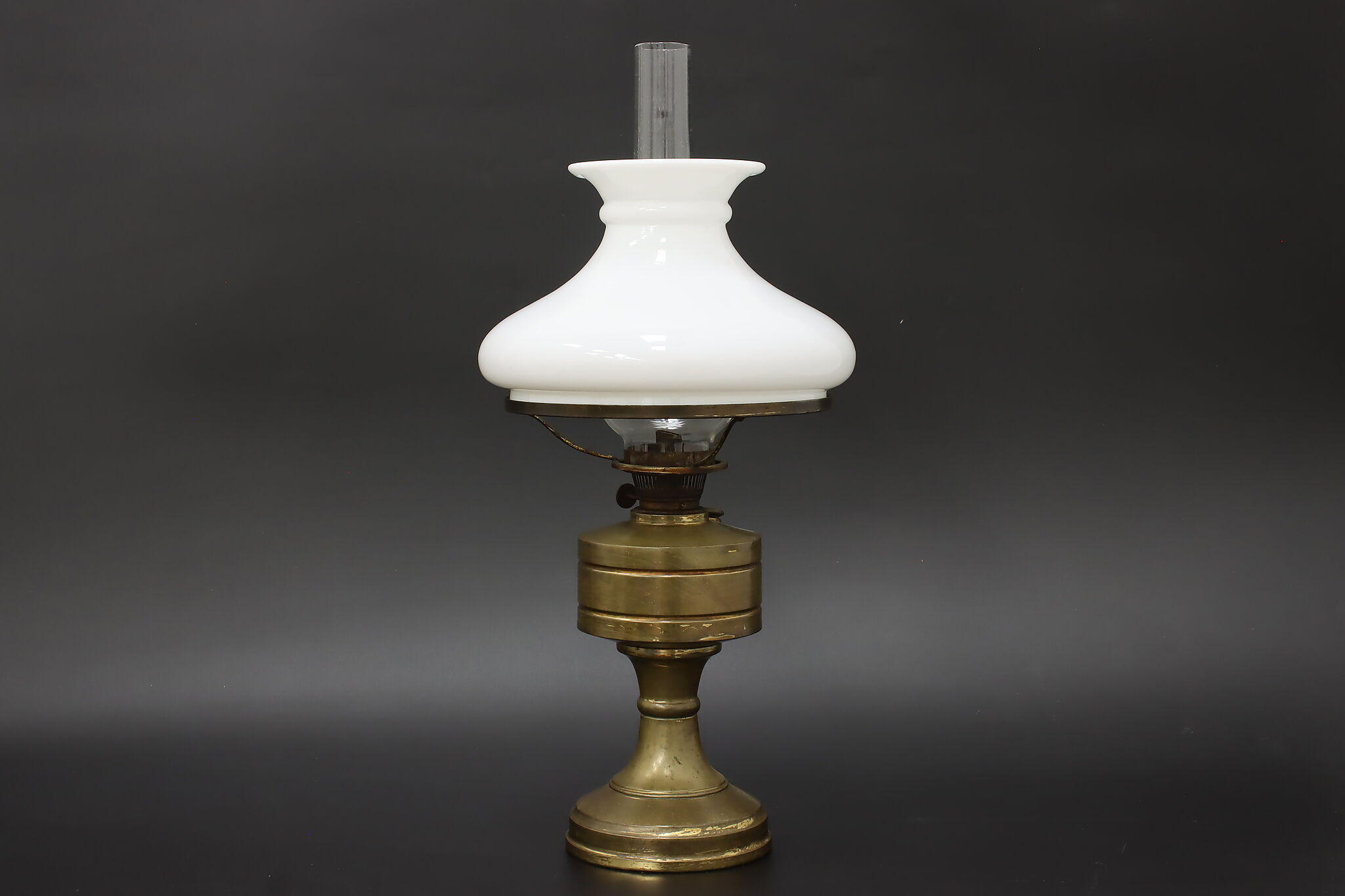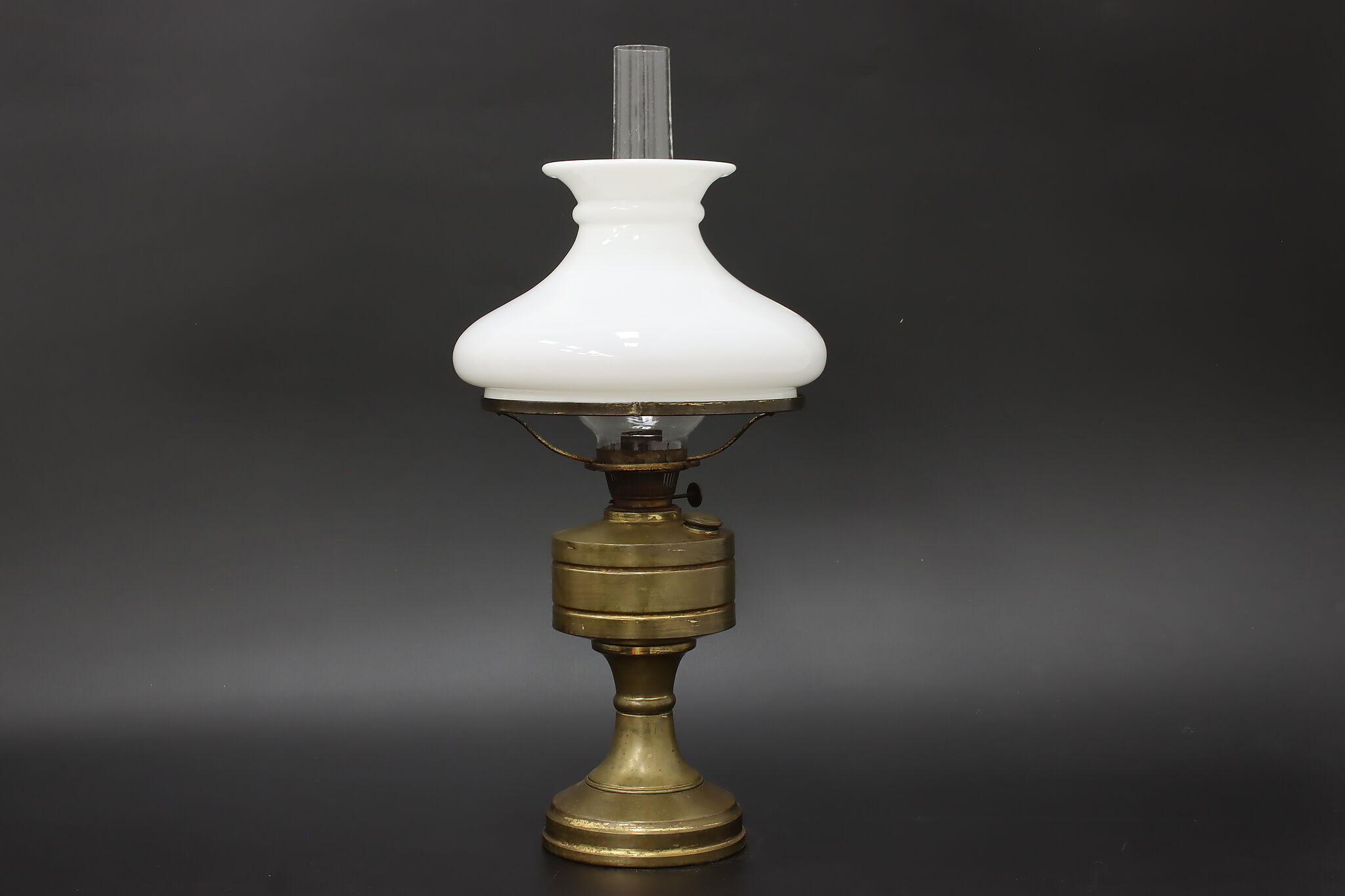 Simple in design, this Victorian era oil lamp is a charming addition to an office or library.